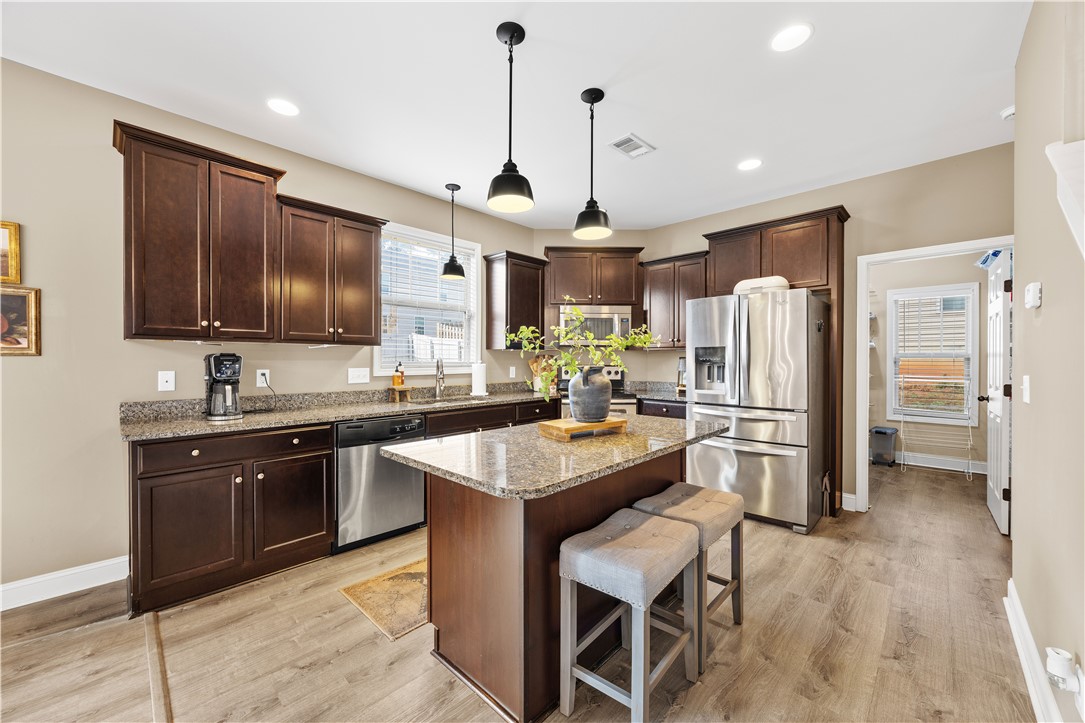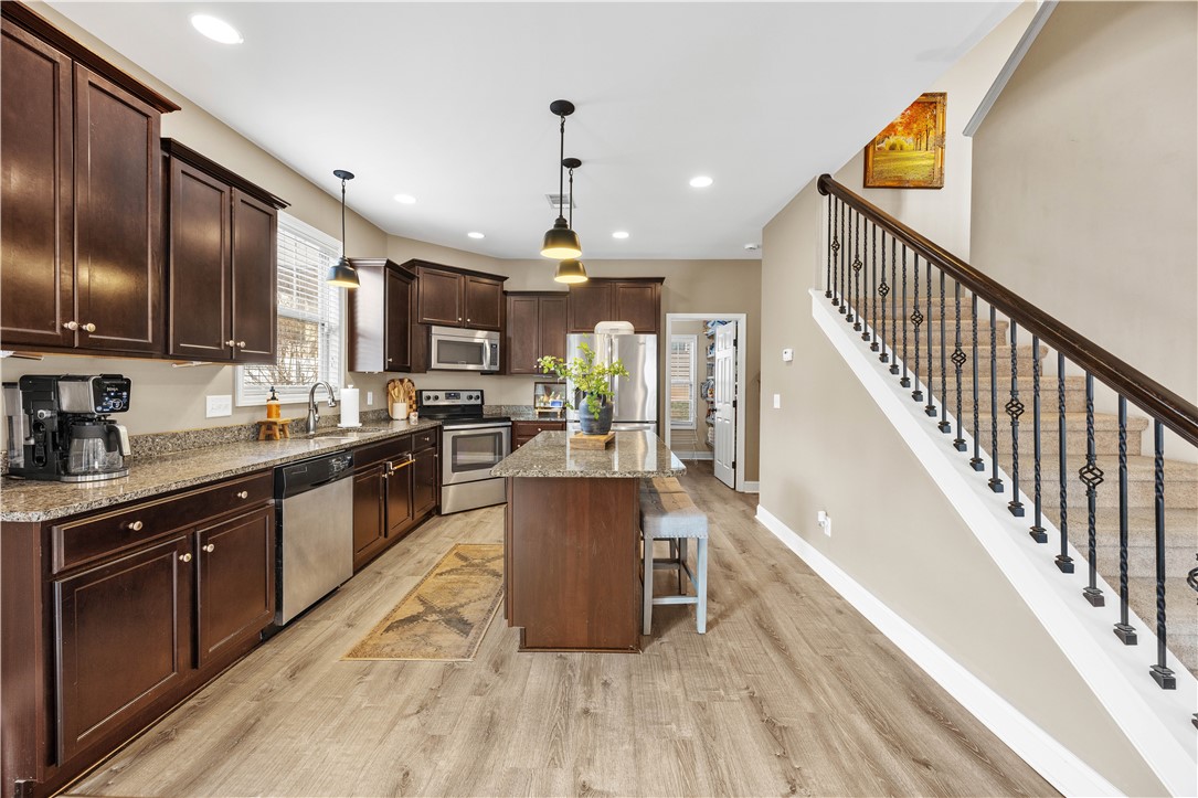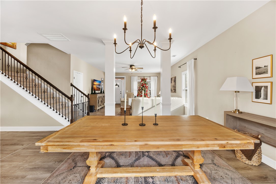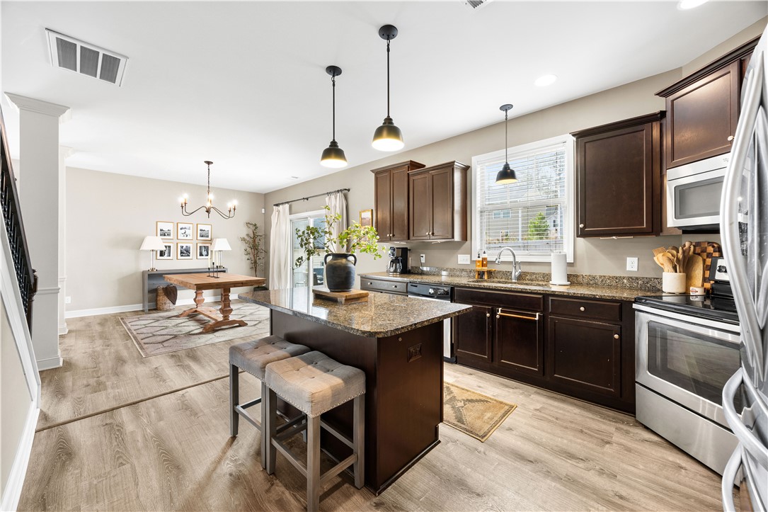 Modern comfort and convenience, Welcome home to 1027 Edenbrooke Circle! Built in 2014, this 2,200+ sq ft home offers 3 bedrooms and 2.5 bathrooms, including a convenient half bath located beside the pantry, and is tucked away just off Clemson Blvd, giving you easy access to shopping, amenities, schools, and the lake! Pull up to your new home and take in the curb appeal you’ve been looking for. Before heading inside, plan where those rocking chairs will go on the inviting front porch — morning coffee just got a little easier. Inside, you’ll find a wide-open floor plan featuring neutral paint, stylish LVP flooring, and two stunning columns. This layout was made for entertaining and staying connected with family and friends! The spacious living room offers plenty of space to enjoy the big game, host game night, or relax at the end of the day. Continue into the dining area, perfectly located between the kitchen and living room. With this much space, hosting family dinners or gatherings just became a breeze! The spacious kitchen features stainless steel appliances, granite countertops, and a super convenient island, plus eye-catching cast-iron railings leading upstairs. Just behind the kitchen is a HUGE laundry room and pantry, with the half bath conveniently located nearby, giving you more space and functionality than expected. Upstairs, retreat to the spacious primary suite, with a private bath offering separate tub and shower, dual vanities, and an even larger walk-in closet. Two additional generously sized bedrooms complete the upper level, offering comfort and privacy. Out back, enjoy a fully fenced backyard — perfect for pets, play, or relaxing outdoors. This home truly is a find at a great price!
