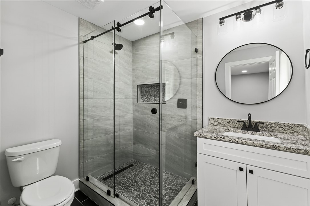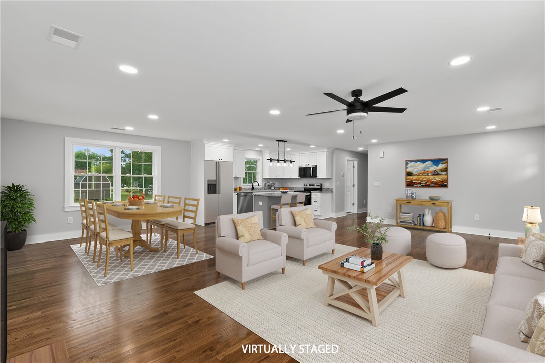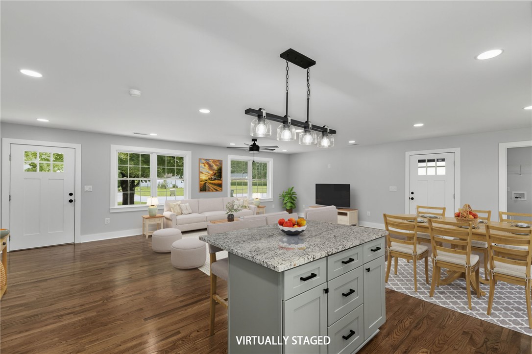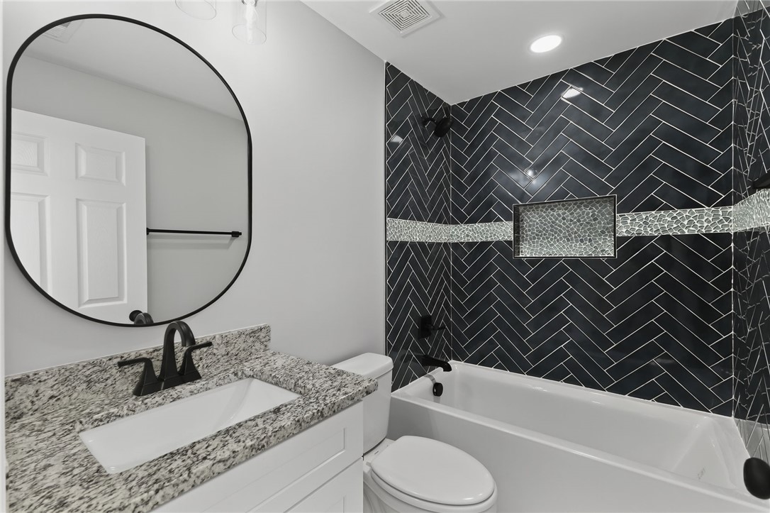 WOW! This beautifully renovated brick ranch is a must-see! Featuring a spacious open floor plan, the home is both inviting and practical. Enjoy hardwood floors throughout, with stylish tile in the bathrooms—no carpet anywhere! The kitchen offers ample cabinet space, with soft close doors & drawers, sleek, solid-surface countertops, and brand-new appliances. Every surface in this home has been thoughtfully updated—move-in ready and completely refreshed from top to bottom! NEW plumbing, insulation, wiring, windows, roof, gutters, HVAC, ductwork, water heater, and completely new interior. The driveway is new and offers an extended parking pad. Pack your bags and move right in!