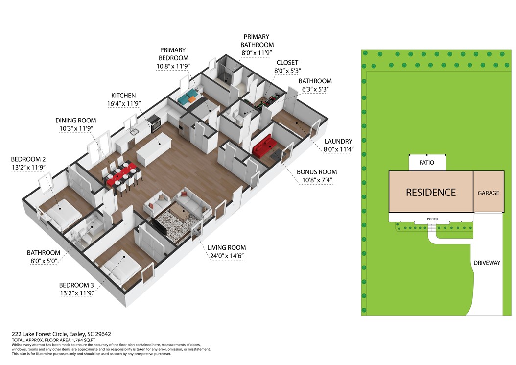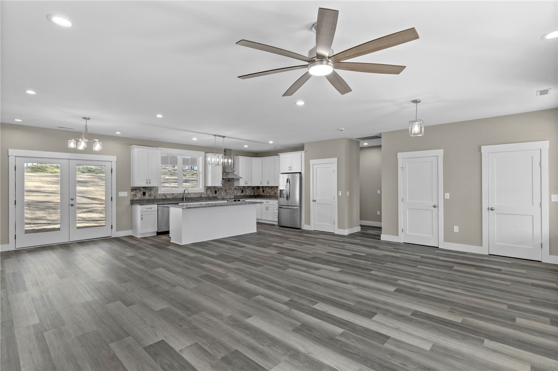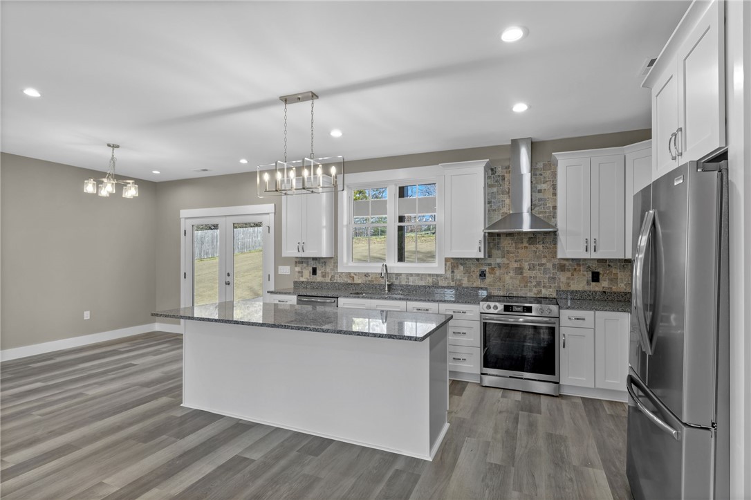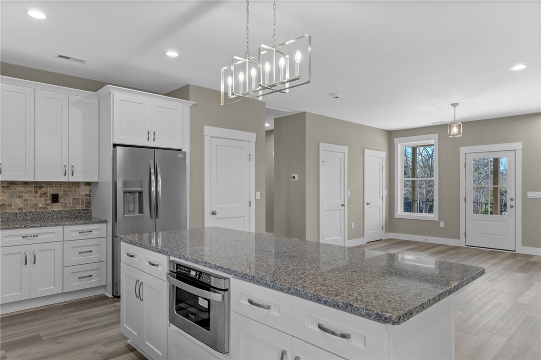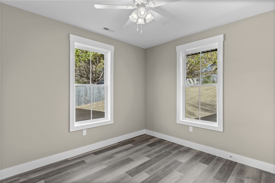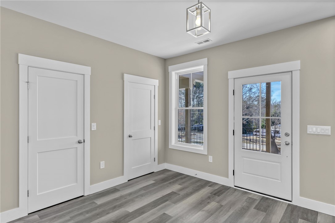 Lookout Easley, a great custom built home is available for purchase! Upscale craftsman new construction home will make your heart throb as soon as you pull up to the property! Exquisite design work & attention to detail can be seen throughout the entire home, inside & out! This home feels like it was custom made to fit your lifestyle & your personal taste. This is just one of those homes you need to admire in person to take in the full experience of how this house feels like HOME. This house sits on just over half an acre of land in the quaint Lake Forest community. Lot has been graded for a lovely level front yard & a gently sloping backyard that offers ample privacy; privately tucked away close to Hwy 123 & Hwy 153! Landscaping, including a fully sodded yard, has been completed to round out the overall appeal of the property. Both the driveway & the walkway are poured concrete for a uniform look, easy maintenance & easy access. Be sure to note the incredible accent finishes- oversized front porch, wood beam design, wood accent ceilings on the porches, canned lighting! The color scheme is stunning; accented with black windows, black aluminum railing, black gutters, black fascia & soffit, black garage door & a lovely gray stain on the wooden porch accents. Board & batten style siding is ideal for this design! Through the front door you will be met with an open concept living area to include the living room, kitchen & dining area! At the front of the home, off the living room is a private office space. Natural light fills this room- this would make a great office, toy room to close off or your own personal library! The kitchen is enormous! Real wood, soft close cabinets are finished with modern hardware, attractive granite countertops & finished with a lovely backsplash. Kitchen island not only provides extra counter space, but also additional seating. The kitchen has been completed with stainless steel appliances to include: dishwasher, smooth top electric range, a hood that is vented to the exterior, refrigerator & a built-in microwave conveniently located in the island. Closet style pantry located in the kitchen. This ranch style home features convenient one story living with a split floor plan- to the left side of the home are two bedrooms & full bathroom. The hall bathroom is convenient to both bedrooms, while the half bathroom is optimal for guests. Bathroom has a tub/shower setup with glass sliding doors, finished with ceramic tile floors & a granite top vanity. To the other side of the home is the half bathroom, access to the attached garage, the laundry room & the primary suite. Luxurious primary suite is what house dreams are made of! Canned lighting & windows overlooking the peaceful view of the yard! The primary closet measures approx 8x5 in size! Private bathroom boasts a walk-in tiled shower with glass enclosure - what a beautiful design, one of my personal favorites! Finished with modern tile floors & a modern granite top, double sink vanity. Extra space in the bathroom is ideal for dirty laundry storage or additional shelving! Premier laundry room features built-in cabinets with a sink & plenty of counter space for folding! This space features extra cabinets for convenient storage. We've saved the best space for last....the rear covered patio! Measuring approx 24x10 in size, finished with upscale stamped concrete. Matching stained wood ceilings, canned lighting & ceiling fan. Enjoy relaxing in this covered space year round! Overlook the rear yard & be delighted by the peaceful sounds of nature. Once on either of the porches, you might not want to leave! Additional finishes to include: all spray foam insulation with a conditioned attic, waterproof & scratch proof flooring, tankless gas water heater, Low-E windows, 2x6 exterior walls, vapor barrier has been installed in the crawlspace & a steel door crawlspace entrance. Comes with a termite bond from soil treatment. Home is COMPLETED & ready for purchase. NO HOA!