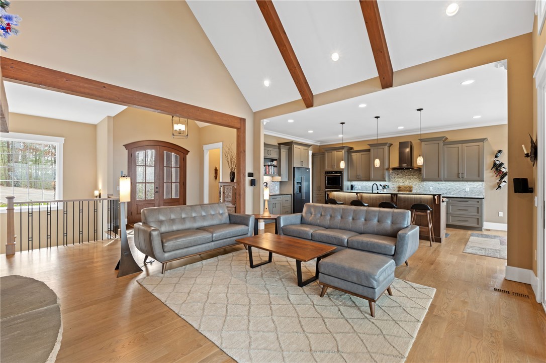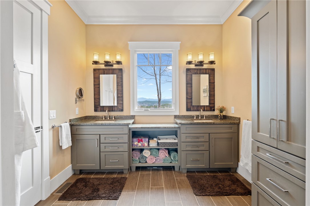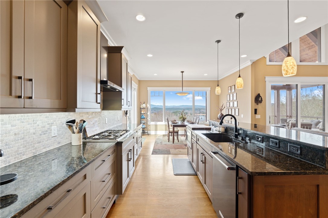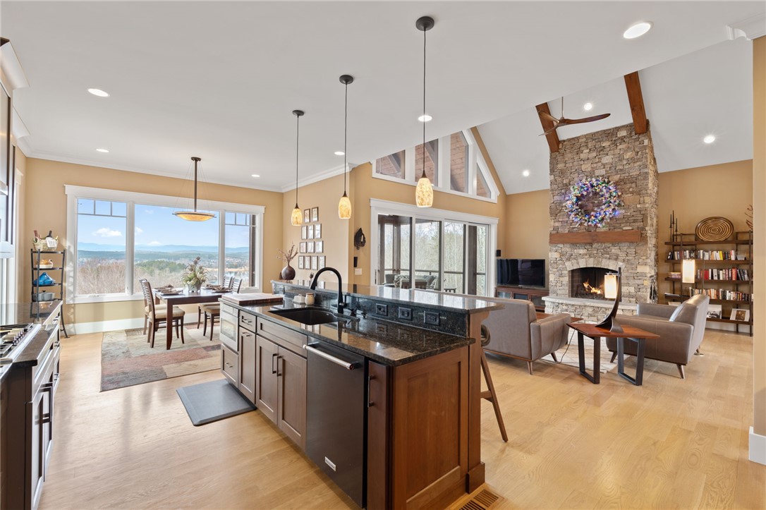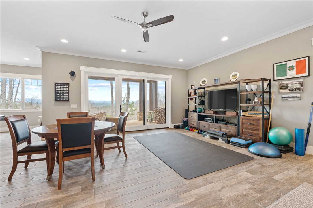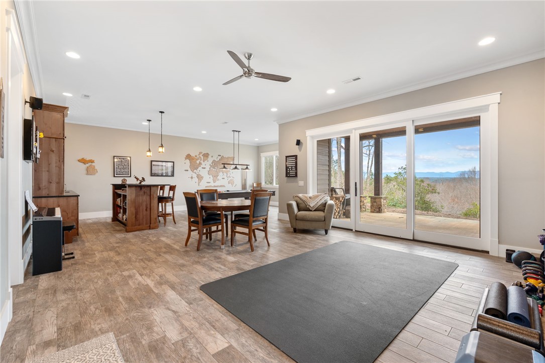 Picturesque mountain rustic home in the Cliffs of Keowee Springs combines a private wooded setting with captivating mountain and lake views from nearly every room. Built by Hillcrest Homes, the home sits on two lots totaling over five acres in The Cliffs at Keowee Springs. This property is ideal as a primary residence for a small family or an exceptional getaway retreat. The main level includes a great room, kitchen, dining area, primary bedroom suite, and powder room with site-finished, white oak hardwood flooring throughout. The open concept great room features vaulted ceilings, a dramatic stacked stone fireplace and clerestory windows that fill the space with natural light. Panoramic sliding doors open to a spacious screened porch with natural flagstone flooring, creating a seamless connection to outdoor living. The kitchen is well appointed with black stainless steel appliances, double ovens, a gas cooktop, and a generous island with breakfast bar. Just off the adjacent dining area, a flagstone patio offers the perfect place to enjoy a fire or sip morning coffee. The primary bedroom is a private retreat with panoramic views. The en suite bathroom offers dual vanities, a walk-in shower, and a separate water closet. The spacious walk-in closet includes custom shelving along with a window seat. The laundry room is conveniently located adjacent to the primary bedroom. The lower level walkout is thoughtfully designed to accommodate family and guests and also offers long-range mountain views from every window. A multipurpose recreation area includes a wet bar with a wine chiller and built-in cabinetry. Two bedrooms are located on this level, allowing one to be easily used as a home office, along with one full bathroom. An unfinished storage area provides a generous amount of additional storage space. This home is just minutes from the front gate and clubhouse and is offered in pristine condition. It presents an outstanding opportunity for those looking to downsize while continuing to enjoy the benefits of a Cliffs membership. Membership privileges provide access to exceptional amenities across seven clubs throughout South and North Carolina, including award winning golf courses, fine dining, wellness centers, tennis and pickleball courts, and more.