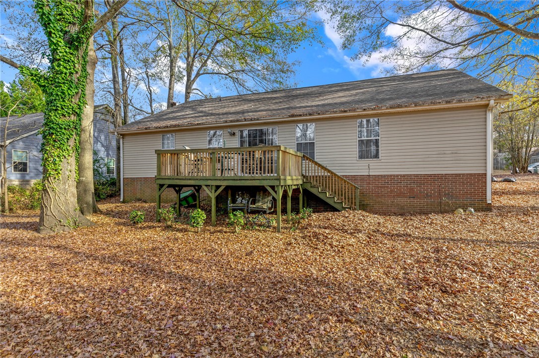 Welcome to 510 Hunters Lane—where comfort, space, and convenience come together. This charming Anderson home sits on a generous lot with a shaded backyard, perfect play and outdoor gatherings. A shaded back deck offers an inviting spot to relax during warm summer afternoons, while the peaceful creek behind the property adds a touch of natural beauty. Step inside to a bright open floor plan with a split-bedroom layout that provides both comfort and privacy. The living area features a vaulted ceiling that enhances the spaciousness of the room, and the kitchen offers durable Corian countertops. The home’s layout is ideal for entertaining and everyday living. Enjoy the benefit of a friendly community that includes access to a community pool. Additional features include a spacious backyard, garage shelving, and outdoor patio furniture—items the sellers are happy to leave for the next owners. Located just minutes from local conveniences, this home offers a wonderful blend of tranquility and easy access to all that Anderson has to offer.
