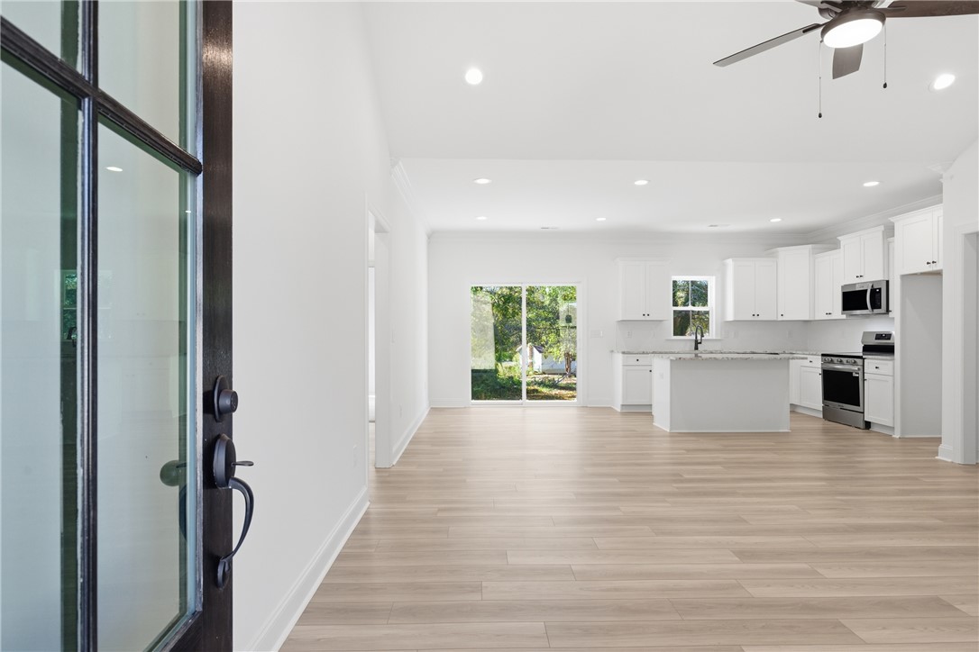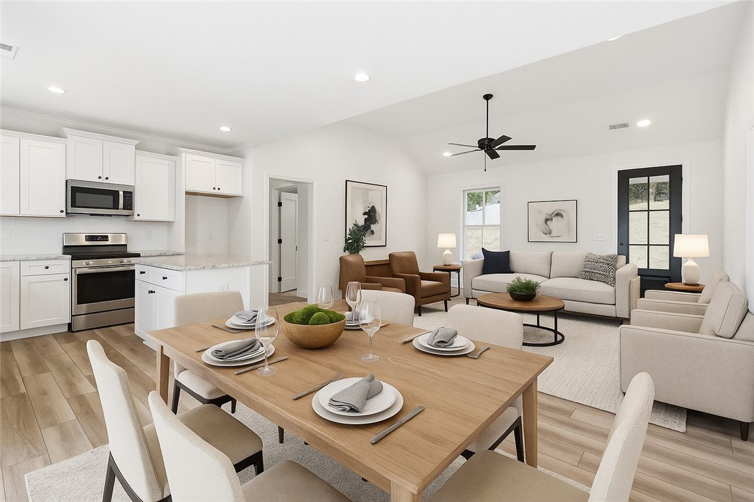 Just seconds from Downtown Travelers Rest and the Swamp Rabbit Trail, this brand-new home by Homeland Builders offers a rare mix of location, versatility, and low-maintenance living. Whether you’re looking for a primary residence close to everything or a property that could support short-term stays thanks to its proximity to downtown and the Trail, the setting opens the door to multiple possibilities without compromising everyday livability. Inside, the craftsman design feels both open and inviting. Step into the living, dining, and kitchen area where vaulted ceilings and granite counters create a bright, comfortable space for gatherings or quiet mornings at home. To the right, you’ll find the primary suite, a huge pantry, walk-in laundry, and access to the two-car garage. The primary bedroom includes tray ceilings, a dual-sink bath with a walk-in shower, and a generous walk-in closet. On the opposite side of the home, two additional bedrooms share a full bath, giving everyone a bit of privacy and space. Step out back to a covered porch overlooking the yard, an easy place to grill, relax, or unwind after a ride on the Trail. With the peace of mind that comes with new construction, the reputation of Homeland Builders, and quick access to both downtown dining and the Blue Ridge Mountains, 201 Tubbs Mountain Road delivers flexibility, convenience, and the lifestyle Travelers Rest is known for. No HOA.