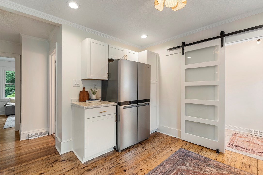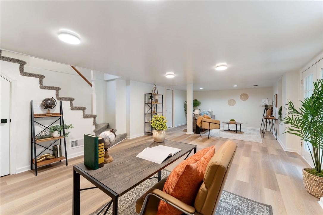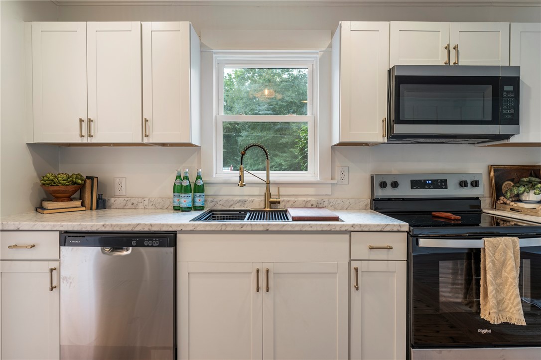 Nestled in a private neighborhood surrounded by mature trees, this beautifully renovated 4-bedroom, 2-bath brick ranch offers the perfect blend of charm, modern updates, and outdoor living. The home sits on a fenced lot backing up to a peaceful creek, with multiple spaces designed for entertaining and relaxing. A brand new roof and gutters will add peace of mind for years to come as well as new duct work for those hot summer nights. Step inside to find refinished hardwood floors, new lighting, fresh paint throughout, and a completely updated kitchen featuring soft-close cabinetry and new appliances. There are three bedrooms and one bathroom on the main level, and one bedroom and one bathroom downstairs. The full walkout basement offers even more living space with new scratch-resistant luxury vinyl flooring, plus a large workshop for projects and storage. Outdoor living is where this home truly shines. Enjoy dining al fresco on the brand-new deck off the kitchen and mudroom, or host unforgettable gatherings in the covered backyard oasis, complete with a custom stone bar, sink, and ceiling fans. A large covered front porch adds even more charm, while the private backyard ensures plenty of space for play, pets, or quiet evenings by the creek. With thoughtful updates throughout and endless opportunities to entertain, this Belton gem is ready to welcome its next owners.