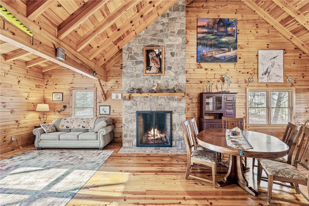 **OPEN HOUSE on Sunday 1/18/26 2pm-4pm**Welcome to this well-built and beautifully designed 4-bedroom, 3-bath log home nestled in the desirable Deer Run neighborhood, where privacy, craftsmanship, and lake living come together seamlessly. Set on 3.27 acres and backing up to a creek, this property offers a rare blend of natural beauty and refined comfort. Inside, the open floor plan is highlighted by soaring vaulted ceilings in the living and kitchen areas, anchored by a striking rock fireplace that serves as the focal point. Heart of pine floors span the main level, complimenting the rich character of the log walls, tastefully balanced with select sheet rocked areas to create warmth without overwhelming the space. The main level features two bedrooms and one full bath, while the primary suite is situated in the loft upstairs, overlooking the living space below. The finished basement provides exceptional flexibility with an in-law suite, including one bedroom, one bath, living space, kitchen, a one-car garage, and a laundry room—perfect for guests or multi-generational living. Outdoor living is just as impressive with a fenced yard, a covered back porch, abundant privacy, a two car detached carport and access to gated neighborhood amenities, including two pavilions and storage areas for boat trailers. Enjoy the best of lake life with a 10x20 covered boat slip included in this sale, granting convenient access to Lake Hartwell. Additional highlights include a new roof installed in 2025, ensuring peace of mind for years to come.