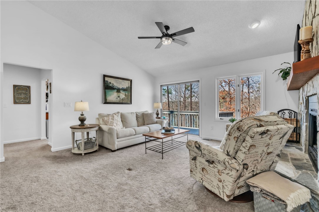 The Keowee Life awaits! This inviting Keowee Key home sits on a beautiful lot, offering just enough lake view to enjoy morning coffee or sunset reflections. A gently driveway leads to a covered front porch and two-car garage. With over 3,400 sf, this 3BR/3BA home a with huge recreation space, craft space, and an additional flex room has been thoughtfully updated with fresh interior and exterior paint, new lighting, flooring, cabinetry, shelving, a new hot water heater, and the MAIN LEVEL BRAND NEW KITCHEN. This new kitchen is so charming, adorned by a counter looking out to the water to casually dine at. The main level features TWO spacious bedrooms with access to full baths and outdoor sitting areas. The primary includes a soaking tub, separate shower, double granite vanity, and walk-in closet. Enjoy the inviting family room with wood-burning fireplace, adjacent dining area, and additional sitting room. A screened porch off the kitchen is perfect for morning coffee. Main-level laundry includes a laundry sink and ample storage. The lower level offers a large recreation and living area ideal for entertaining, a brand-new second kitchen with granite countertops and stainless appliances, walk-in pantry, bedroom with natural light, full bath with new cabinetry, and a flex room for office, exercise, or storage. The backyard is gently sloped with a small, fenced area for pets. Keowee Key amenities include an 18-hole golf course, tennis and pickleball courts, fitness and wellness center with heated lap pool, walking and jogging trails, dog park, two private marinas, clubhouse dining, bistro, bar, and indoor/outdoor pools. Live it. Love it. Lake it.