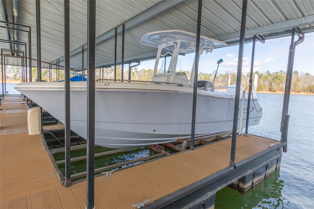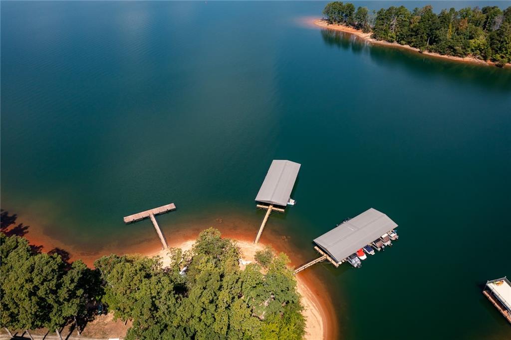 Welcome to The Regatta at Lake Hartwell, a private gated community offering premier maintenance-free lake living. This spacious 2,900+ sq ft townhome is the largest floorplan in the community and is just steps from the concrete walkway leading to a deeded deep-water boat slip (#12) with a newly added boat lift, located off the main channel. The main level features 10-foot ceilings, 8-foot solid doors, refinished hardwoods, and a beautifully updated kitchen with quartz countertops, mahogany-topped island, shiplap accents, and exceptional storage. Enjoy a main-level primary suite with a new ducted mini-split for added comfort, plus a light-filled living area that opens to new composite decking with an under-decking system, creating ideal indoor-outdoor living year-round. The lower level offers two oversized bedrooms, two full baths, a second laundry room, and access to a covered patio perfect for entertaining. Additional highlights include a brand-new HVAC system, designer lighting, plantation shutters, shiplap fireplace surround, and an oversized garage with epoxy floors and its own mini-split. Great location on Hartwell, minutes away from Portman Shoals Marina and its restaurant. Green Pond Landing boat launch and shopping are just minutes away. HOA covers gate, dock and roof maintenance, landscaping, irrigation, termite bond, and discounted cable, allowing you more time to enjoy the lake lifestyle.