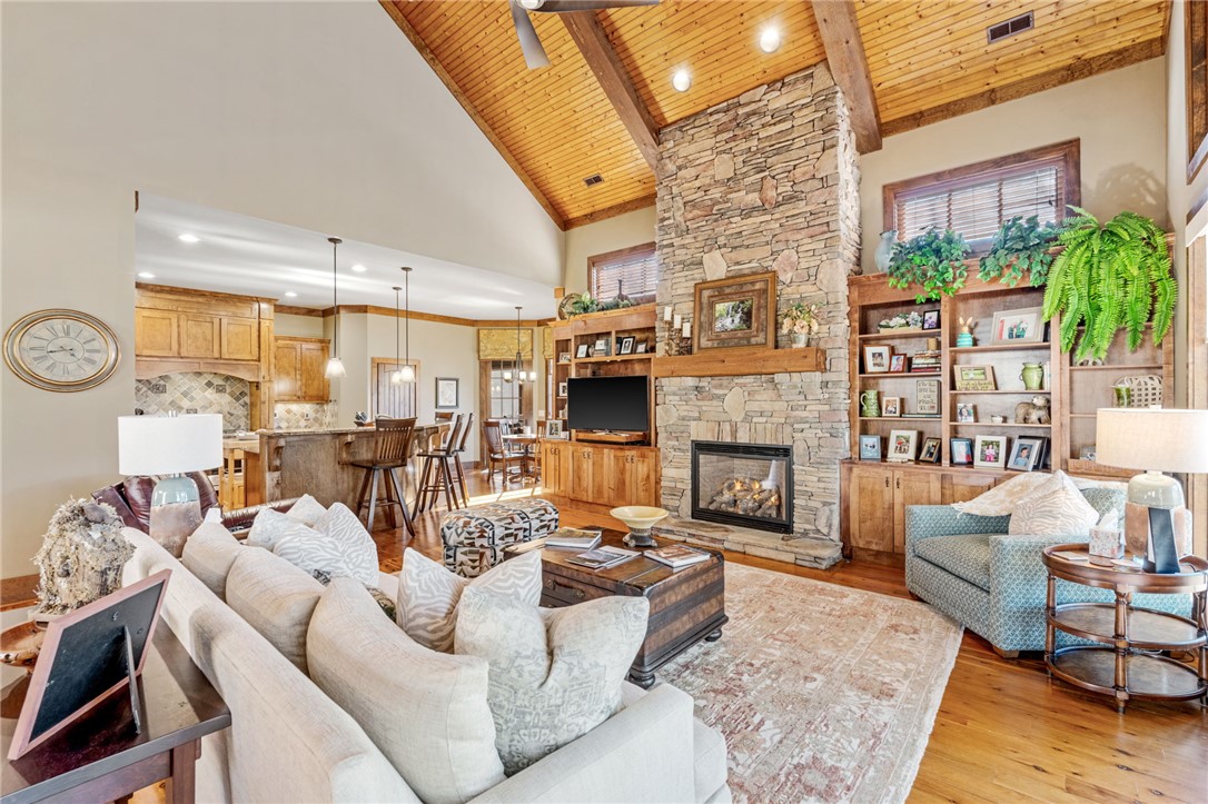 Enjoy beautiful seasonal lake views during fall and winter months! Perfectly suited to its serene, wooded surroundings, this home is set on 1.04 private acres and offers a peaceful retreat that owners—and their guests—will enjoy for years to come. From the moment you enter, the Great Room welcomes you with exposed wood beams and a striking floor-to-ceiling stone fireplace that reaches the vaulted wood ceiling. Australian Cypress hardwood floors add warmth and character with their light tones and natural knotting. A striking wall of glass doors and windows connects the Great Room to the expansive wraparound covered porch and deck, creating a seamless indoor-outdoor living experience. Step outside and feel immersed in nature. The Great Room flows effortlessly into the kitchen and breakfast nook. A generous granite bar offers additional seating and serving space, while Sub-Zero and Wolf appliances, a slate backsplash, and a walk-in pantry make the kitchen as functional as it is beautiful—ideal for entertaining. The kitchen opens directly to the screened porch with its own stone fireplace and provides easy access to the wraparound deck and covered porch. Ipe (Brazilian hardwood) flooring was selected for both the porches and deck due to its exceptional durability, weathered naturally outdoors while maintaining its rich, darker tone indoors. Designed as a true retreat, the screened porch connects to the primary suite via French doors, allowing owners to enjoy the fireplace and cool breezes. The primary bath features double vanities, a spacious walk-in closet with custom built-ins, and a tiled walk-in shower with multiple jet sprays, a heat lamp, and a doorless design for easy maintenance. The main level also includes a spacious coffered-ceiling dining room, a powder room with a solid granite sink and rough-edged countertop, a well-appointed laundry room with built-ins, and convenient garage access. A private staircase leads to a spacious guest suite above the garage with full bath. The lower level expands the home’s entertaining and sleeping options, with outdoor access and a path to the backyard fire pit. The rec room welcomes you with yet another stone fireplace, while a thoughtfully designed refreshment bar serves the space and can be closed off by double doors when more energetic activities are underway. Whether hosting billiards, ping pong, movie nights, or wine tastings, the space easily adapts. One guest ensuite and an additional bedroom and full bath, both accessible to the covered porch through French doors. Don't forget the bonus/multi-purpose room to use for whatever your needs - additional bedroom, office or exercise room. Sink in garage. Sports Membership to be purchased at closing. With 4 bedrooms, 4 full baths, 1 half bath, and 4,837 square feet, this exceptional home offers both comfort and versatility. Many improvements! Generac generator, new tankless water heater, HVAC replaced (upstairs), updated lighting fixtures, custom window treatments and more. Some furnishings and golf cart negotiable. The Reserve at Lake Keowee offers a Jack Nicklaus Signature Golf Course, a par 3 practice facility with driving range and open-air range bar, Clubhouse with fine dining, pub area and wine bar, Fitness Center, Hiking Trails, 4 Har-Tru Clay Tennis Courts, Lakeside Resort-Style Pool and Cabana, Settlement Pool, 8 Pickleball Courts, Marina offering both slips and boat rentals, and Market great for lunch and select provisions. This gated community offers many activities including fitness classes, various social clubs, and a high-speed fiber-optic internet system in place. The Reserve at Lake Keowee is a full amenity lakefront golf community. Agent Must Attend All Showings. 24 Hours Notice Required.