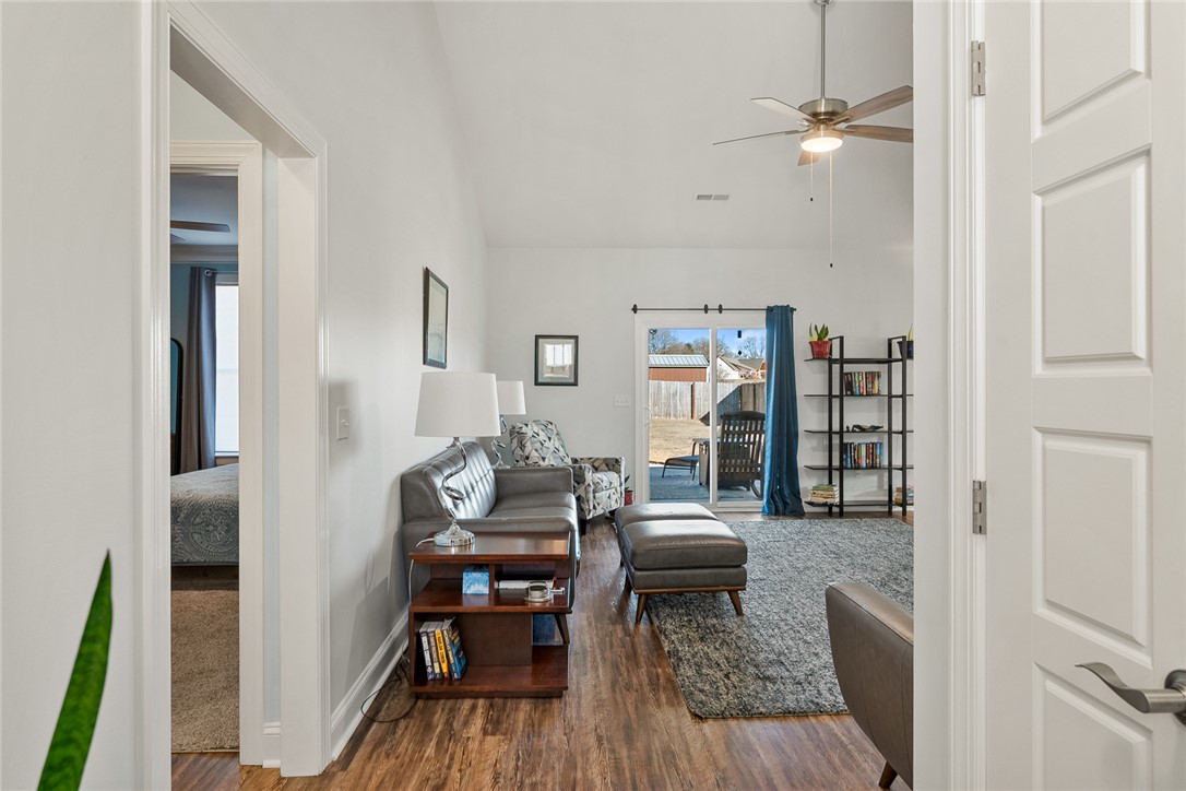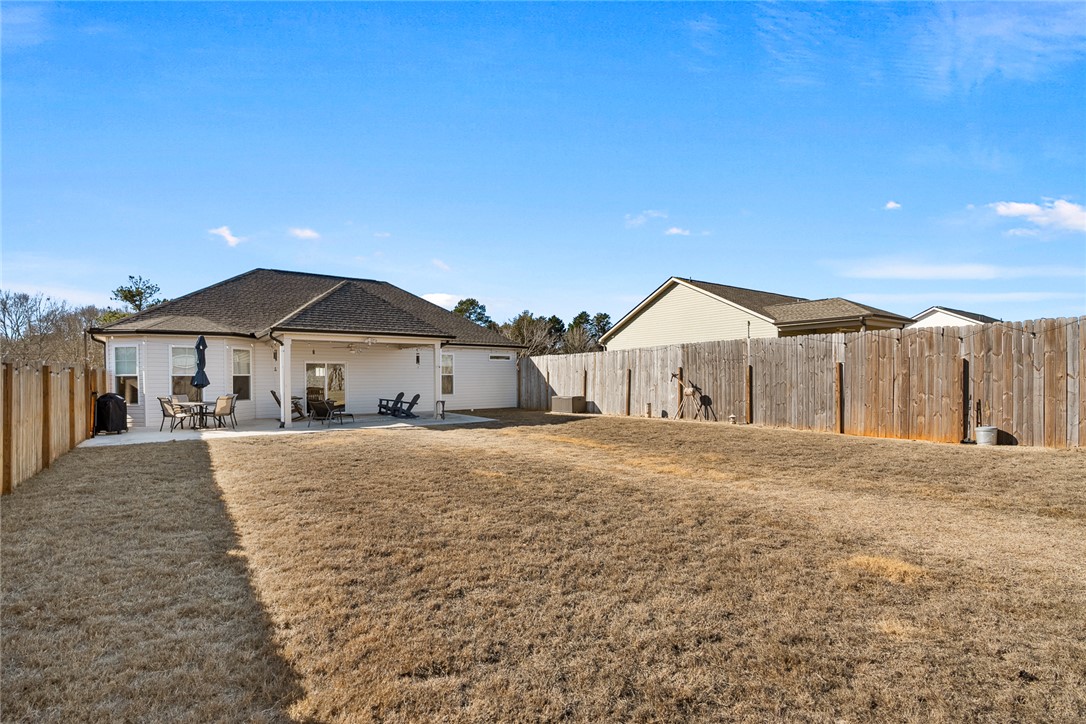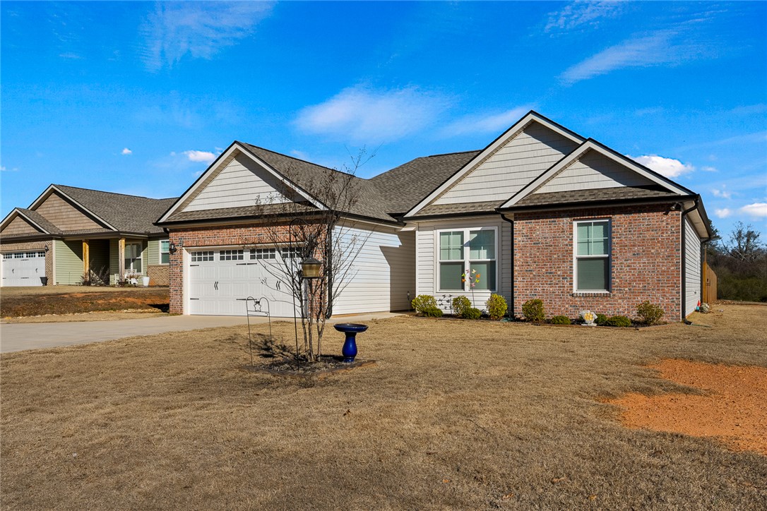 Don’t be sad to pack up the Christmas tree and finish off the eggnog, I have a fun surprise to distract you with this home at 2-1-3 Boggs! Still feels like new but with thoughtful upgrades, this home sits on .78 acres and while unrestricted with a “country setting,” it’s still close to town where you will find all shopping, major medical and plentiful dining options! This single story home greets you with a vaulted ceiling in the living room, allowing natural light to flow into this bright and airy space. The large kitchen features a casual dining room that adjoins the kitchen. Granite countertops, upgraded stainless steel appliances, and a customized cabinet pantry are just a few of the “extras” this kitchen has! There are two bedrooms and a full bathroom that complete this side of the house, and one of the bedrooms smartly features a Murphy bed, allowing you to periodically accommodate guests, or instantly make the room more spacious for other uses! The primary bedroom is located on the opposite side of the home for ideal privacy. It is large and features a walk-in closet and en suite with double vanity, 36 inch high countertops and walk-in shower. The backyard of this home is a rare dream. Along with a privacy fence, this large backyard has a drainage system and is fully sodded. The large covered patio and extended grilling patio make cooking and relaxing a dream! A few other highlights include a portable whole house generator with dedicated breaker, additional outlets around the home, and ideal storage cabinets the laundry room that is conveniently located near the primary bedroom. Beyond all this, you will find this to be an incredible location that offers quick convenience to all shopping, major medical, restaurants, and the I-85 – and no city taxes!