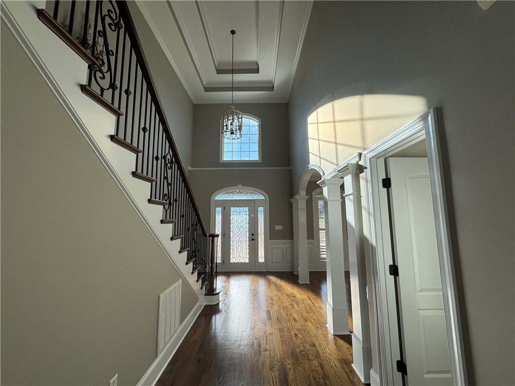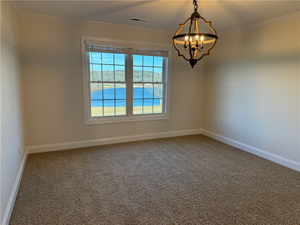 Elegant two-story traditional estate set on 2.50 private acres, offering 4 bedrooms and 3 full baths, thoughtfully designed with a primary suite on the main level. The primary retreat features a private sitting room with fireplace and a spa-inspired bath complete with separate vanities, a large tiled walk-in shower, and a separate soaking tub. The home showcases beautiful hardwood floors throughout and has been recently painted, providing a fresh, refined backdrop. A dramatic two-story foyer welcomes you and opens to a sweeping staircase leading into the formal dining room. Adjacent, the open kitchen offers ample counter space, a gas range, and a sunlit eat-in breakfast area overlooking the patio and pool. The kitchen flows seamlessly into the family room, highlighted by a striking fireplace and a second staircase leading to the upper level. Upstairs, you’ll find three additional bedrooms and two full baths, including a bedroom with views of the private lake and pool area, creating a peaceful retreat. Designed for elevated outdoor living, the backyard features a resort-style in-ground pool, a covered patio with a stone fireplace, and a pool house with a full bathroom—all set within the privacy and beauty of 2.50 acres, ideal for entertaining and relaxation.