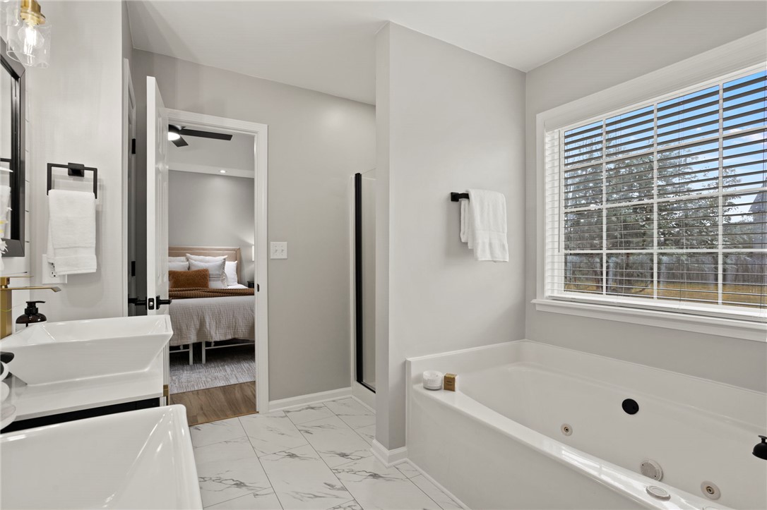 Move-In Ready Modern Ranch with Style, Space, and Serenity! Step inside this beautifully renovated 3-bedroom, 2-bath ranch and instantly feel at home. Designed for both comfort and connection, this home blends modern finishes with warm, inviting spaces — perfect for relaxing evenings or effortless entertaining. You’ll love the open floor plan, where the sleek, modern kitchen flows seamlessly into the dining area and living room. The kitchen features quartz countertops, updated cabinetry, and luxury plank flooring throughout that adds both beauty and durability. The wood-burning fireplace anchors the living room, creating a cozy focal point for gatherings. The spacious master suite offers a peaceful retreat with multiple closets, and a bathroom complete with a separate tub and shower—ideal for unwinding after a long day. Step outside to enjoy your own private oasis. The new deck and fire pit area set the stage for backyard barbecues, quiet evenings under the stars, or morning coffee surrounded by nature. Tons of extra storage space is also available in the attic and crawl space. Located just minutes from I-385, this home offers easy access to shopping, dining, and everything the Upstate has to offer—while giving you the space and serenity of a more relaxed lifestyle. Modern comfort, thoughtful updates, and a perfect location—this one checks all the boxes. Schedule your showing today!