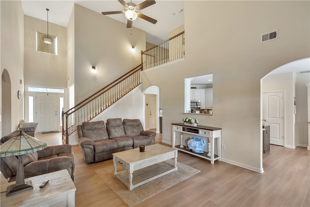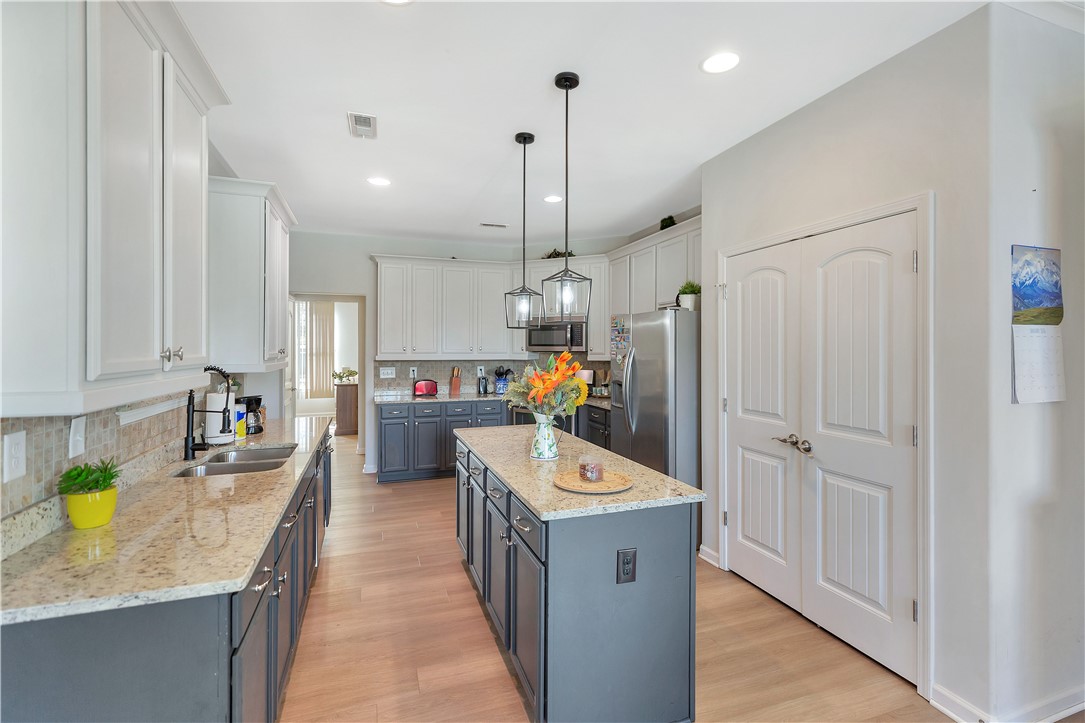 This gorgeous 2-Story + basement Craftsman home with a 0.72-acre lot is located in the Crawford Lake community on a cul-de-sac in the highly sought after Wren School District. This community includes a private fishing lake, giving this home a waterfront view, access, and fishing dock. There is also plenty of privacy from the fenced backyard. This home features admirable architectural design which boasts a 2-story entryway, vaulted ceilings in the living area, and arched entryways. The main level of the home features a formal dining room, spacious living area with gas fireplace, updated kitchen with, breakfast area, and closet pantry. This split floor plan offers a guest bedroom, and primary bedroom with tray ceilings, bay windows, and multiple walk-in closets. On the upper level are 3 more bedrooms with walk-a full bath, and a loft area. The basement has a large recreational room and guest room, full bathroom, large storage room, a kitchenette, and additional rooms to use as you prefer. The backyard has a screened-in back porch on the main level to the large, covered patio on the basement level for years of family enjoyment. A highly sought-after school district, with private fishing lake, and extremely well-built home at a great price! Schedule your private showing today!