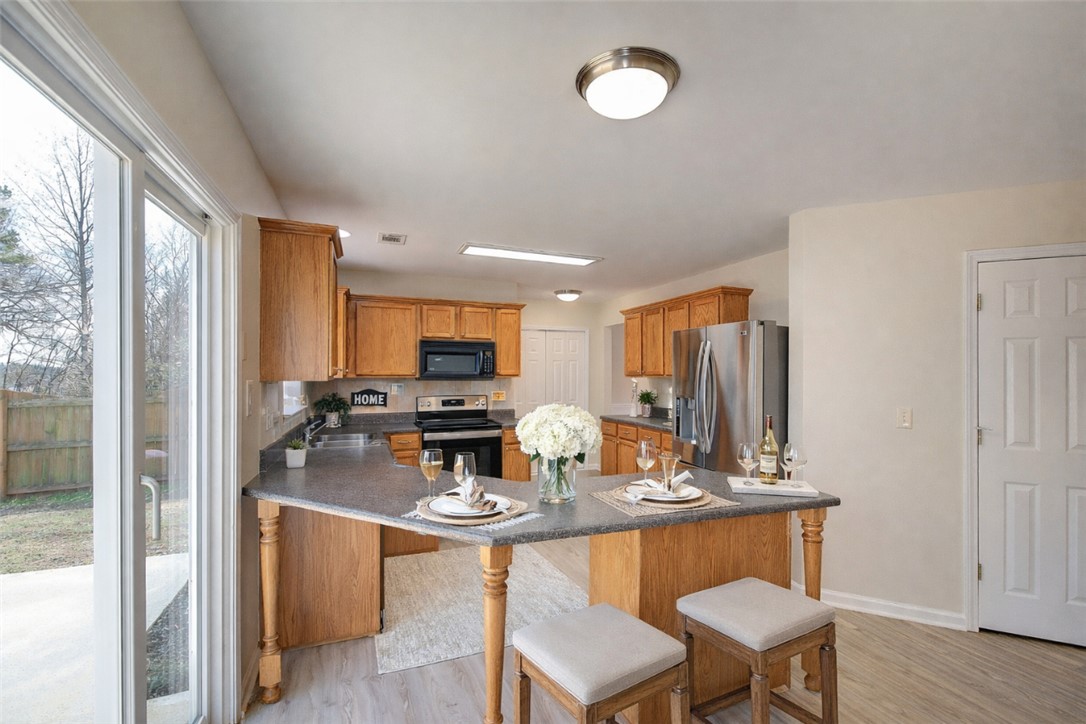 Welcome to 204 Sawyer Dr...this is your chance to own a home in the established neighborhood or River Mist! This four bedroom, 2.5 baths in an almost 2000 sf house awaits your personal touches to make it a home. The large kitchen with extended bar is great for entertaining as you step out on the patio for grilling. And the great is so inviting with laminate wood flooring and gas fireplace for those cool nights. For those more formal dinners, check out the dining room with wainscoating detail. Upstairs you have four bedroooms and 2 full bathrooms. The primary bedroom and bath are very spacious and include a nice walk in closet. The roof was replaced in 2023 and HVAC recently. For those hot summer days, just slip out the back of your fenced in backyard and walk right down to the community pool! This home has been freshly painted and now awaits the new owners!