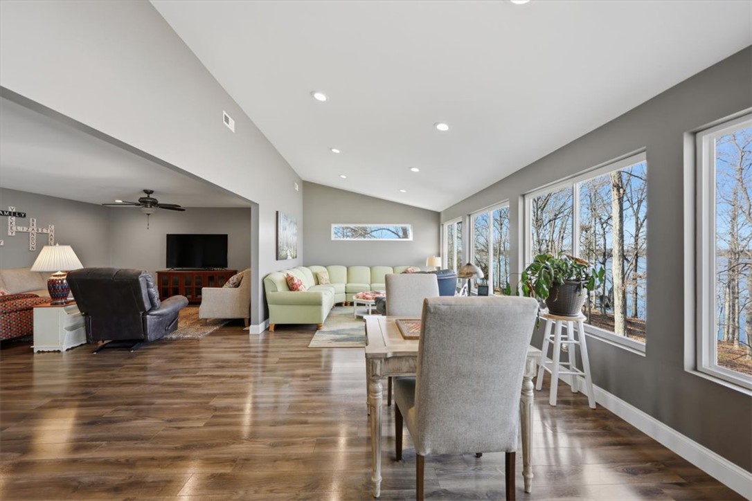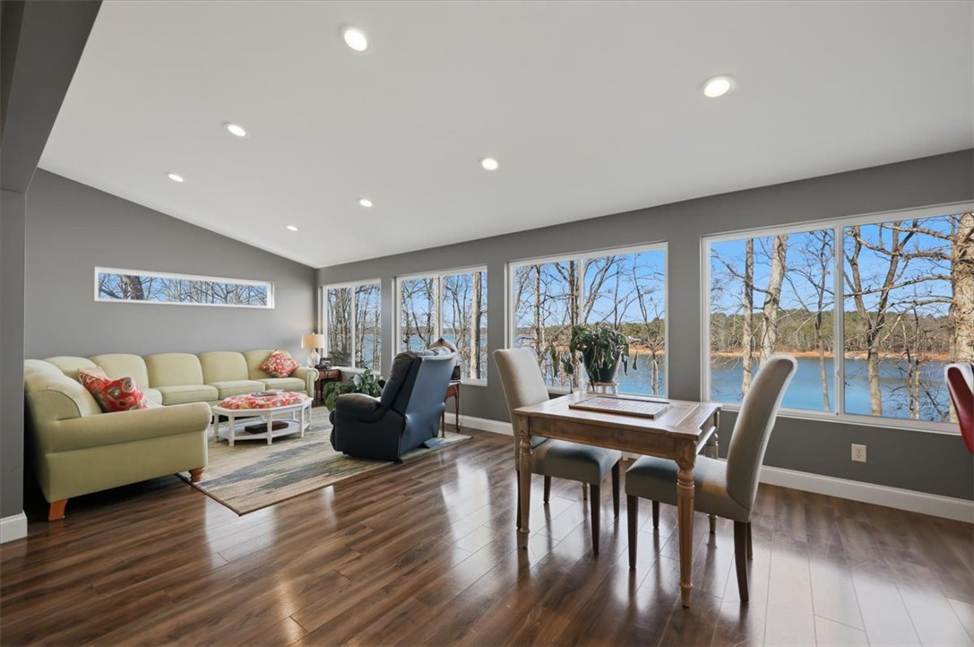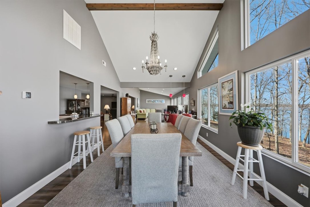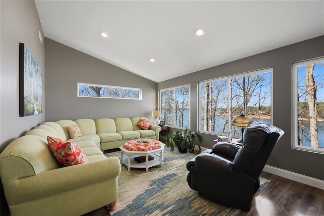 Escape to your dream lake house with deep water dock and spectacular views. This exceptional four-bedroom, three-full bathroom home is a private oasis nestled on the shores of Lake Hartwell, just five minutes from Sadlers Creek State Park with easy access to I85. Perfectly designed for both relaxation and entertainment, the property is ideal for families, nature lovers or anyone looking to enjoy the serene beauty of lake living. The main level, adjacent to the attached two-car garage, includes the primary bedroom with ensuite bathroom and second bedroom with full bathroom, as well as the spacious, open-concept den, living and dining areas that boast panoramic views of the lake. The updated, gourmet kitchen is equipped with stainless steel Wolf appliances, ample cabinetry and large walk-in pantry, perfect for culinary enthusiasts. The lower level offers secondary living quarters that include two additional bedrooms with jack and jill full bathroom, large family room with recreation/flex space, kitchenette as well as access to workshop and ATV/golf cart garage. Expansive patio area overlooks the wooded, well-manicured back yard with lake front. The gently sloped, paved drive provides access to deep water dock (ranging from twelve to twenty-two feet deep depending on water levels), offering two covered boat slips with lifts (equipped with jet ski ramps), composite decking and dock lifeguard system. This cove is a fisherman’s dream, providing the winning catch for the last two consecutive Bassmaster tournaments. Don’t miss your chance to own this slice of paradise.