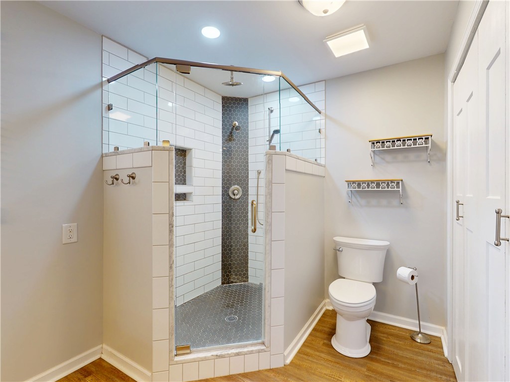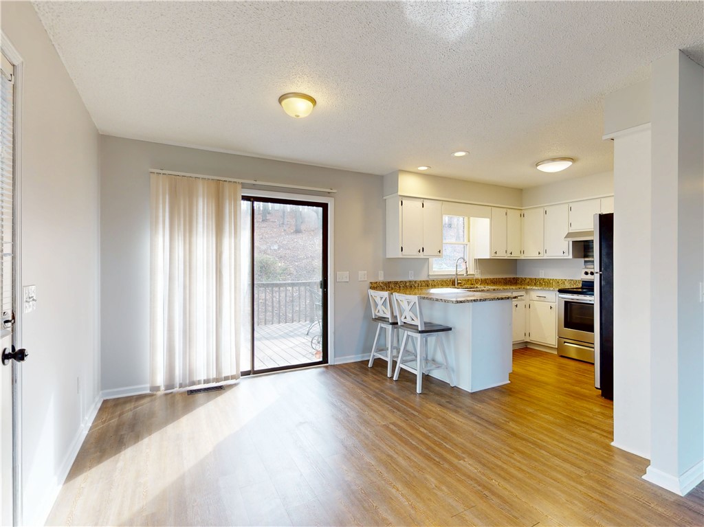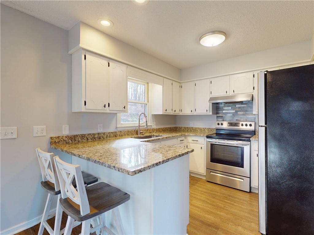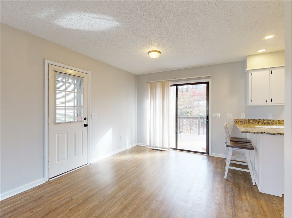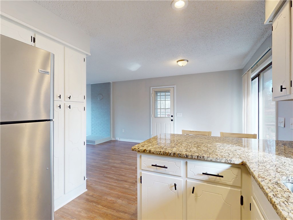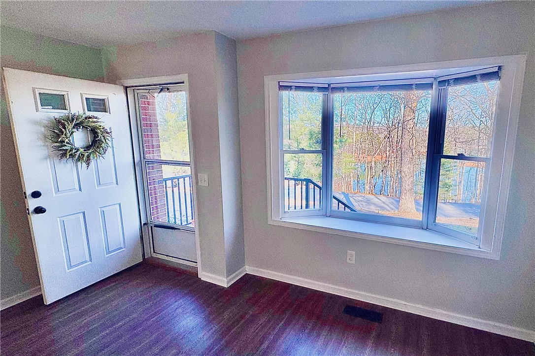 Surrounded by lake views, this fantastic and unique opportunity is only one mile to Clemson University and just five minutes to Martin Creek Boat Landing and Clemson Marina. This spectacularly located, brick home sits on one acre and features an updated kitchen, with stainless appliances, and bathroom, both with granite countertops. The home also has new flooring and fresh neutral paint throughout. The comfortable space has kitchen counter seating with views across the dining and living room to the lake by way of the pleasing bay window. Lake views can also be seen from each bedroom. The dining room has a sliding door to the deck surrounded by gorgeous, wooded views of the private backyard. The spacious two car carport and expanded driveway give you extra options for parking while the one acre property holds loads of extra opportunities, and is already set up with several relaxing sitting areas: from the front yard and porch overlooking the lake, the private back deck and a terraced space overlooking it all. Whether you are looking for a great home location, weekend getaway or an investment, this is your property. The refrigerator, washer, dryer, outside furniture and barstool chairs are included with an acceptable offer. The home its also set up for high-speed internet.