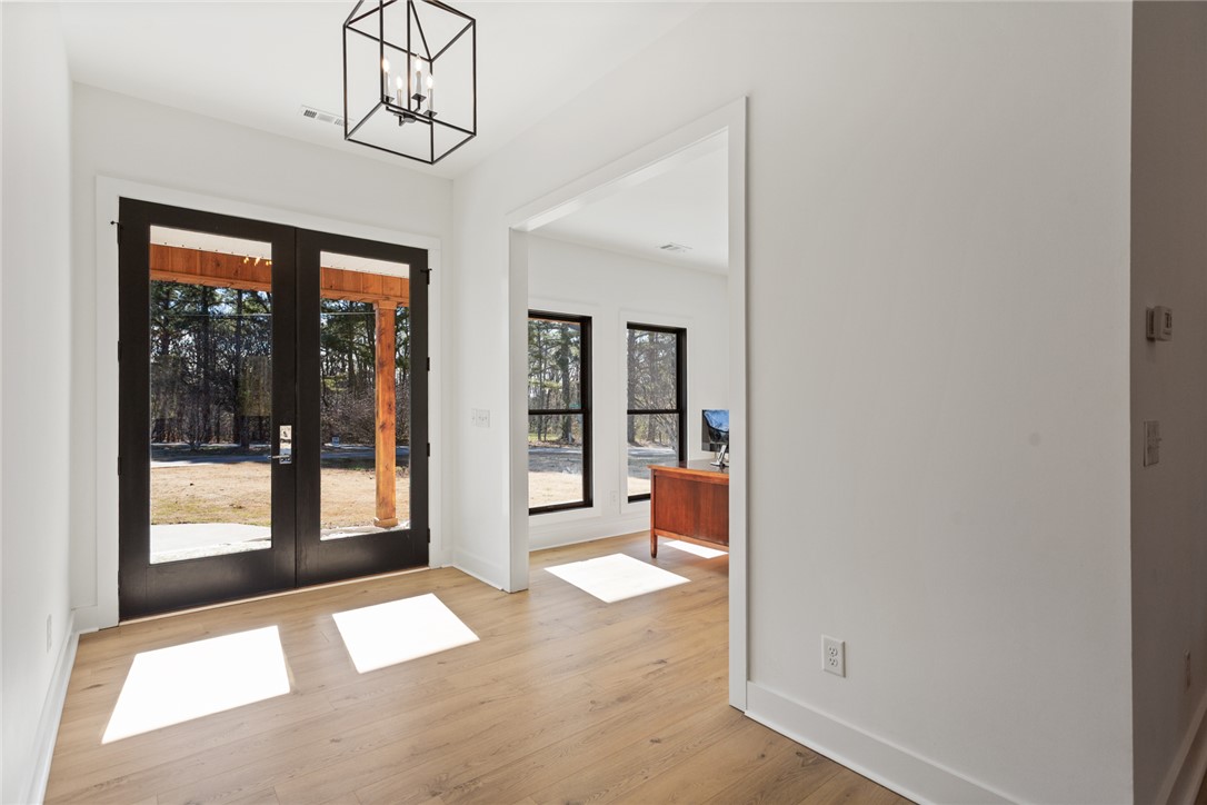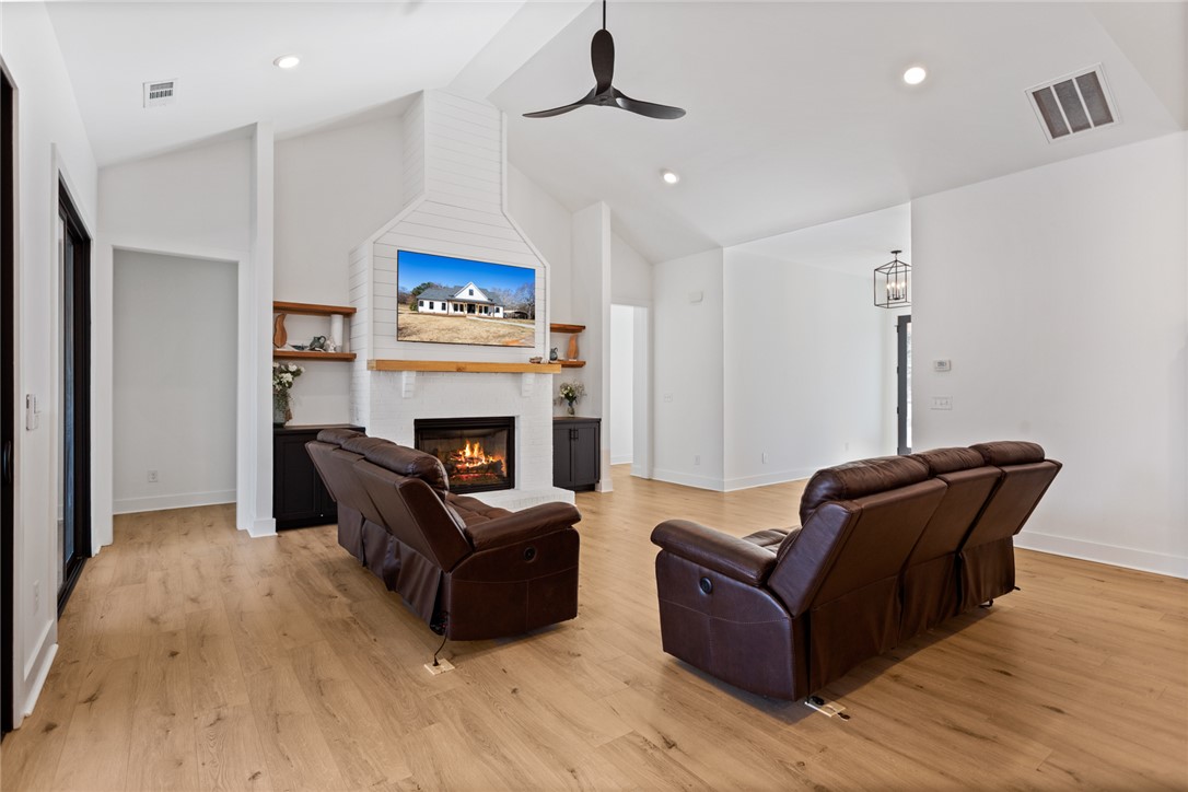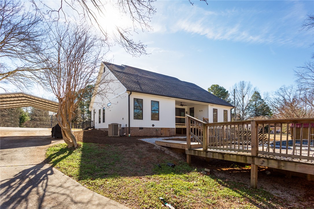 Welcome home to this custom built modern farmhouse on 2 plus acres outside city limits. Step up onto the concrete front porch with cedar columns and enter into your dream home via the double 8ft doors. To the left of the spacious foyer is an office that could easily be used as a dining room, play room or turned into a 4th bedroom by adding a closet & door. Looking into the large open living area, your eye is drawn to the vaulted 14 ft ceiling. The unique custom designed gas log fireplace provides warmth and old world charm. Flanked by cabinets and cedar shelving to display your favorite decor pieces. The 8ft sliders that open onto the covered porch that is perfect for enjoying your morning coffee or your end of the day beverages as you ponder the day looking out over your above ground pool . Back in the kitchen the 10.5 ft island provides lots of prep space for cooking and entertaining, quartz countertops allow for easy clean up and care . Double ovens are perfect for cooking for large gatherings. The gas cooktop & stainless steel hood give this chef’s kitchen a professional appeal and the walk in pantry provides plenty of storage.The dining area is surrounded by roll out windows perfect for enjoying warmer weather.The 8ft door leading to the master suite offers a large closet with natural lighting and plenty of room to store everything! That’s not all , don’t forget the soaking tub and large walk in shower.The split bedroom floor plan offers privacy but not seclusion . Two ample size bedrooms share a full bath and down the hall is a powder room perfect for guests. A large storage closet to help keep the main house neat and tidy and the large laundry room with cabinets and sink are a dream! The tankless hot water makes sure you have instant hot water even shower after shower! Two large outbuildings that are wired, one with roll up doors to house all your outdoor equipment are also included. Schedule your showing today!