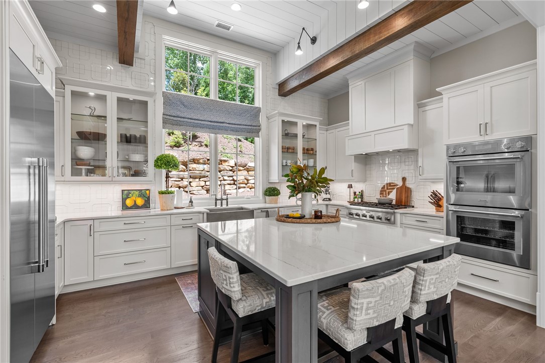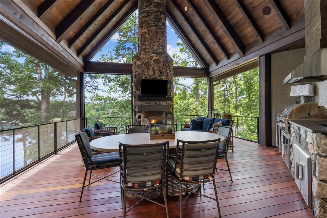 Experience luxury lakefront living at The Cliffs at Keowee Springs with this fully furnished, turn-key home. Built in 2021 by acclaimed Southern Living Idea Home builder Dillard Jones, this 5831 sq. ft. lake retreat combines timeless craftsmanship with modern luxury. Thoughtfully designed for effortless entertaining and year-round enjoyment, this home offers five bedrooms, five full baths, two powder rooms, and expansive outdoor living spaces – all just steps from the water. Inside, you’ll find hardwood floors throughout, soaring beamed ceilings, and walls of windows framing long cove views. The stunning chef’s kitchen features Thermador appliances, Ann Sacks tile, and an oversized scullery/pantry with a second refrigerator, sink, and nugget ice maker. A two-story great room with custom cabinetry, stone fireplace, and dramatic open staircase sets the tone for gatherings both large and small. The main-level master suite is a private sanctuary, complete with motorized blinds, Eastern Accents bedding, and an award-winning bath boasting Italian tile, Taj Mahal counters, and a Victoria & Albert freestanding tub. Downstairs, enjoy a family room with 85” TV, custom bar, wine room, lake storage with second laundry, and three luxurious guest suites – each with king beds and designer finishes. A custom bunk room sleeps seven in style. Outdoor living is equally impressive with two covered patios featuring fireplaces and TVs, built-in grill with soapstone counters, a brick paver terrace, and a fire pit surrounded by Adirondack chairs. The oversized dock offers deep, clear water, a touchless boat cover, mechanical swim stairs, and seating for sunset viewing. Additional highlights include a composite slate roof, an exercise room with Peloton and infrared sauna, a Savant whole-house sound, camera, and security system, a three-car garage with EV fast charging, custom lighting, draperies, wallpapers, and rugs throughout, landscape lighting across the property, and close proximity to The Springs Clubhouse, pro shop, wellness center, and Beach Club. This exceptional home is offered fully furnished, truly turn-key. Negotiable items include a 2021 Super Air GS24 Ski Nautique (210 hrs), two 2021 SeaDoo GTX170 jet skis (32 hrs each), a 2024 GEM e4 EV golf cart (650 miles), paddle board, kayak, and more. This is lakefront living at its finest – a rare opportunity to own a move-in ready retreat in one of the Southeast’s premier communities. A Club Membership at The Cliffs is available for purchase with this property giving you access to all seven communities.