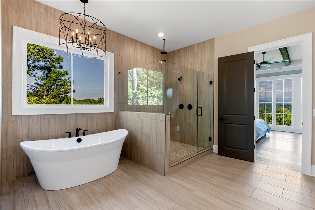 Experience breathtaking mountain vistas and refined mountain living in this beautifully crafted home located in the prestigious community of The Cliffs at Keowee Falls. Perfectly positioned just a short golf cart ride from world-class amenities and Waterfall Park, and conveniently close to the south gate for quick access to Seneca, this residence offers both tranquility and accessibility. Designed with open-concept living in mind, this 5-bedroom, 5 full bath, 1 half bath home showcases a spacious layout filled with natural light, high-end finishes, and timeless style. The main living area features a dramatic floor-to-ceiling stone fireplace, expansive windows that frame the mountain views, and a chef’s kitchen with a large center island, walk-in pantry, and luxury appliances. The adjacent dining space opens to a covered back deck complete with an outdoor fireplace—ideal for year-round enjoyment. On the main level, you’ll find both the elegant primary suite and a guest suite, along with a dedicated home office. The lower level includes two additional guest suites, a generous entertainment area with wet bar, a flexible bonus room perfect for a home theater, game room, or gym, and a second outdoor living space with a fireplace. Above the oversized garage, a spacious guest suite with a private bath and walk-in closet offers additional comfort and privacy. With hardwood flooring, granite countertops, ample storage, and exquisite architectural details throughout, this home seamlessly blends luxury and livability in one of Lake Keowee’s most sought-after communities. A Club Membership at The Cliffs is available for purchase with this property giving you access to all seven communities.