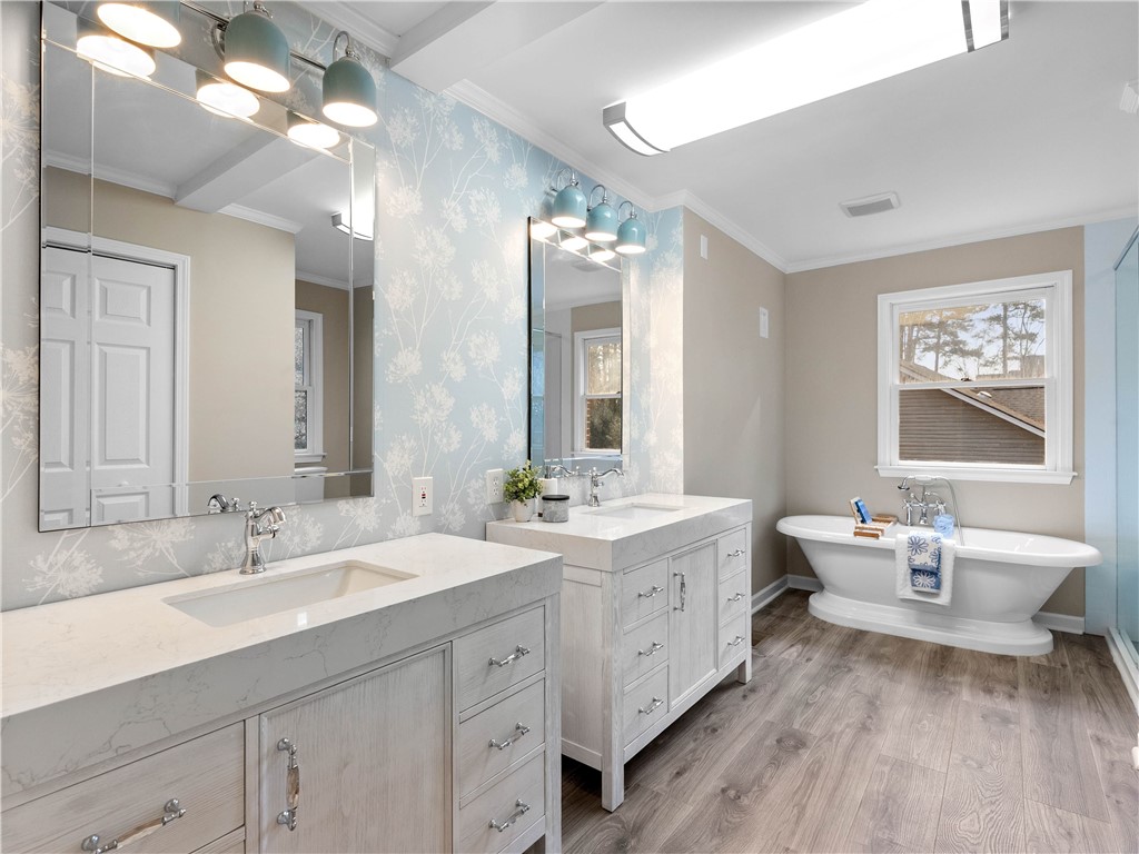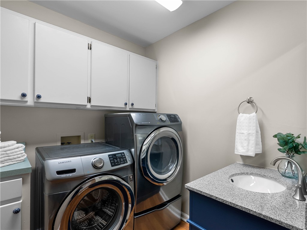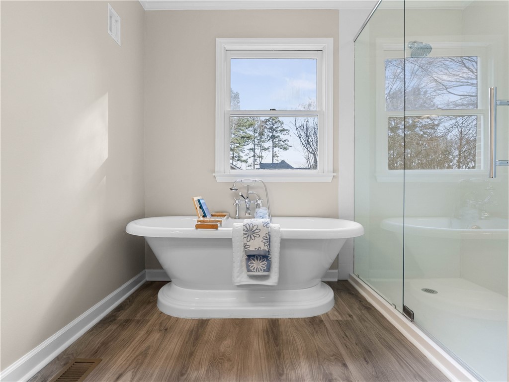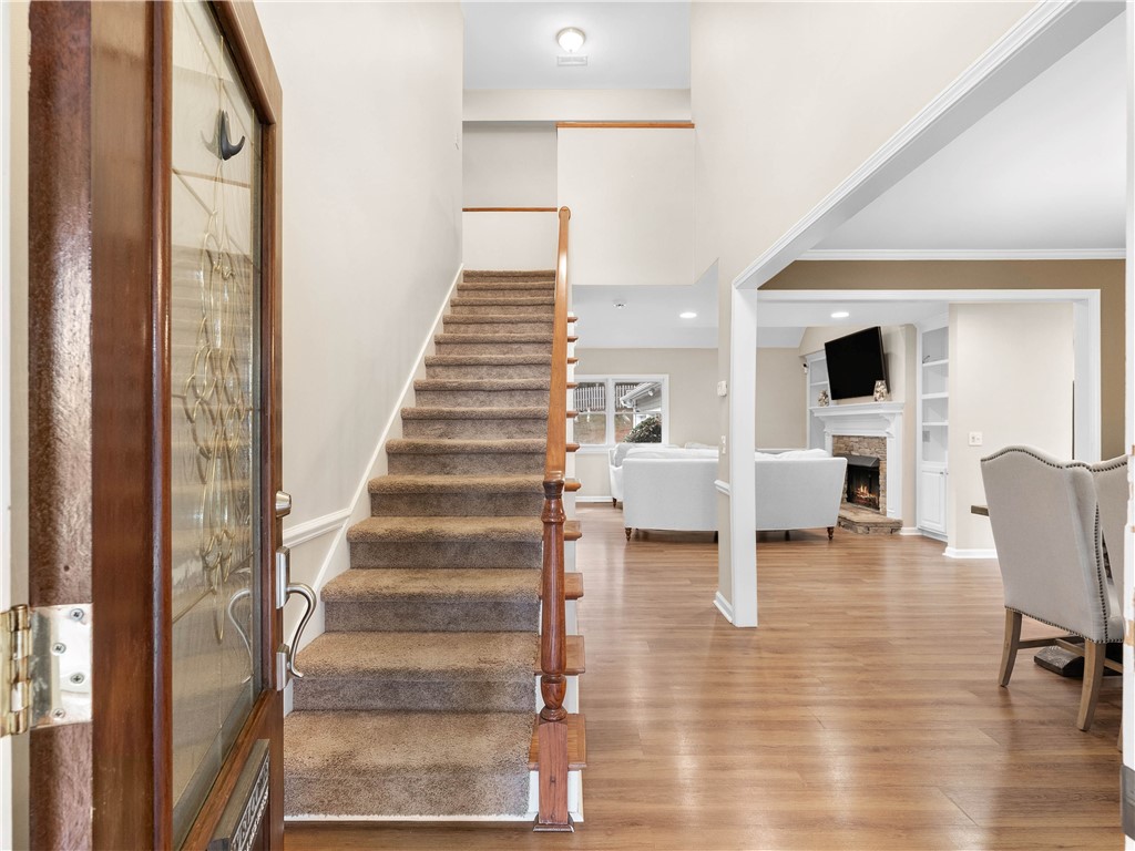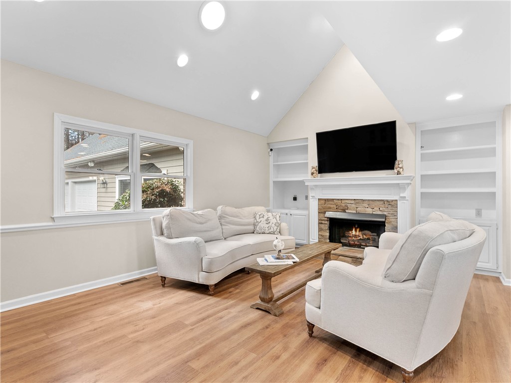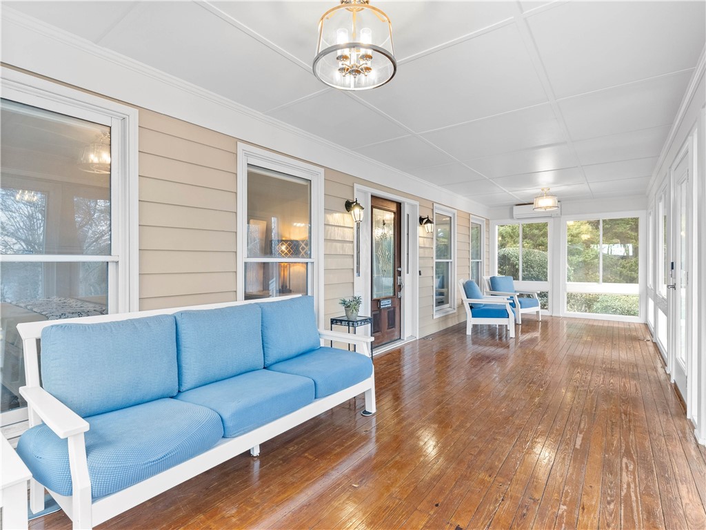 Discover the unmatched versatility of 104 Emerald Pointe offering 3,247 sq ft of sprawling living, plus a detached, two-story 1,600 sq ft, 4-car garage with an expansive upstairs ideal for a gym, game room, office, media room, or additional second living area. The deeded boat slip and community pool are conveniently across the street. Watch passing boats and gorgeous seasonal lake views from the glassed-in front porch. The extensive long driveway provides ample guest parking, along with an extra-large rear parking pad for out-of-sight vehicles and recreational storage. Inside, the main-level primary suite offers a fully remodeled bathroom and an enormous walk-in closet with built-ins. Two ample-sized additional bedrooms, a large private bonus room, and abundant living space including a family room, living room, dining room, and eat-in kitchen. The kitchen offers a gas-stove and a generous walk-in pantry. Additional highlights include a fully encapsulated crawl space with dehumidifier and six HVAC units for efficient climate control and lower energy costs. Samsung HE Washer, HE Dryer, and 70” Samsung TV above fireplace convey. A rare opportunity combining space, flexibility, lake access, and thoughtful upgrades—all in one remarkable home.