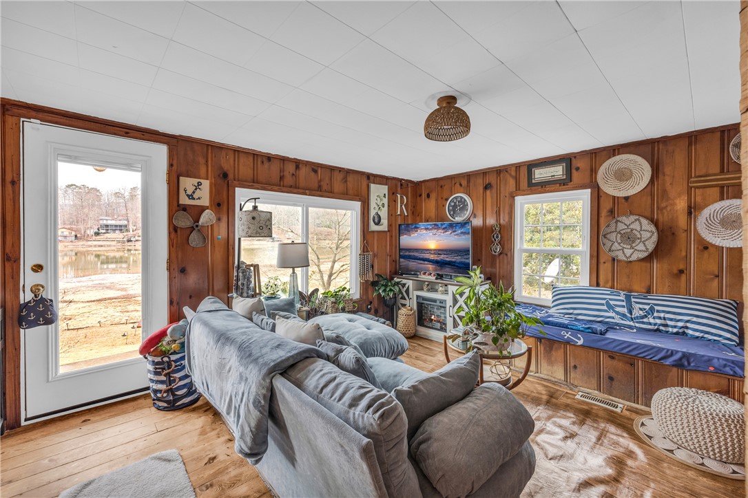 Tucked along the shores of Lake Cherokee, one of South Carolina’s most beautiful private mountain lakes—and large enough for water skiing—this circa-1954 lakefront cabin offers the perfect blend of timeless character and modern updates. This two-bedroom, one full bath home has been thoughtfully improved with a new HVAC system (2025), metal roof (2023), and updated electrical with new panel (2021), all while preserving its historic charm through tongue-and-groove hardwood walls, hardwood floors, and charming built-in sleeping seats. A large screened-in porch provides the ideal place to relax and enjoy the peaceful lake setting, while concrete seawalls and a deep-water, pier-sized dock make lake living easy and enjoyable. The home sits on an exceptionally flat lakefront lot with mountain views and is conveniently located right next to the boat ramp for effortless access to the water. Additional features include a fenced area for pets, carport, and outbuilding for storage or hobbies. With low HOA dues of just $525 per year, this property is a rare opportunity to own on Lake Cherokee. If you’ve been searching for a classic lake cabin with charm, updates, and an unbeatable location—this is truly a must see.
