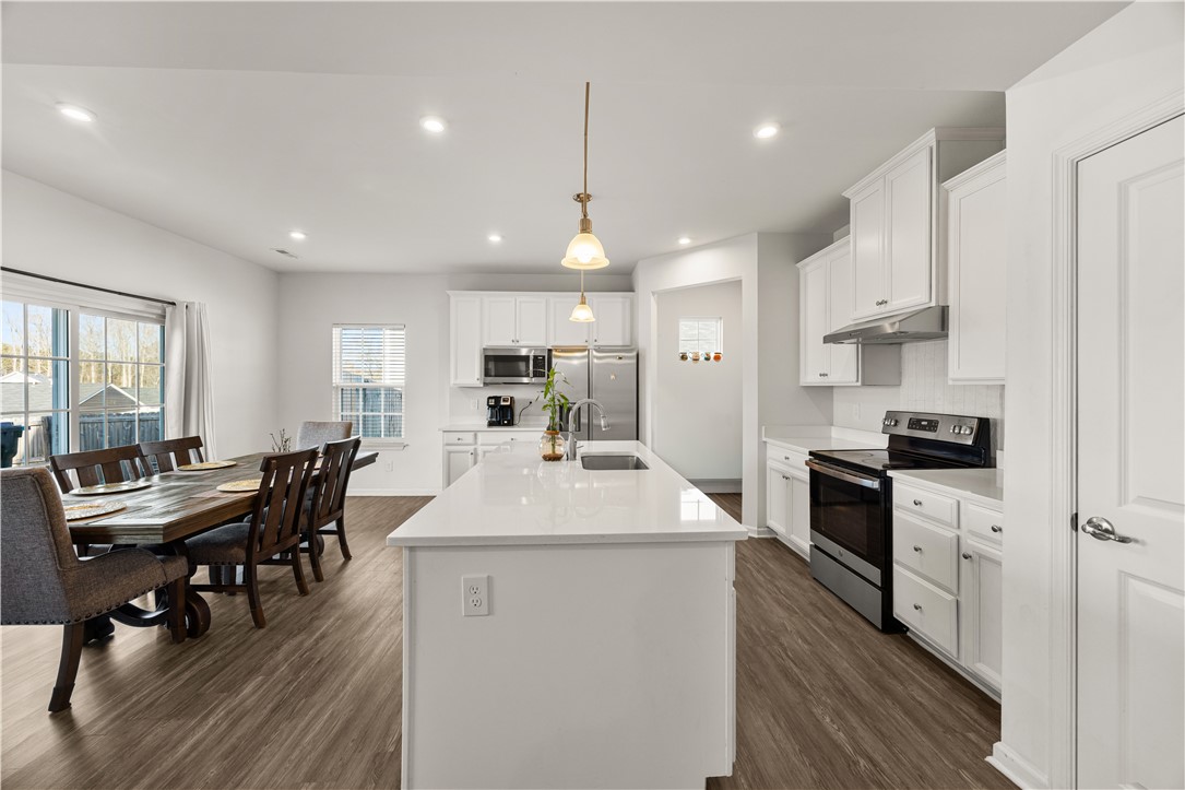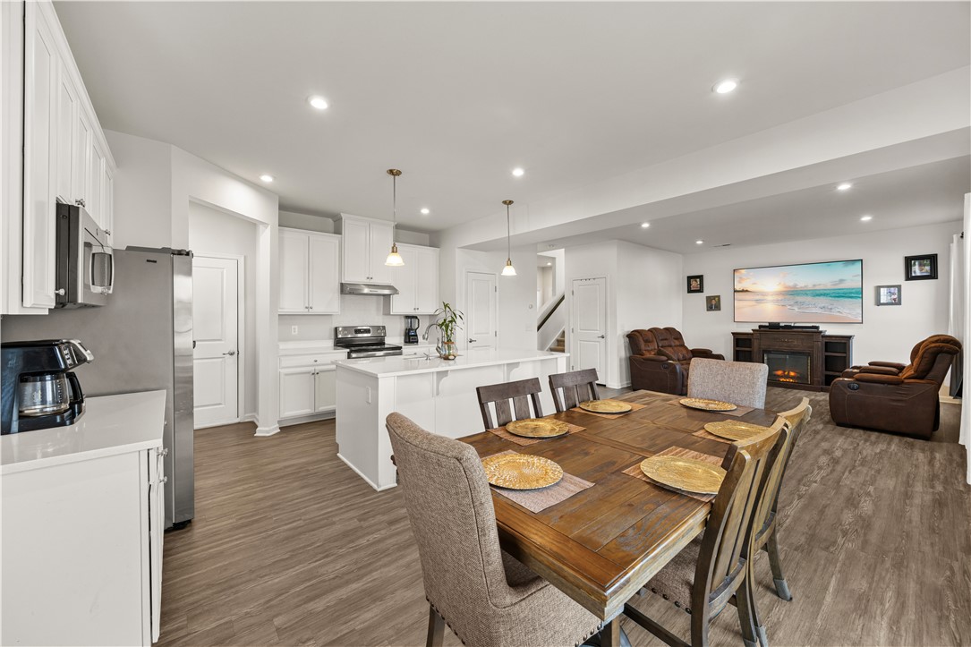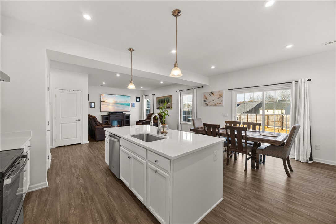 This beautiful home at 8 Wiltshire Court is just a stone’s throw from Highways 123, 8, and 135. Built in 2021, it features an inviting open layout that is perfect for entertaining and keeping guests connected on the main level. The kitchen flows seamlessly into the living and dining areas and offers quartz countertops, a subway tile backsplash, pendant lighting, and LVP flooring throughout the main level. A convenient half bath is also located downstairs. The fully fenced backyard with a concrete patio, offers privacy and space to relax, and the home includes an attached garage. Upstairs, the primary suite boasts a walk in closet, dual vanities, and a walk in tile shower with a seat and glass door. Two additional bedrooms and a full bath are located off the hallway along with a versatile loft area that can serve as a playroom, home office, exercise space, or secondary living or hobby room. Enjoy low HOA fees at Stonehurst Plantation, access to top rated schools, and an easy commute to Greenville. The owner has recently completed some painting projects to ensure the home is in top notch condition for market. Tankless gas water heater if energy efficiency and the refrigerator conveys with the home - so no kitchen appliances to purchase! Don’t forget to add this home to your list!