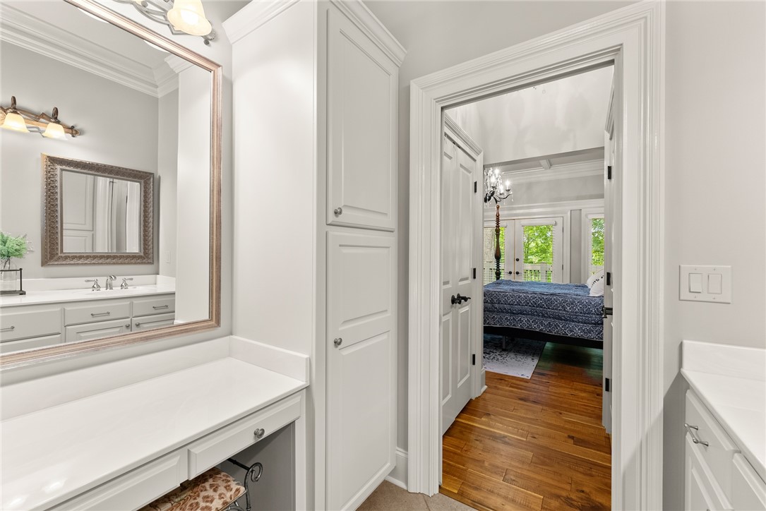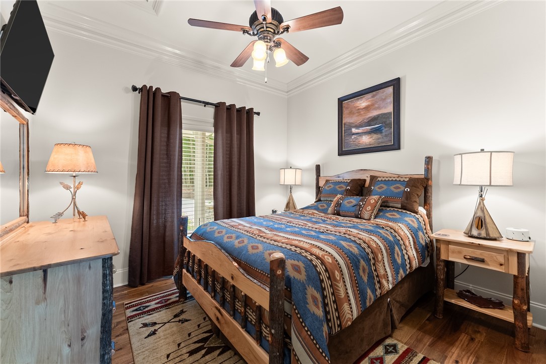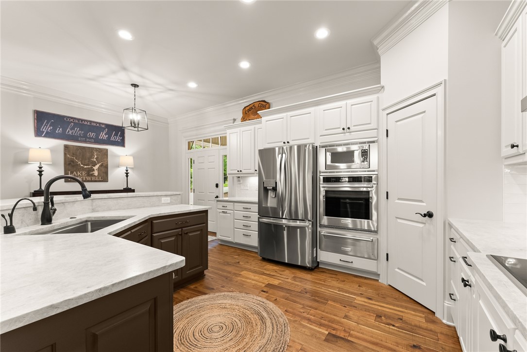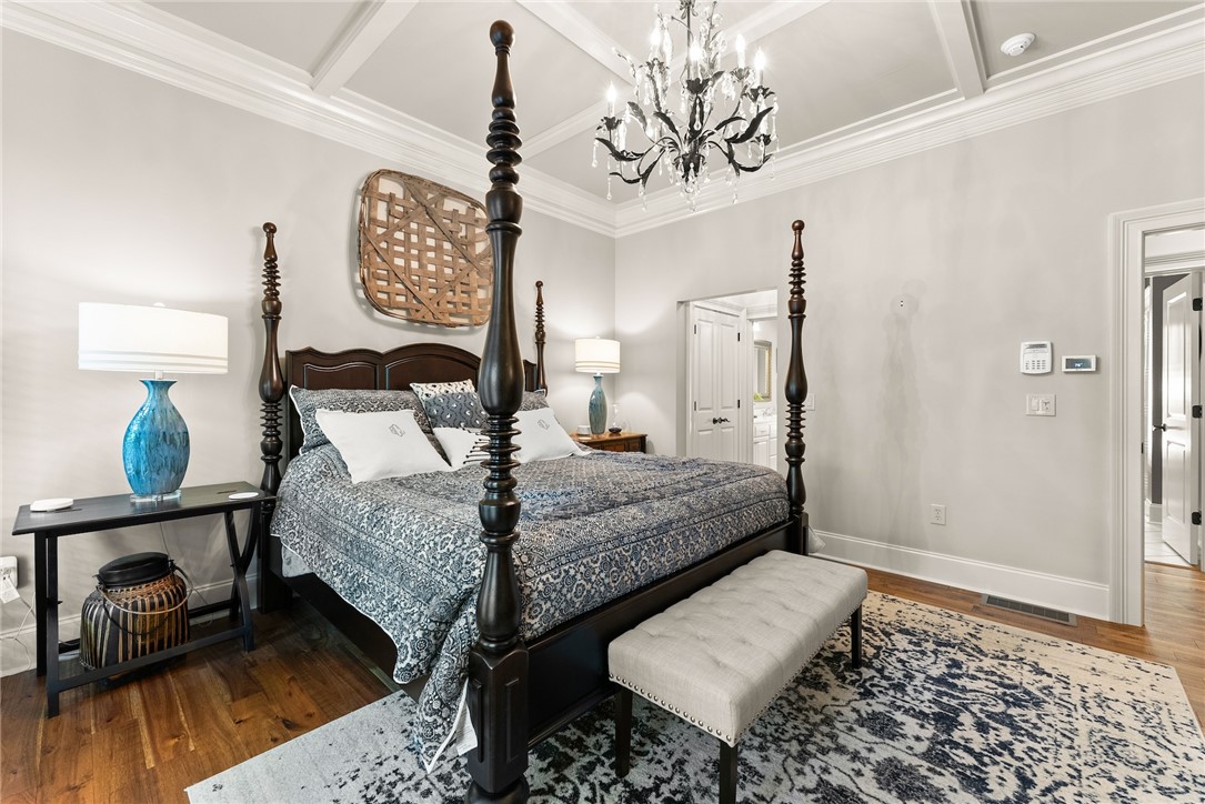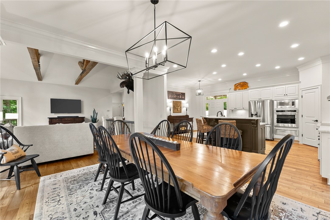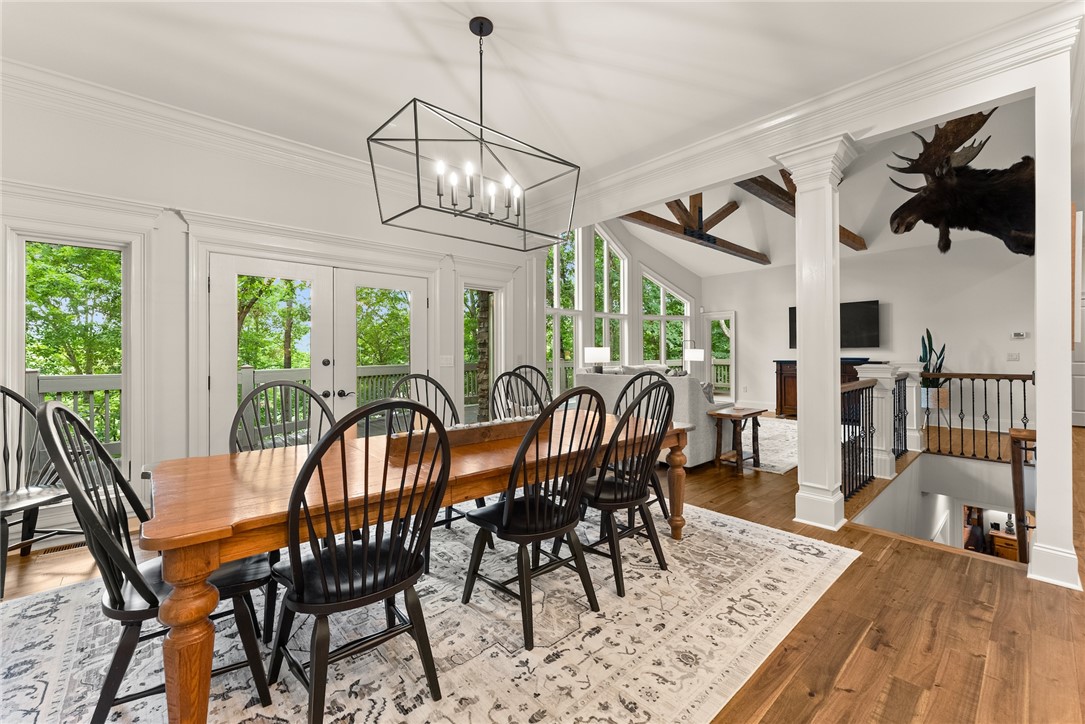 STUNNING, CUSTOM BUILT LAKE FRONT HOME ON DEEP WATER with incredible views of Lake Hartwell is located on a private wooded cul-de-sac. All are sure to relish in the open concept kitchen, dining and living areas. This chef’s kitchen features exquisite designer selections that include quartzite counters, stainless steel appliances - including a Wolf cooktop, acacia hardwood floors, pantry and massive island that is perfect for entertaining. With large, expansive windows throughout, gorgeous light-filled views as well as deck access for dining al fresco, allows for stunning scenery year-round! The flow of the home is seamless as you enter the living room, to include deep vaulted ceilings with rustic, yet sophisticated beam accents. The extra touch of 10' ceilings and extensive molding only enhance the appeal of this dreamy property! The oversized Owner's Suite is located on the main level and includes coffered ceilings, water views with deck access and full en suite bath. The well appointed additional bedroom on the main level and full bath are perfect for family and guests to round off the first floor. As you venture downstairs you will most definitely delight in the spacious, yet cozy additional living area, kitchen, laundry, three bedrooms (two are flex spaces without windows) and two full baths! You will be thrilled with the easy access right onto the covered and screened lower deck - perfectly positioned for additional gathering with friends and family! The backyard golf cart/walking path allows access to your very own dock (Full size dock -largest dock size permitted on Lake Hartwell) with roof top!. This property feels like a lake-getaway dream, yet is still convenient to Clemson University, Anderson, Seneca and I-85. Schedule your showing today, as this breathtaking lakefront property oasis will not be on the market long! **ALL FURNITURE & ADDITIONAL ITEMS IN HOME TO CONVEY**