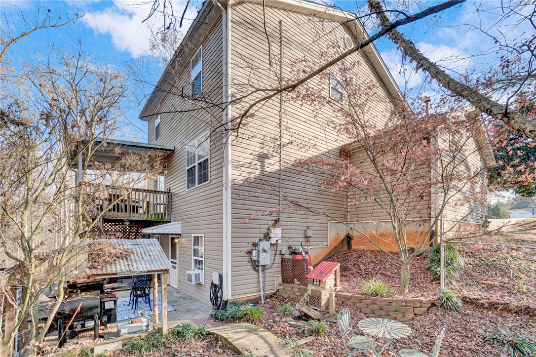 What an unexpected gem on a private .64-acre lot with a peaceful creek backdrop! This two-story home with a partially finished basement offers incredible indoor and outdoor living, including a welcoming front porch, multiple decks, a patio, and a wooded backyard that leads to the creek creating a serene setting that feels like a private retreat. Upstairs features three bedrooms and two full baths, including a spacious owner’s suite with an en-suite bath offering double sinks, a soaking tub, separate shower, and a walk-in closet. The laundry room is conveniently located upstairs, making everyday living easy and functional. The main level is designed for entertaining, with a large great room and dining area open to the kitchen. The kitchen showcases stylish stainless steel appliances, painted cabinets, granite countertops, a tiled backsplash, and an island equipped with seating, a butcher block countertop, and warm wood accents. Thoughtful updates throughout give the home a modern yet comfortable feel. The partially finished basement adds incredible flexibility and space, perfect for hosting game days, movie nights, or gatherings with friends. With room for a seating area, games, storage, and a convenient kitchenette, this level is ideal for entertaining or creating a multi-purpose hangout. Step directly outside to the covered patio overlooking the wooded backyard for an inviting spot to relax, grill, or enjoy quiet evenings surrounded by nature. From here, the outdoor spaces seamlessly connect, with stairs leading up to the main-level deck and pathways guiding you toward the creek below. Whether you’re hosting friends, enjoying peaceful mornings outdoors, or simply needing extra space for hobbies and storage, this home offers it all. Located in the highly sought-after Wren School District, just minutes from I-85, Anderson, and Clemson, with an easy drive to Greenville or Easley. This one-of-a-kind property blends privacy, functionality, and charm and is well-positioned in today’s market; don’t miss this opportunity. Call today to experience it for yourself!