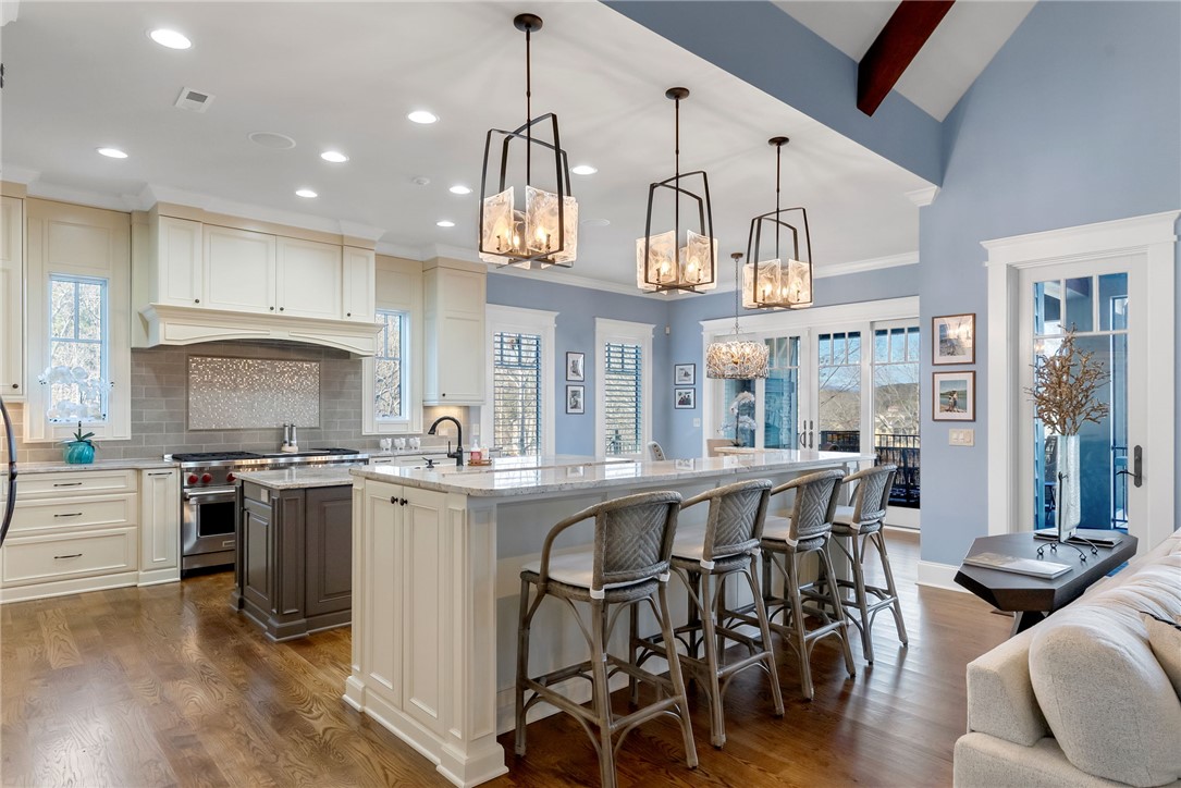 Located within the prestigious gates of The Cliffs at Keowee Springs, 222 Creek Stone Court is an exceptional waterfront residence offering refined luxury, thoughtful design, and unmatched comfort across 6,675 square feet. Built in 2016, this meticulously crafted home seamlessly blends elegant living with modern functionality, all set against the natural beauty of Lake Keowee. The main level features two en-suite bedrooms, providing comfort and convenience for everyday living. Two additional bedrooms on the lower level, along with a finished suite above the garage with a full bath, offer generous accommodations for family and guests. In total, the home includes 8 bathrooms (6 full, 2 half) and multiple private living spaces designed for both everyday living and entertaining. Two great rooms – one on the main level and one on the lower level – create inviting spaces to gather and relax. The lower-level office, complete with a closet and full bathroom, offers flexibility as a private workspace or additional guest suite. A show-stopping eat-in wine cellar with a custom table seating eight and a 1,200-bottle capacity sets the stage for unforgettable evenings. Outdoor living is just as impressive, featuring a custom dock with lift and Swimeze platform, and a hot tub on the lower-level patio – perfect for enjoying lake life year-round. Practical luxury continues with two laundry rooms, each equipped with a dog shower, and a spacious three-car garage. The home is fully equipped with premium systems including a 45kWh Generac whole-home generator, three Carrier dual-fuel HVAC systems, Control4-integrated TV and sound, and a commercial-grade security system. Furniture is included, allowing for a truly turnkey experience, and a 2021 Cobalt RS boat is negotiable, making it easy to step right into the Lake Keowee lifestyle. This is a rare opportunity to own a thoughtfully designed, fully equipped waterfront home in one of the Upstate’s most sought-after communities. A club membership at The Cliffs is available for purchase with this property giving you access to all seven communities.