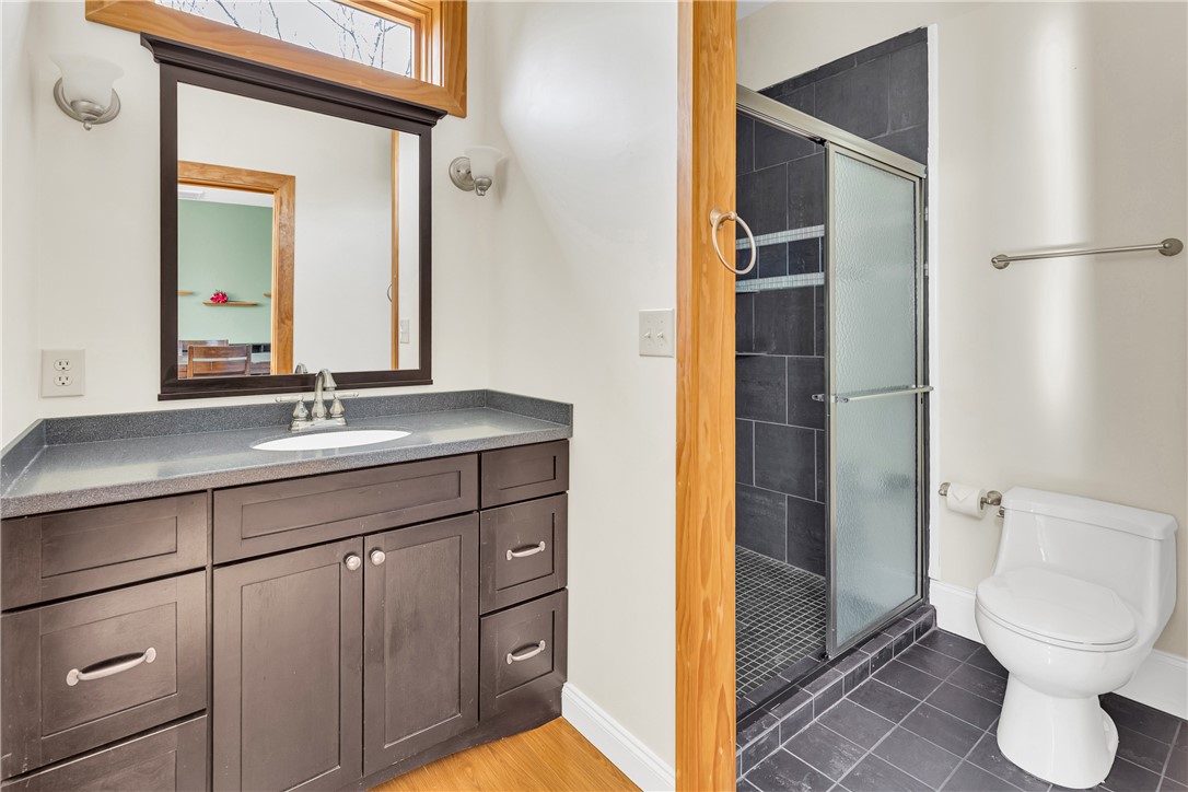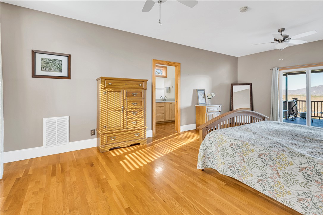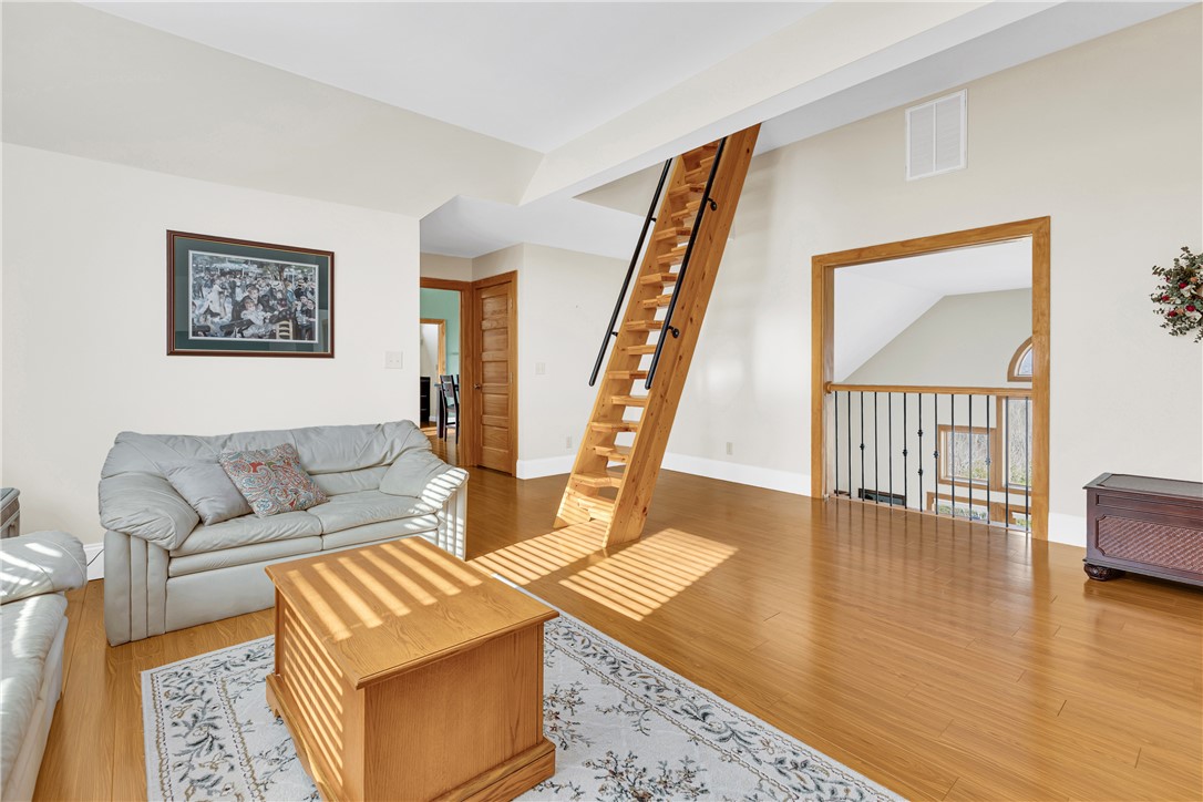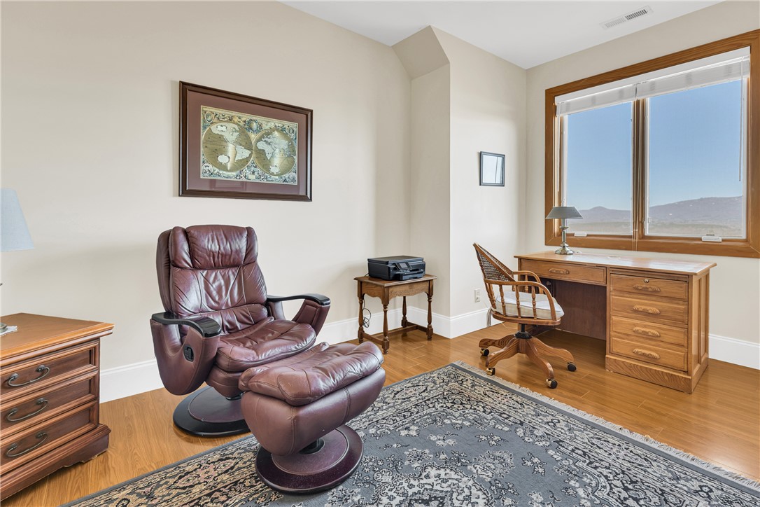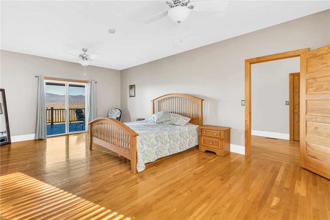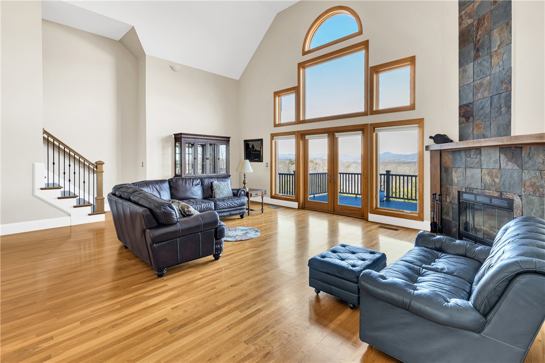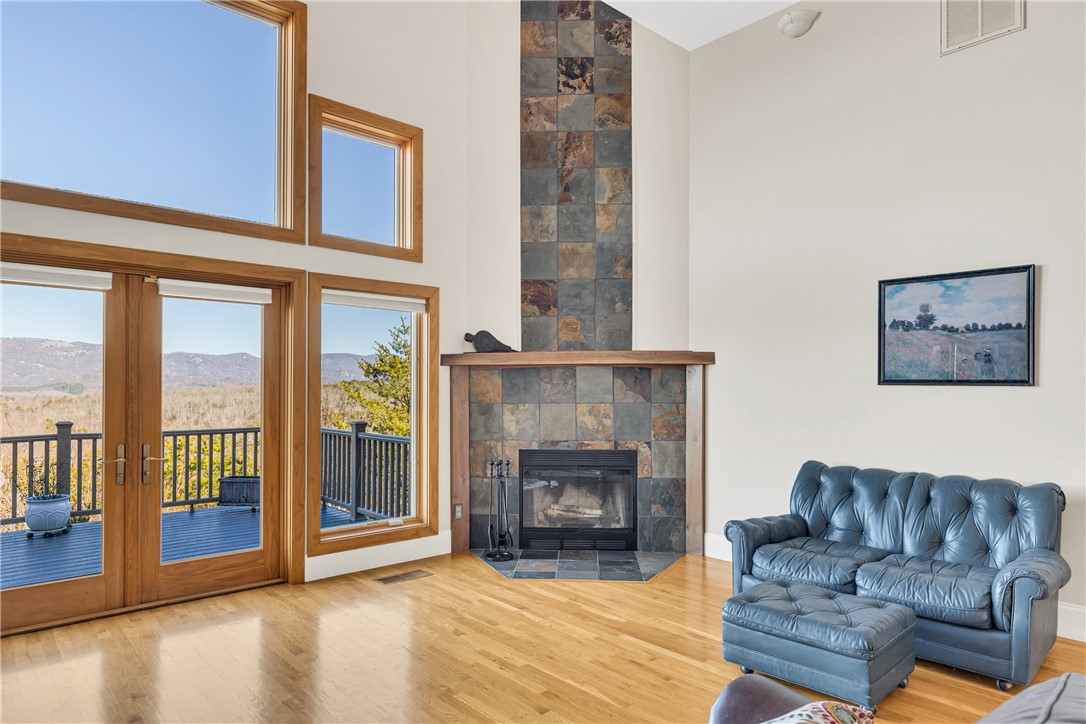 *** Priced below recent appraisal; seller has found their next home!*** Blue Ridge Mountain panoramas fill the windows of this five-bedroom, four-and-a-half-bath home. Thoughtfully designed including 2x6 exterior construction, this home maximizes flexibility; EACH level of the home features a well-appointed bedroom with en-suite bath and a generous living area – ensuring comfort, flexibility, and privacy for both owners and guests. Solid flooring throughout ensures simple maintenance, even with pets or youngsters within. The Great Room is the center hub of the open floor plan, drawing you to it with the warmth of the fireplace in winter and the outdoors via French doors as Spring comes. Maple cabinetry pairs with leathered granite in the kitchen which boasts two convection ovens and downdraft cooktop. The nearby, yet private location of the powder room provides for necessary comforts. The Primary Suite on the main floor boasts direct access to a secluded, covered area on the back deck, ideal for your quiet moments of reflection and relaxing sunset views. Upstairs, in addition to a Second Primary Suite, are two secondary bedrooms—one currently used as a mountain-view office. A gentle pairing of the upper and lower levels can be created via double pocket doors on the balcony. A captain’s ladder leads to the stand-alone third-floor BELVEDERE, a truly distinctive feature ready to become a sunroom, artist’s retreat, or office in the clouds. The lower-level walkout includes a substantial recreation room, paired with additional outdoor living space of its own. Do not miss the Third Primary Suite on this level, currently used for a home gym and sauna. Storage is no concern - including floored, door-accessible attic spaces in the upper level, large under-stair storage area in the lower level, large main entry closets, and an oversized garage that includes ample storage shelves for tools and outdoor sporting goods. Call your favorite agent and set up your showing; you will be glad you did!