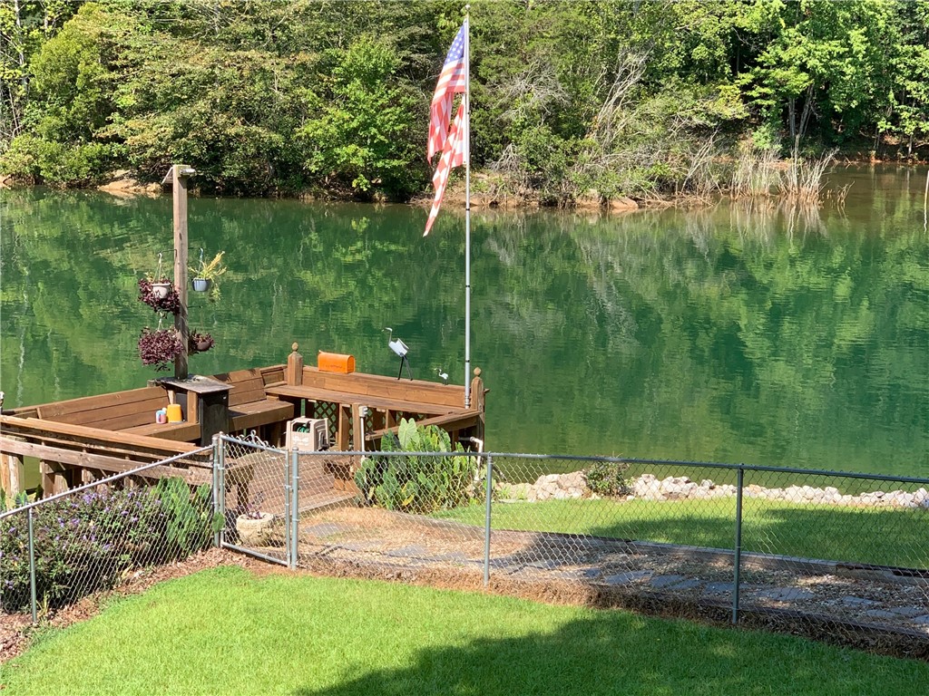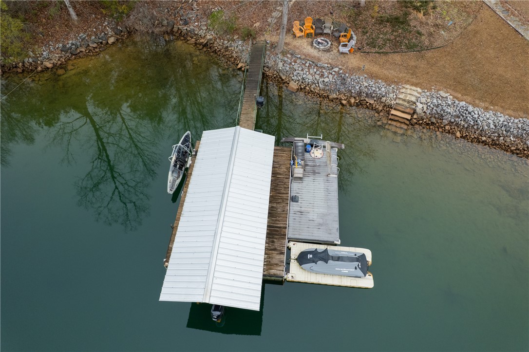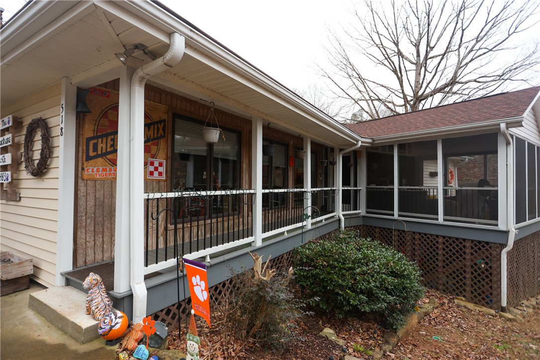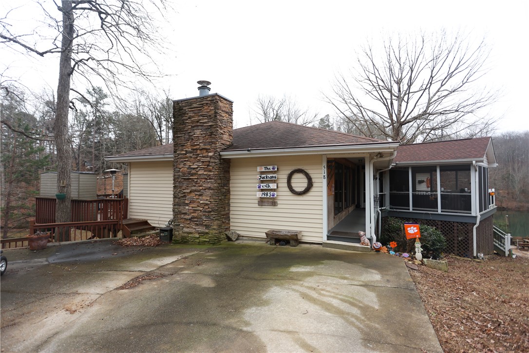 Experience the ultimate blend of Tiger pride and lakefront luxury at 518 Inlet Square Drive. Perched at the end of a quiet point in the Keowee Inlet neighborhood, this home offers a rare combination of privacy and prime location—just 7 minutes from Clemson University and a short boat ride to the Tiki Hut. Uniquely situated on TWO LOTS, the property provides expansive space with the exciting potential for a future subdivision with another home-build. The interior is designed for comfort and entertaining, featuring a living room with a stone fireplace equipped with natural gas ventless logs. The versatile layout includes two traditional bedrooms with two bathrooms upstairs, a bedroom with connecting bathroom downstairs, plus an additional downstairs flex room that serves perfectly as a fourth bedroom. Recent high-value upgrades include a new water heater (March 2025), a 2017 HVAC system, a new side porch, and a transferable termite bond. This is a true "turn-key" lake lifestyle opportunity, as the sale includes a 2006 24' Bentley pontoon with a brand new 2024 115hp motor, a 2013 Yamaha jet ski with only 104 hours, a golf cart, and kayaks. Water enthusiasts will love the floating dock the sellers replaced during ownership, which maintains an impressive depth of 16 to 18' at the end of the dock depending on Duke Energy's water management in order to generate electricity at Oconee Nuclear Station. Outside, an irrigation pump can keep the mature landscaping lush, while multiple French doors and oversized decks offer front-row seats to every Upstate sunset. Whether you are hosting game-day crowds or seeking a peaceful deep-water retreat, this property offers unparalleled value and amenities. Schedule your tour today to see this complete lake package in person.