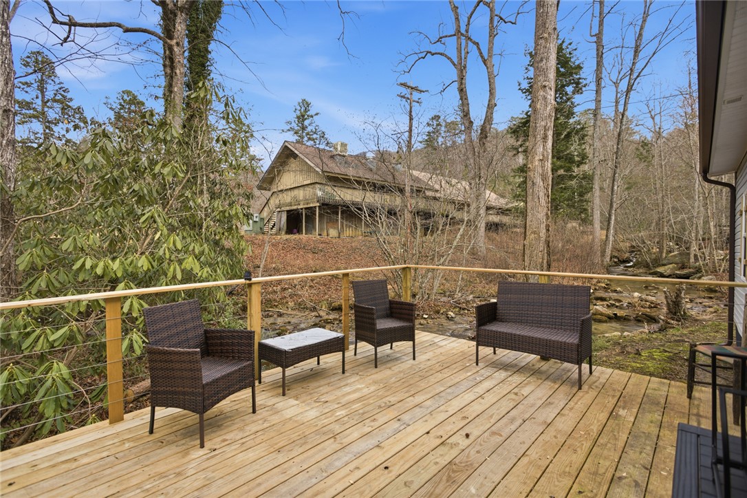 The creek is the heart of this property. A large, flowing creek runs directly behind the home, close enough to hear at all times, creating a peaceful, serene setting that feels like a true escape. Step out onto the deck and relax to the constant sound of moving water—this is the kind of feature you simply don’t see often and can’t replicate. The cozy 2-bedroom, 2-bath home is tucked into a quiet, wooded setting and offers a warm wood interior with an open, inviting living space. Recent updates include a new roof and HVAC in 2025. The property is on well and septic, with no HOA and no restrictions, making it ideal for a short-term rental, weekend getaway, or full-time retreat. One-of-a-kind properties like this are rare, and this setting truly sets it apart.