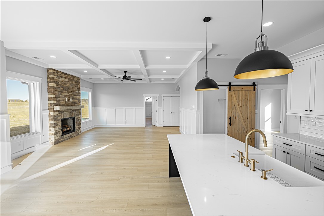 Spectacular brand-new and move in ready 3-bedroom, 3-bath modern farmhouse by Alex Craft Homes with a spacious bonus room, situated on a serene 2+ acre lot. This thoughtfully designed home offers exceptional craftsmanship, timeless style, and elevated finishes throughout—truly everything you’ve dreamed of and more. Built with outstanding quality and attention to detail, this home features gorgeous flooring, stunning countertops, beautiful trim work, and high-end fixtures that create a warm, welcoming, and luxurious feel. As you step inside, you’re greeted by an open-concept living area enhanced by a coffered ceiling and a striking floor-to-ceiling stone fireplace. The gourmet kitchen is a true showstopper—complete with a large island, quartz countertops, soft-close cabinetry, a deep farmhouse sink, convenient pot filler, and top-of-the-line LG appliances. The dining area showcases elegant wood ceiling beams and wainscoting, blending rustic charm with modern sophistication. The spacious primary suite offers a peaceful retreat, highlighted by a sliding barn door and a spa-like bathroom featuring double vanities, marble-style tile flooring, and a beautifully tiled shower. Located in an attractive and desirable area, this home provides both luxury and peace of mind, complete with a builder’s one-year warranty.