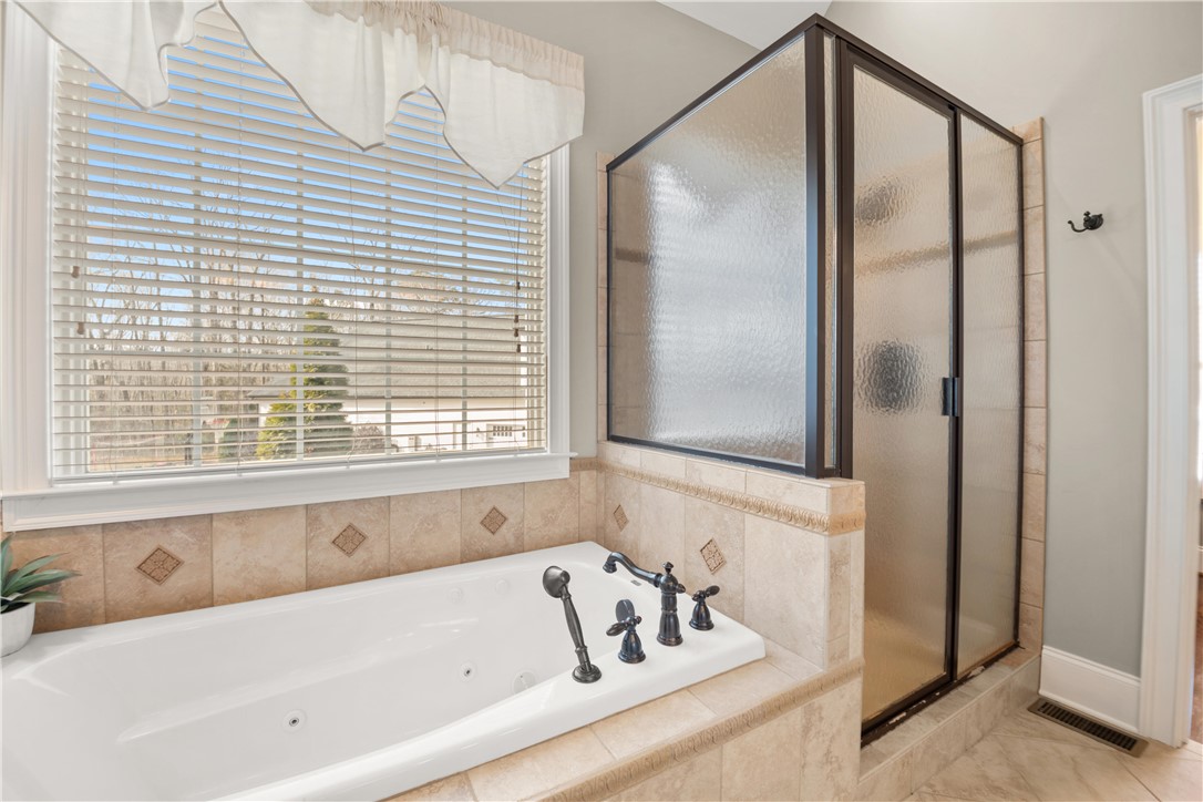 Beautiful 5-bedroom, 3.5-bath home with 3,100 sq ft of well-designed living space. The main level features a spacious primary suite with jetted tub, body-spray shower, walk-in closet, and his-and-her sinks, plus a second main-level bedroom and full bath—great for guests or a home office.The kitchen has dual pantries, under-cabinet lighting, Bosch appliances and abundant storage, opening to a cozy living area with a gas fireplace. Upstairs includes three additional bedrooms with a Jack-and-Jill bath, spacious flex room and temperature-controlled storage.Enjoy your private backyard oasis with a saltwater pool featuring a new liner (2023), new salt cell, new pump (2025), and a robotic pool cleaner for easy, low-maintenance care. The covered porch includes a half bath, plus an irrigation system and no-build land behind the home for lasting privacy.Major upgrades include a whole-house generator (installed 9/2023 with 10-year warranty), central vacuum, underground electric pet fence, 3-car garage with 100-amp subpanel, EV charging outlet, and room to add two more.Located in a neighborhood with an HOA; however, this property is not subject to HOA covenants, as it was purchased prior to filing—offering flexibility without restrictions.Move-in ready and thoughtfully updated!