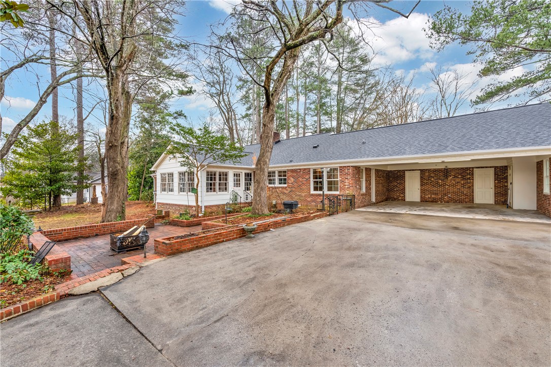 Completely renovated traditional brick ranch, stately positioned on a desirable corner lot just minutes from Downtown Easley. This home exemplifies refined one-level living, offering both elegance and functionality with formal dining and living rooms, a sunroom, den, breakfast area, and a slate foyer. The residence features three bedrooms and two-and-a-half baths and has been thoughtfully updated inside and out. Major improvements include all-new electrical and plumbing, a new roof, HVAC system, windows, and a tankless water heater, providing peace of mind and modern efficiency. Elevated selections throughout showcase the home’s timeless appeal, including real hardwood floors, a neutral color palette, stylish wallpaper, curated light fixtures, custom built-in bookcases, and beautifully tiled bathrooms. Additional highlights include a walk-up floored attic and a 538 square foot partially finished basement with fireplace, offering endless possibilities for additional living, recreation, or storage space. Set on a spacious .89-acre lot, the outdoor setting features a brick patio, circular driveway, mature trees, and ample room for privacy and future transformation. A two-car carport with heated and cooled storage completes the home’s thoughtful design and everyday convenience. Ideally located just minutes from Highway 123, shopping, dining, and Downtown Easley, with easy access to Clemson University and Downtown Greenville, this home offers a rare blend of traditional luxury, extensive updates, and prime location. **Total square footage of the home is approximately 3482. Finished first floor is 2944 square feet and partially finished basement is 538 square feet.**