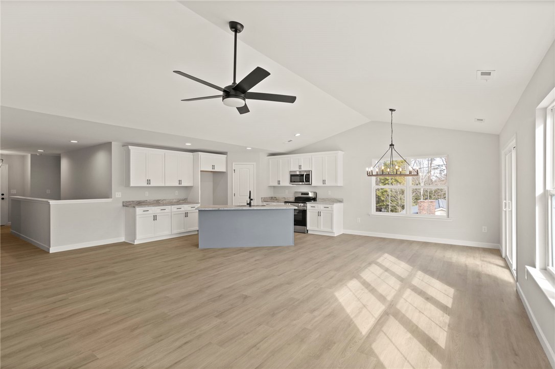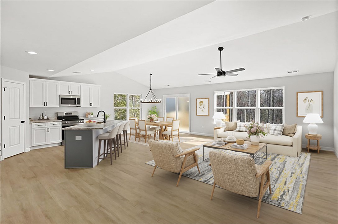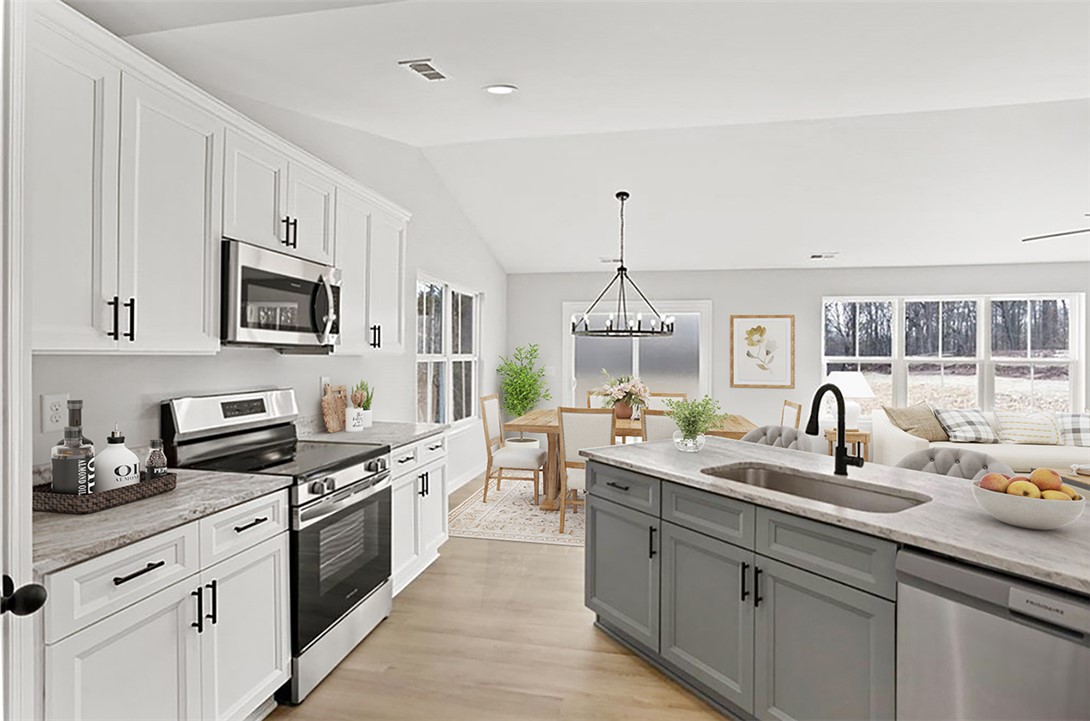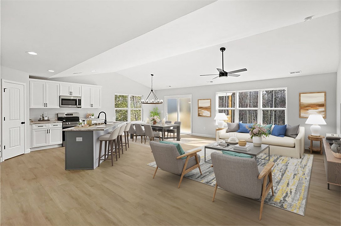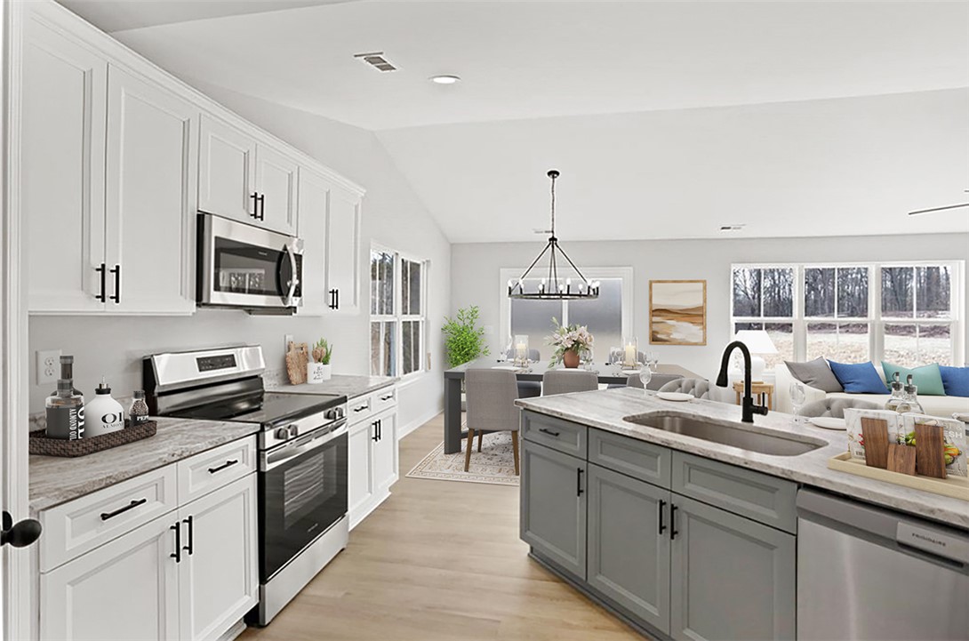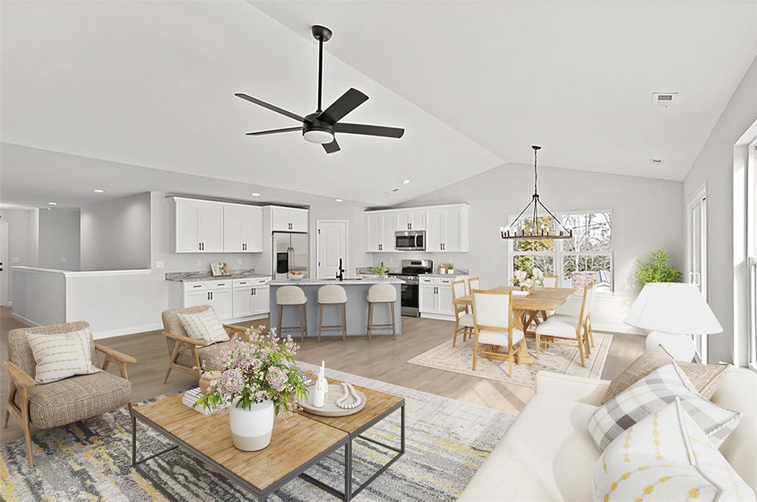 Better than new home with two full living spaces on a private half-acre, no HOA. This beautifully designed home offers a layout that truly works for today’s lifestyle. The open main level features a vaulted great room filled with natural light, an oversized kitchen island, and a dining area that flows seamlessly for everyday living and entertaining. What sets this home apart is the fully finished lower level, offering an expansive media room, game room, home office, and a kitchenette with dining space. Whether you need room for teens, guests, working from home, or hosting friends, this lower-level functions like a second living space, something rarely found in this price range. The primary suite is a relaxing retreat with a spa-style bath, soaking tub, walk-in shower, and double vanity. Two additional bedrooms and a full bath on the main level provide easy one-level living, while the lower level adds incredible flexibility for the future. Outside, enjoy a private half-acre lot with no HOA restrictions and plenty of room for outdoor living, entertaining, or future additions. If you’ve been looking for a home that feels brand new, offers space to grow, and provides flexibility most homes don’t, this one stands out. -Finished Basement with media room, game room, office and kitchenette. -Two full living spaces -Open main level layout with vaulted great room -Oversized Kitchen Island -Primary suite on main level -Ideal for families, guests, or work from home buyers. -NO HOA