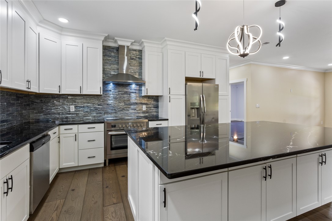 322 Old Shirley Road is a beautifully designed 4-bedroom, 4-full bath and 2-half bath custom home all on one level, perfectly situated on 1.09 unrestricted acres. Each bedroom has its own private full bathroom, making this home ideal for families, guests, or Clemson students seeking shared upscale living. The open-concept layout features wide-plank hardwood floors, elegant crown molding, and a chef’s kitchen with white shaker cabinets, sleek black stone countertops, a large island, stainless steel appliances, and a designer tile backsplash. Spacious living and dining areas offer ample room for entertaining, while the bathrooms showcase custom tile work, high-end vanities, and glass-enclosed showers. Additional highlights include two half baths (one in the laundry/mudroom), a circular driveway and a peaceful setting. With no subdivision restrictions and proximity to DW Daniel High School, Ingles, Lowe’s, Walmart, and local dining, this property offers the perfect combination of luxury, flexibility, and convenience—all just 10 minutes from Clemson. Home also comes with low electrical bills due to the paid for solar panels!