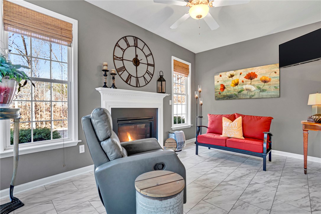 I love homes that feel calm the moment I step inside and 132 Fledgling Way in Easley SC is exactly that kind of place. This home has been so thoughtfully cared for that showing it feels effortless. It is spotless inviting and truly move in ready. When I walk through the front door I am immediately greeted by an open floor plan that feels warm and welcoming. The dining room is generously sized and easily holds larger furniture which makes hosting family and friends feel natural and comfortable. The family room draws me in with its tall ceilings and open connection to the sunroom which quickly becomes a favorite space in the home. The sunroom features a fireplace and large windows that frame peaceful views of the backyard where the home backs up to woods and a small creek. It feels private quiet and connected to nature. The kitchen is clean as a pin and beautifully maintained. There is plenty of cabinet space and lots of counter space including new counters added in 2024. The appliances were replaced in 2020 and everything feels fresh functional and timeless. I especially love the breakfast area overlooking the backyard which makes everyday moments feel special. One of the details that always makes me smile is the new sunscreen flooring installed in November of 2024 which adds comfort and polish to the living spaces. Fresh paint completed about two years ago still feels crisp and current and the carpets throughout the home are fresh and clean. The primary bedroom is thoughtfully split from the guest rooms creating a quiet retreat. Vaulted ceilings add volume and light and the double closets provide excellent storage. The private bath offers double sinks and a walk in shower and the cool wallpaper in the primary bath adds just the right touch of personality without overpowering the space. The guest rooms are well sized with good closet space and neutral colors that make it easy to settle right in. The guest bath offers ample counter space and continues the same clean classic feel found throughout the home. Outside I appreciate how completely landscaped this property is on all four sides. The lawn is professionally treated and beautifully maintained and the level yard is perfect for relaxing or entertaining on the patio. A site built outbuilding conveys with the home offering additional storage or flexibility for hobbies and projects. Easley SC is such a wonderful place to call home with its charming downtown local restaurants community events parks and easy access to Greenville and Anderson. Homes like this do not come along often especially one that has been so lovingly maintained. 132 Fledgling Way truly feels like a dream come true and a place where the next chapter is ready to be written.
