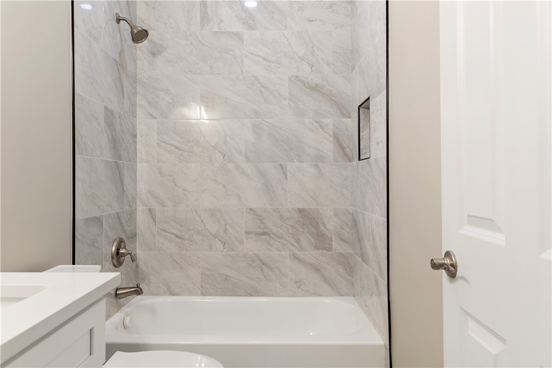 If you are house hunting, you must see this lovely brand-new construction home in Fox Run Estates, just 0.4 miles to Sertoma Field and 1.5 miles to the Main Street Walhalla bustling businesses and restaurants. This home is located inside the Walhalla Elementary, Middle, and High School zone. This is a 3-bedroom, 2-bathroom split floorplan with a two-car attached garage. Through the front door, you walk into the open concept living room, dining room and kitchen. The vaulted ceilings make the home feel larger than it is at approximately 1384 square feet. The bright white kitchen boasts beautiful quartz countertops, stainless steel appliances, unique light fixtures, an island with an extended countertop for bar stool seating, and a pantry closet located immediately left of the refrigerator. Once the warmer weather arrives, go out your patio doors and eat al fresco on the back covered porch. This porch is sure to be someone’s favorite area of the home because it feels like you are sitting in a tree house! On the left side of the floor plan, a laundry room sits at the end of the hallway with its own window to help make that job a little brighter. The master bedroom has a full bathroom with a lovely tiled walk-in shower and a separate walk-in closet. The entrance from the garage is also on this side of the house. The right side of the home has two spare bedrooms, a full hallway bathroom with a full tub and tiled shower. Each spare bedroom has a towel closet outside their door. Luxury vinyl flooring lays throughout most of the home and tile flooring is in both bathrooms and the laundry room. Vinyl siding and architectural shingles will help this home be low maintenance. Concrete driveway will be poured/included. Ask about the $7,000 incentive for first time home buyers!