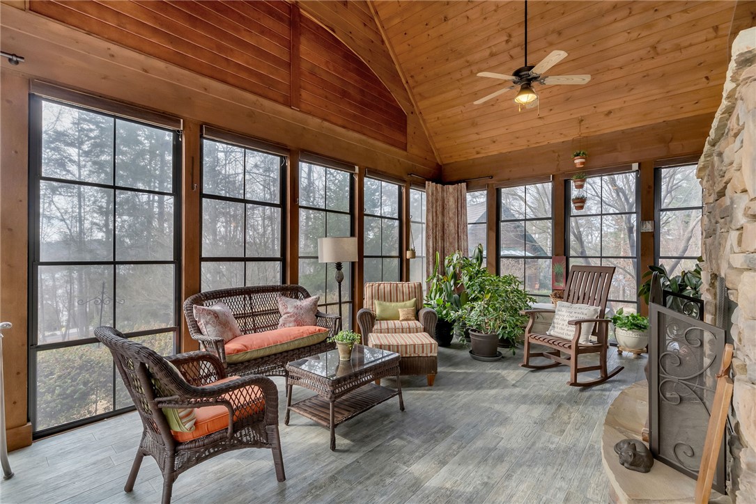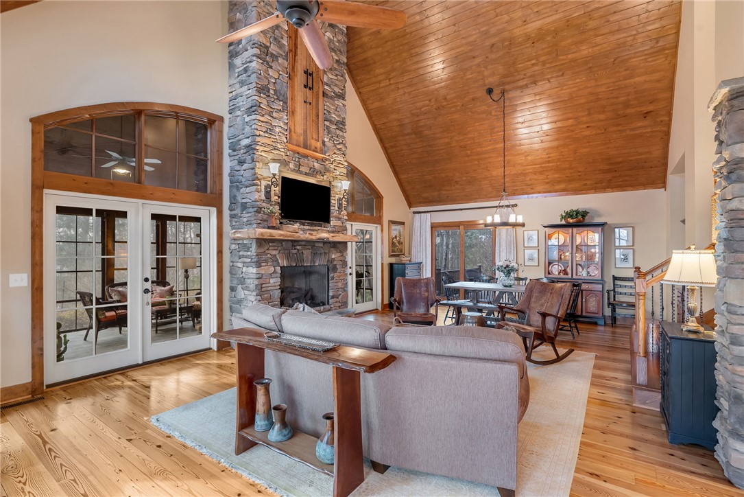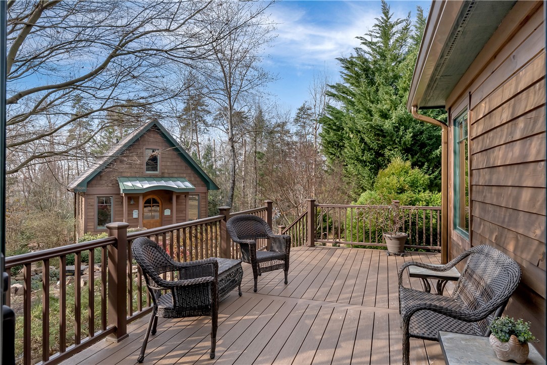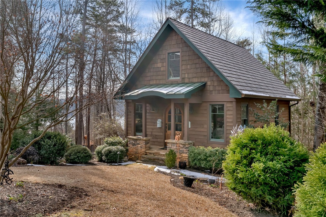 Extraordinary elevated living on a sought after Peninsula, experience this masterfully renovated home on Palmer Way. Located in Old Edwards Reserve at Lake Keowee, this residence captures breathtaking sunrise water views. Inside, 100-year-old reclaimed heart pine floors lead you into a vaulted great room defined by architectural character. Outdoors, the artistry of Dabney Collins is on full display through meticulously landscaped gardens and a water feature that connects the main home to a private 500-sq-ft guest house. The guest house offers privacy and coziness with a full bath and is plumbed for a future kitchenette. Stepping into the main house, off of the great room is a chef’s kitchen remodeled in 2024 with a custom John Boos walnut top island, Premier copper sink, and a high-performance suite of Wolf and Bosch appliances. Enjoy overlooking the landscaped yard and views from the eating area with a newly refurbished marble bar or while sitting on the custom window seat. The main-level primary suite offers spacious luxury, while a private back staircase leads to a versatile lake-view bonus suite with a half bath. Up a second staircase you will find 2 ensuite bedrooms/bathrooms, a loft sitting area and abundant storage. In addition, the owners have added a brand-new DaVinci roof and LeafGuard gutters (2025), Timber Tech decking (2022), New HVAC system (2022) and new steel garage doors (2023) to the home. This house is approximately 1.8 miles to the wellness center and 2.4 miles to the Village in the Old Edwards Reserve. The Premier Membership must be purchased at closing, providing access to world-class amenities, including a Jack Nicklaus Signature Golf Course, a state of the art clubhouse, marina, wellness center, tennis and pickleball courts, two pools and multiple dining options.