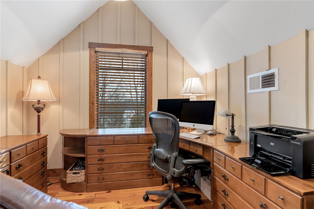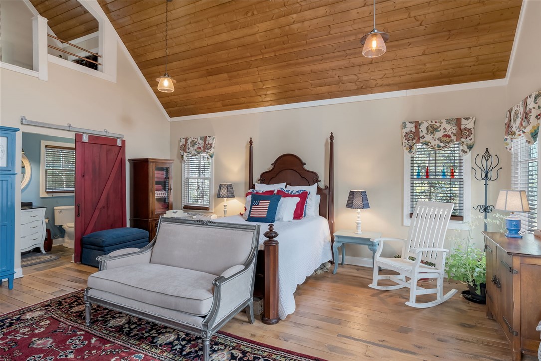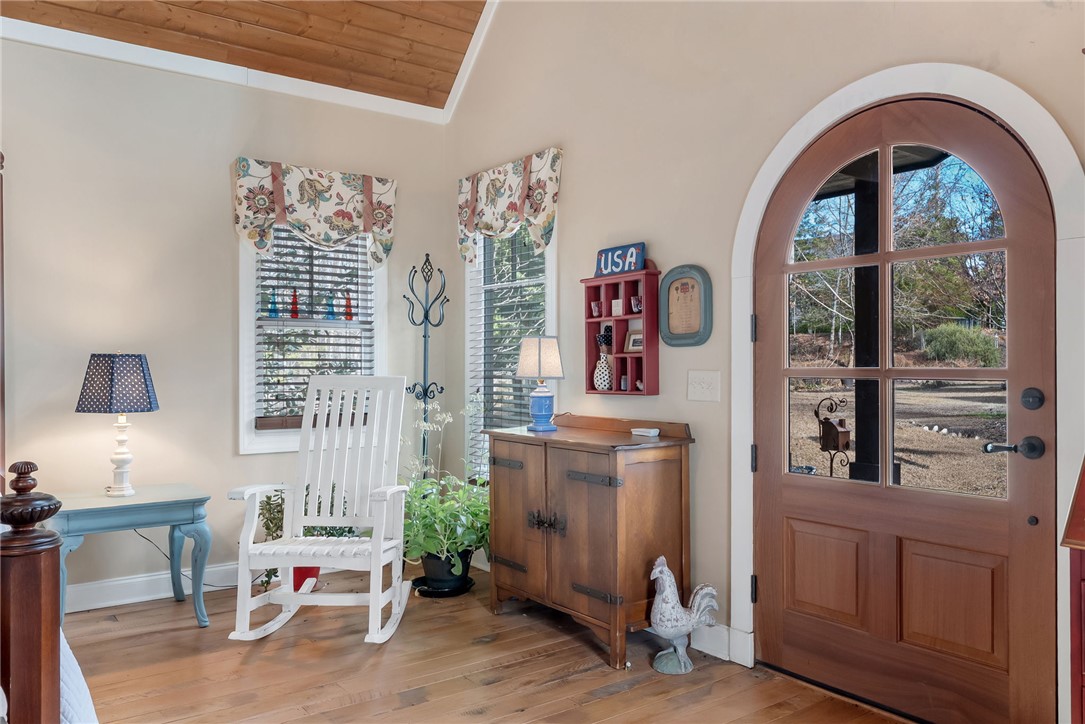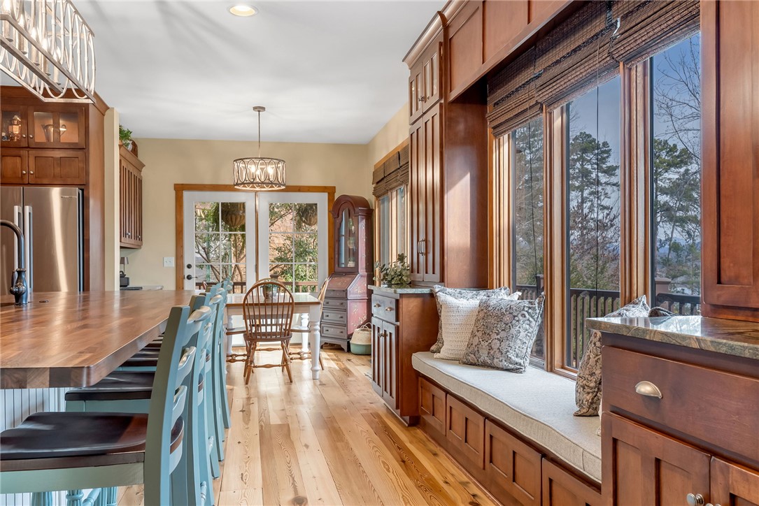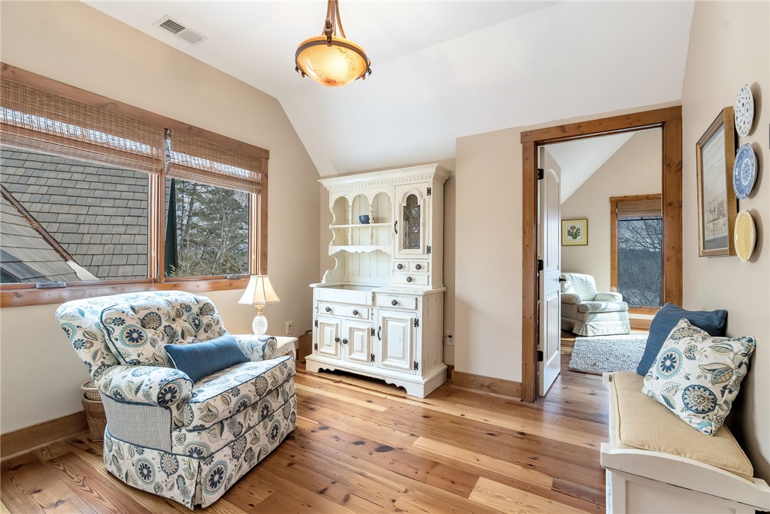 Extraordinary elevated living on a sought after Peninsula, experience this masterfully renovated home on Palmer Way. Located in Old Edwards Reserve at Lake Keowee, this residence captures breathtaking sunrise water views. Inside, 100-year-old reclaimed heart pine floors lead you into a vaulted great room defined by architectural character. Outdoors, the artistry of Dabney Collins is on full display through meticulously landscaped gardens and a water feature that connects the main home to a private 500-sq-ft guest house. The guest house offers privacy and coziness with a full bath and is plumbed for a future kitchenette. Stepping into the main house, off of the great room is a chef’s kitchen remodeled in 2024 with a custom John Boos walnut top island, Premier copper sink, and a high-performance suite of Wolf and Bosch appliances. Enjoy overlooking the landscaped yard and views from the eating area with a newly refurbished marble bar or while sitting on the custom window seat. The main-level primary suite offers spacious luxury, while a private back staircase leads to a versatile lake-view bonus suite with a half bath. Up a second staircase you will find 2 ensuite bedrooms/bathrooms, a loft sitting area and abundant storage. In addition, the owners have added a brand-new DaVinci roof and LeafGuard gutters (2025), Timber Tech decking (2022), New HVAC system (2022) and new steel garage doors (2023) to the home. This house is approximately 1.8 miles to the wellness center and 2.4 miles to the Village in the Old Edwards Reserve. The Premier Membership must be purchased at closing, providing access to world-class amenities, including a Jack Nicklaus Signature Golf Course, a state of the art clubhouse, marina, wellness center, tennis and pickleball courts, two pools and multiple dining options.