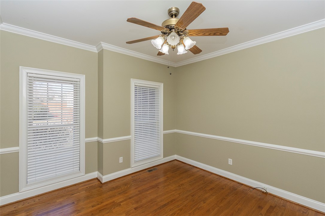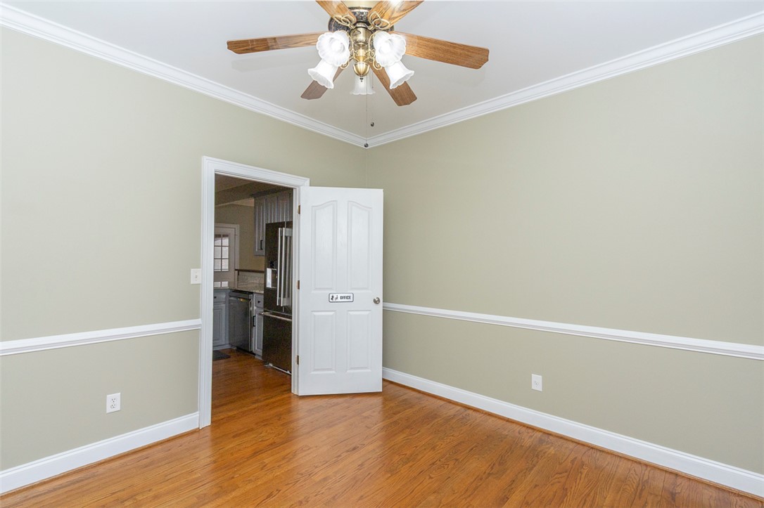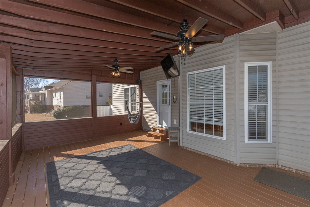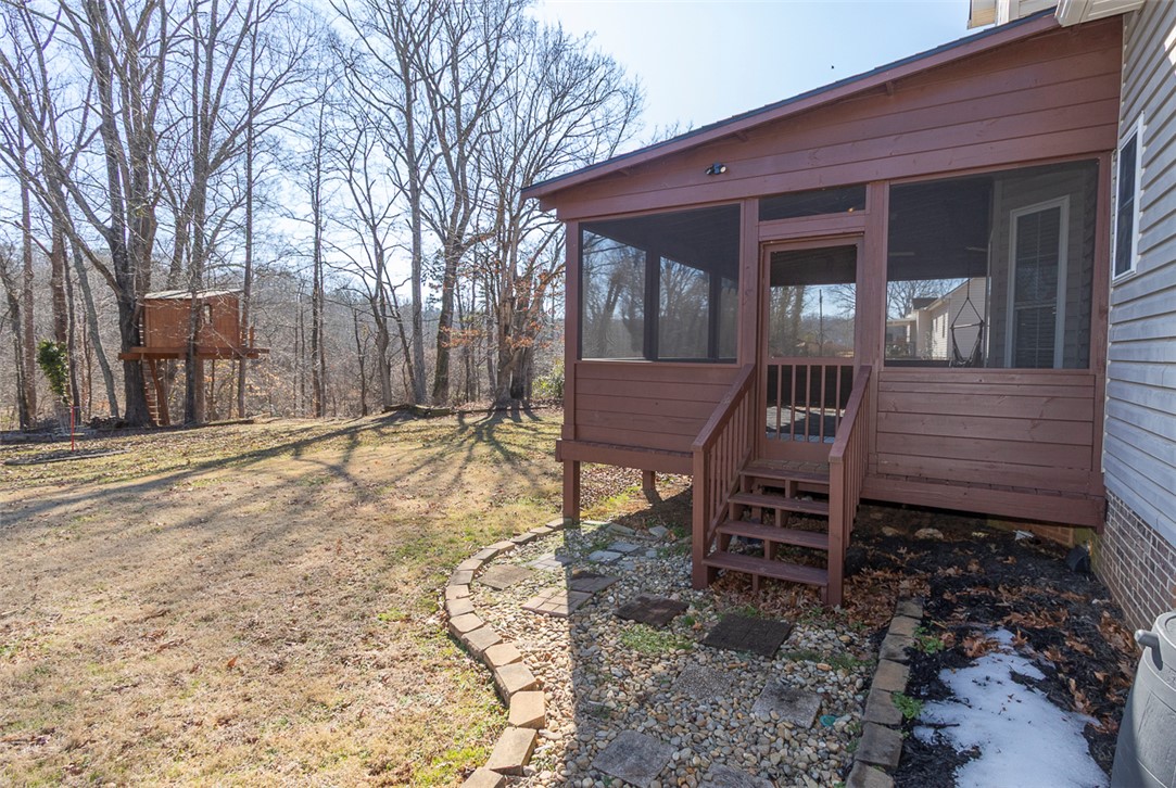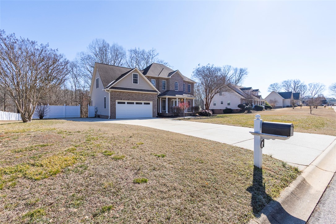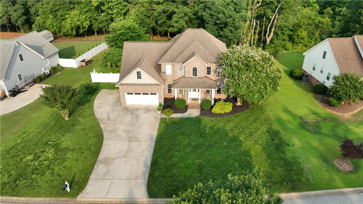 This four-bedroom, three-bathroom home is situated on a 0.64-acre lot in the established Tinsley Place neighborhood, conveniently located between Highway 81 and Clemson Boulevard, with no HOA fees or city taxes. The main level offers a family room with a gas log fireplace, formal dining room, office, open-concept eat-in kitchen, guest bedroom, and full bathroom. Upstairs, the primary suite features a tray ceiling and a bathroom with a jetted tub, dual sinks, and a walk-in closet. Two additional bedrooms share a hall bath and are located near a large bonus room that could serve as a fifth bedroom. A spacious screened porch provides excellent outdoor living space and overlooks the backyard, which includes a storage building and a treehouse, with access to a creek on the adjacent Corps of Engineers land.