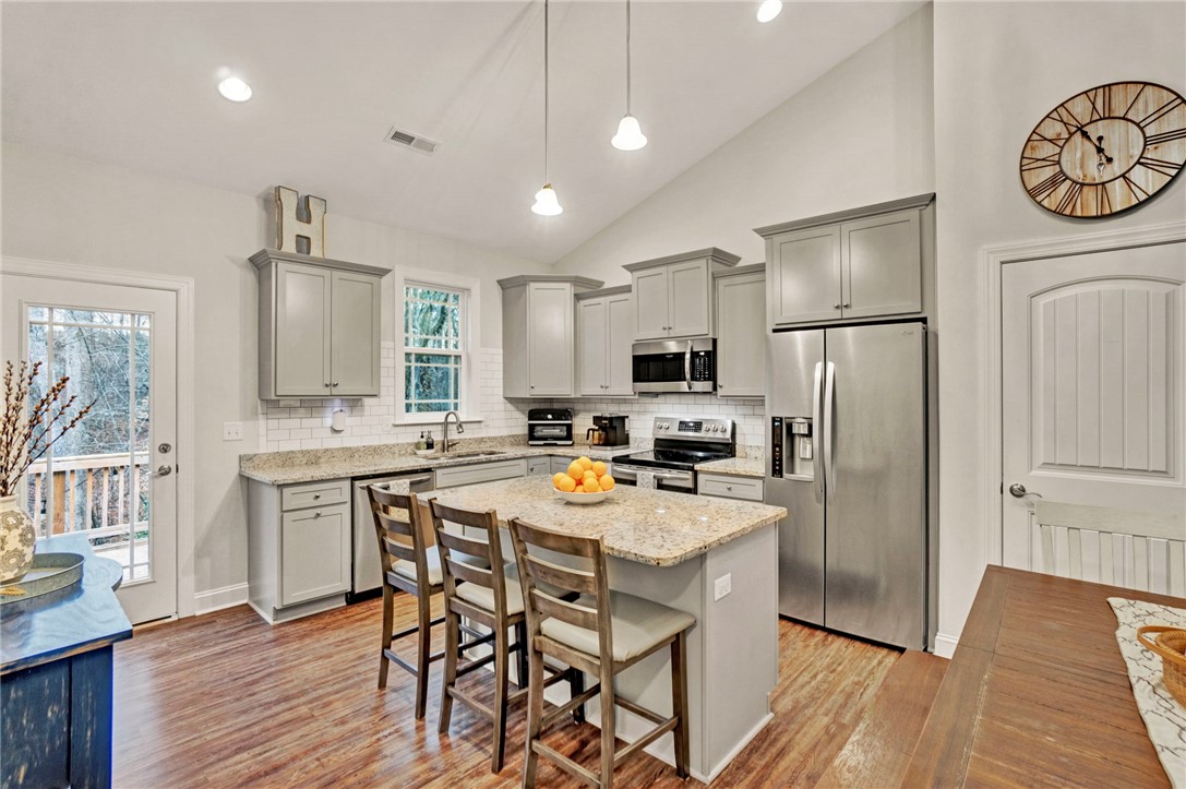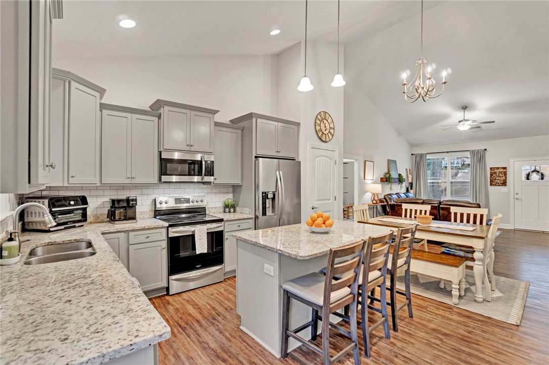 I turned into this sweet Easley, South Carolina neighborhood tucked right here in Pickens County and immediately felt that familiar sense of calm that only a well-loved home can give. The stone accents along the front entry set the tone. It has that soft Southern charm that makes you slow down a bit and imagine quiet evenings and easy mornings in a place that just feels right. The moment I stepped through the door, I noticed something that is getting harder and harder to find. This is one of the cleanest homes I have ever been in. It feels fresh, bright, and gently lived in, like every corner has been cared for with intention. Everything sits on one level, making daily living simple and comfortable, and the three bedroom, two bath layout flows with ease from one space to the next. The open floor plan welcomes you in and makes you feel at home right away. The family room is spacious and inviting, perfect for quiet evenings, game day gatherings, or curling up with a good book. It opens beautifully into the kitchen and dining area, where there is plenty of room for a big farmhouse table. I can just imagine holiday meals, birthday cakes, and everyday dinners turning into the best kind of memories. The kitchen is truly the heart of the home. Vaulted ceilings lift the space and let the light dance across the granite countertops. Stainless appliances shine, and the big work island feels like the natural gathering spot for morning coffee or evening conversations. Newly installed subway tile adds a fresh, timeless touch that gives the whole kitchen a warm, polished feel. It is the kind of space where breakfast is served with laughter and dinner stretches into long, happy conversations. Just off the kitchen, the deck invites you outside, and this might be my favorite spot of all. Because the home backs up to the woods, the view feels peaceful and private, almost like a quiet mountain retreat. The trees wrap around the backyard and create a setting that feels calm and tucked away from the world. It is easy to imagine slow mornings with coffee, cool fall evenings under a blanket, or summer dinners with friends as the sun filters through the trees. Back inside, the split bedroom floor plan gives the primary suite the privacy everyone loves. The primary bedroom is comfortable and restful, with a walk-in closet that gives you plenty of space. The private bath features double sinks, granite countertops, and a layout that makes mornings feel easy and organized. The guest bedrooms are nicely sized with good closet space, and the guest bath is spacious and well finished. Throughout the home, the colors are cool, soft, and comfortable, creating a calm backdrop that makes every room feel welcoming. One feature I always appreciate is the tall crawlspace. This home sits on a high crawl, which gives you excellent access for maintenance and repairs, better air circulation under the home, and valuable storage space for seasonal items, tools, or outdoor equipment. Living here also means being right in the heart of Easley, South Carolina, one of the most convenient and charming spots in the Upstate. You are close to Publix, everyday shopping, and local restaurants, with new dining options continuing to come to town. Enjoy dinner at a favorite local spot, spend a Saturday exploring downtown Easley, or catch a community event or festival. You are also just a short drive to Greenville, Clemson, and the mountains, making weekend adventures easy. If you have been searching for a one level home in Easley SC with an open floor plan, granite countertops, stainless appliances, subway tile, a private wooded backyard, a tall crawlspace, and a location close to shopping and restaurants, this home tells a story you will want to be part of. It feels warm, peaceful, and ready for its next chapter.