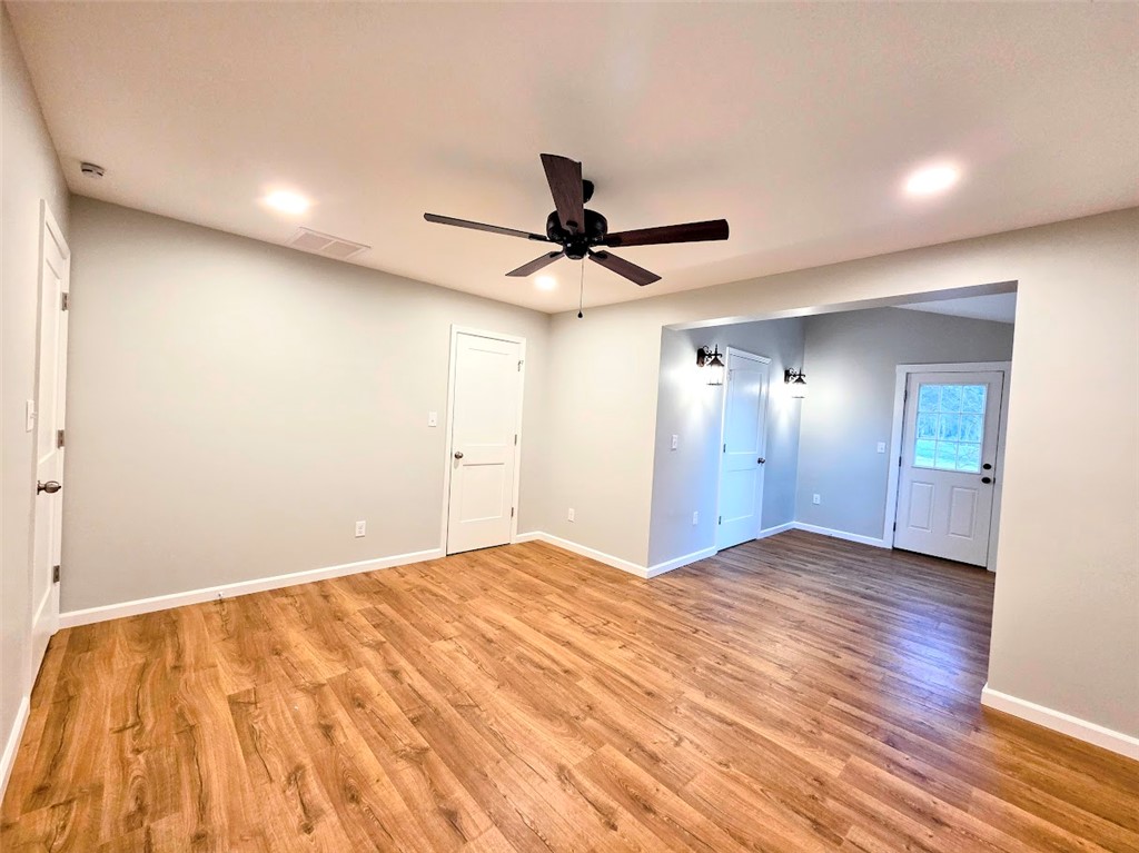 Welcome to 103 Blossom Branch Ext, a stunning 4-bedroom, 2-bathroom home located in the charming town of Piedmont, SC in the highly sought after Wren School District. This home is a perfect blend of style and comfort. The interior boasts a seamless aesthetic with brand-new, low-maintenance LVP flooring installed throughout, offering both durability and modern appeal for busy lifestyles. The kitchen is a chef's dream, equipped with a refrigerator, stove, dishwasher, and an over-the-range microwave. The granite countertops, new custom kitchen cabinets, and open floor plan make it a delightful space for cooking and entertaining. The heart of the home is the inviting living room, anchored by a striking, floor-to-ceiling rock fireplace that offers a touch of rustic charm with the warmth of a wood-burning fire. Smooth ceilings and overhead fans provide comfort, enhancing the room’s open and airy feel. The master suite is a private sanctuary with its own private entrance and double closets. Attached master bath is curated for comfort and functionality featuring new tub/shower combo, toilet, and custom granite double-sink vanity with enhanced ambiance of updated, modern lighting. From the new roof to the driveway, this home has been meticulously updated. Exterior features include brand-new vinyl siding, a new garage door, and a smooth concrete driveway leading to the one-car attached garage. Function meets comfort in this home's exterior features, headlined by a generously proportioned screened-in porch that seamlessly extends your living space. The oversized yard is complemented by a detached multi-purpose 4 car garage, offering a dedicated space for projects and storage.