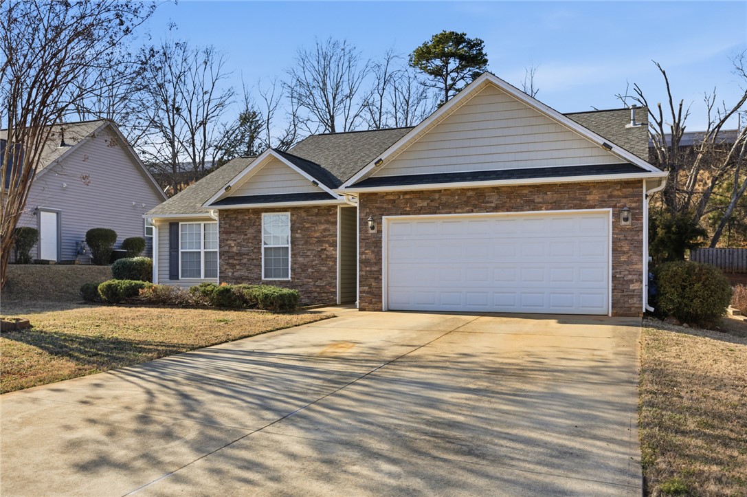 Discover this beautiful home nestled in a quiet, charming, and welcoming neighborhood with an unbeatable location! Conveniently located just one mile from I-85 and only 15 minutes from Downtown Greenville, this home offers both comfort and accessibility. Inside, you’ll love the open floor plan featuring a cozy gas log fireplace and soaring cathedral ceilings in the living room. The kitchen showcases hardwood floors, stunning cabinetry, and abundant storage, while the breakfast area offers elegant crown molding and a stylish chandelier. A spacious walk in laundry room provides additional storage and convenience. The split bedroom layout ensures privacy, complemented by two full bathrooms. Step outside to enjoy the private patio and backyard perfect for entertaining or relaxing. Situated at the beginning of a cul-de-sac, this home offers added privacy and a peaceful setting you’ll love coming home to.