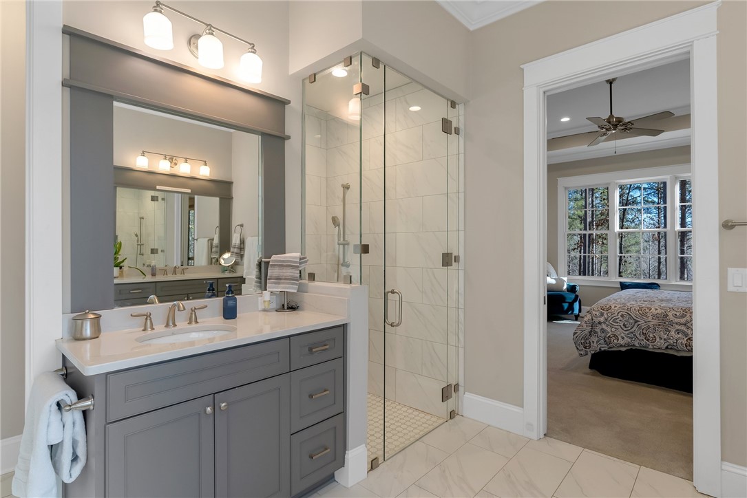Welcome to an extraordinary retreat in the prestigious Cliffs at Keowee Falls, where timeless elegance meets modern comfort. Poised on a secluded 2.18-acre homesite, this custom-built 5-bedroom, 3 full bathroom, 1 half bathroom estate offers the ultimate blend of sophistication, privacy, and natural beauty. Built in 2017 with uncompromising attention to detail, this 3,480 sq ft residence has been impeccably maintained and is ready for you to enjoy from day one – most furniture is included. The main level boasts a generously proportioned primary suite, a refined home office, and a tranquil screened-in patio, perfect for quiet mornings or elegant evening gatherings. Upstairs, discover four spacious guest suites and a versatile bonus/game room, offering flexible living spaces for both relaxation and entertainment. Take in seasonal lake views that add to the home’s serene ambiance, while the lush, wooded surroundings provide a true sense of escape. Whether you're searching for a full-time residence or an exclusive lake-region getaway, this remarkable property promises effortless luxury, thoughtful design, and a lifestyle that is truly second to none. A Club Membership at The Cliffs is available for purchase with this property giving you access to all seven communities.