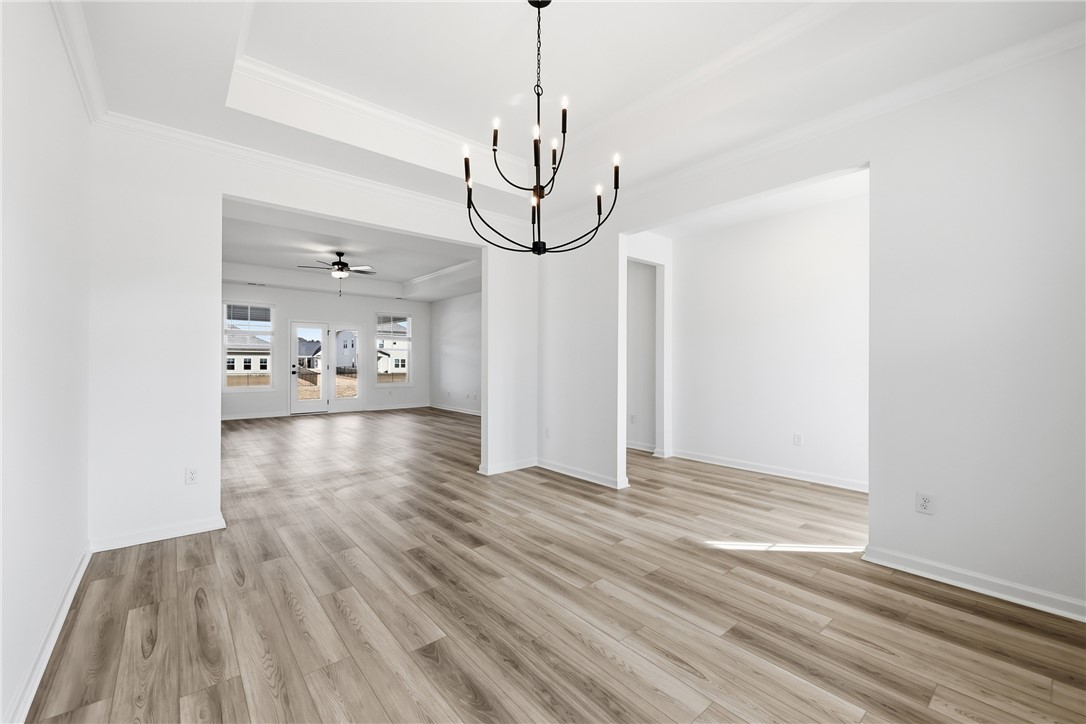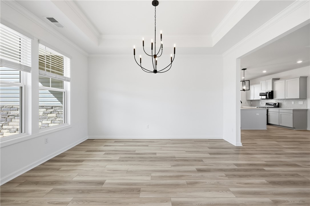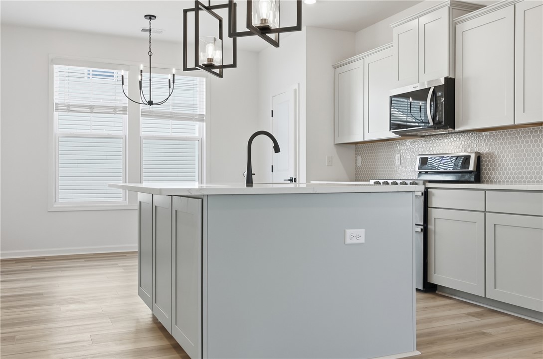 The newly enhanced Grayson II floor plan offers approximately 2,050+ square feet of sophisticated single-level living, meticulously designed with 3 bedrooms and 2 bathrooms in a spacious open-concept layout ideal for both refined everyday living and elevated entertaining. This residence is richly appointed with designer-curated finishes, including luxury vinyl flooring throughout, an upgraded lighting package, a gas fireplace serving as a striking focal point, and quartz countertops throughout the home. The exterior presents timeless curb appeal with a refined blend of white siding, gray shutters and shake accents, Shawnee dry-stack stone, a brown-gray entry door, black exterior finishes, and a black garage door. Inside, the palette continues with elegant gray cabinetry, black interior fixtures, and silver-toned LVP flooring, creating a cohesive, modern aesthetic. The chef-inspired kitchen is thoughtfully designed with stainless steel ENERGY STAR® appliances, a spacious walk-in pantry, and seamless connectivity to the main living areas, ideal for hosting and daily enjoyment. A dedicated laundry room adds convenience while maintaining the home’s polished design. Additional highlights include a covered rear patio, perfect for outdoor lounging or entertaining, and a welcoming front porch ideal for quiet mornings or evening gatherings. Energy-efficient upgrades include a tankless gas water heater and HERS energy certification with third-party testing, delivering exceptional performance, sustainability, and long-term savings. Located within the desirable Lawton Ridge Subdivision, connected to Belvedere, this home is positioned in a thoughtfully planned community near Pendleton High School, offering a balance of convenience, quality craftsmanship, and enduring design. Please note: This home is currently under construction. Photos represent a Wisteria floor plan on a different lot and will be updated upon completion. Prices subject to change without notice.