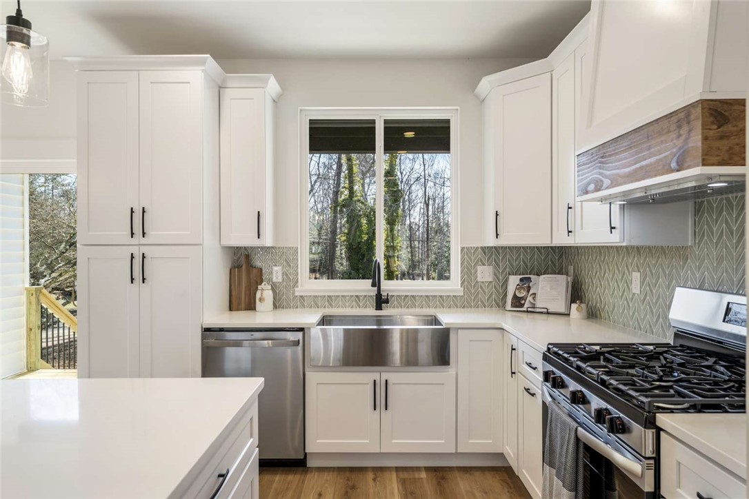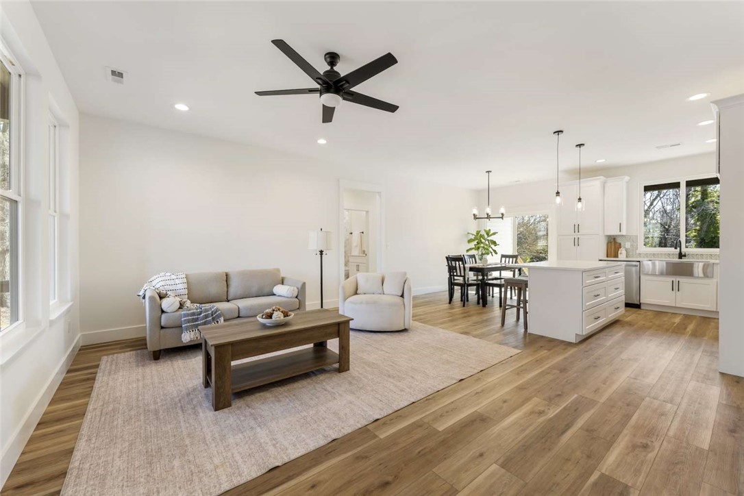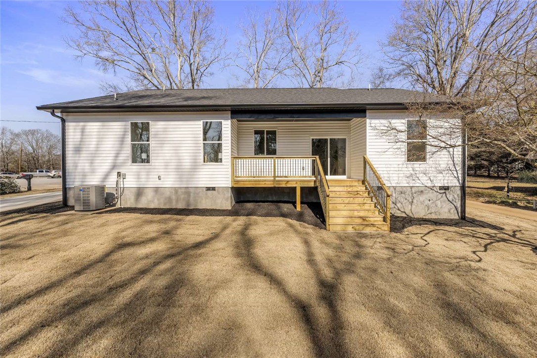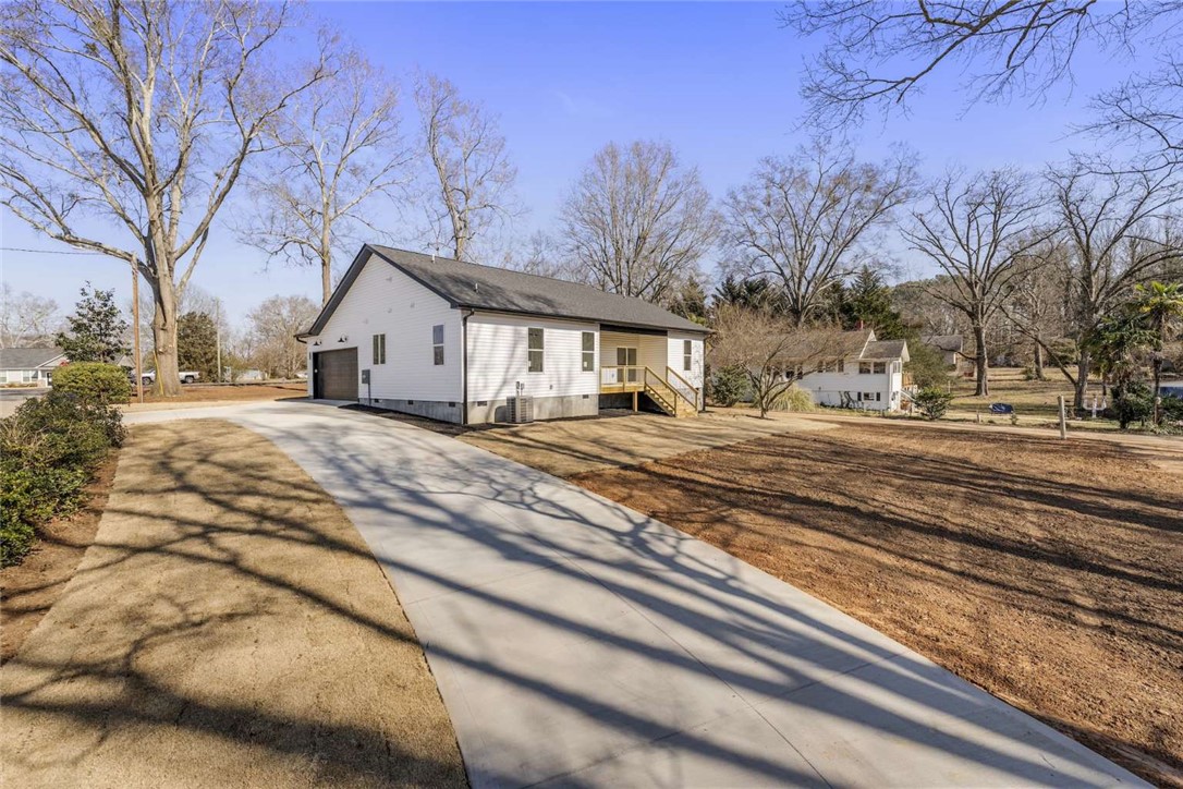 Welcome to this brand-new home offering 1,450 sq ft of thoughtfully designed living space, complete with a 2-car attached garage and a convenient circular driveway. Ideally located just minutes from Belton Square, 15 minutes from downtown Anderson, and 35 minutes from downtown Greenville, this home combines modern living with an excellent location. Adding to its country charm, the property features classic rail frontage out front—bringing a touch of small-town nostalgia to the home’s character. Step inside to an open-concept layout showcasing all-new finishes throughout. The kitchen is a true centerpiece, featuring quartz countertops, stainless steel appliances, a large center island, and a built-in cabinet pantry, perfect for both everyday use and entertaining. The adjoining living room provides a cozy yet modern feel with a maintenance-free electric fireplace. Designed with efficiency in mind, this newly built home includes a tankless gas water heater, gas range/cooktop, and gas furnace, offering long-term energy savings and peace of mind. The private primary suite features a spacious walk-in closet and a beautifully finished bathroom with tiled flooring and a walk-in shower. The laundry room is both functional and inviting, offering outdoor views, quartz countertops, ample drawer storage, and a utility sink. From the dining area, step through the sliding patio door onto the covered back deck, ideal for enjoying the backyard year-round. With brand-new systems, modern design, and quality craftsmanship, this move-in-ready home offers the benefits of new construction without compromise.