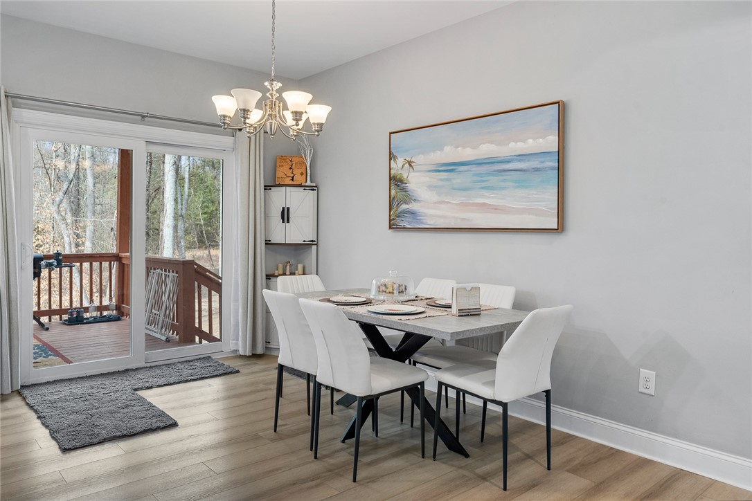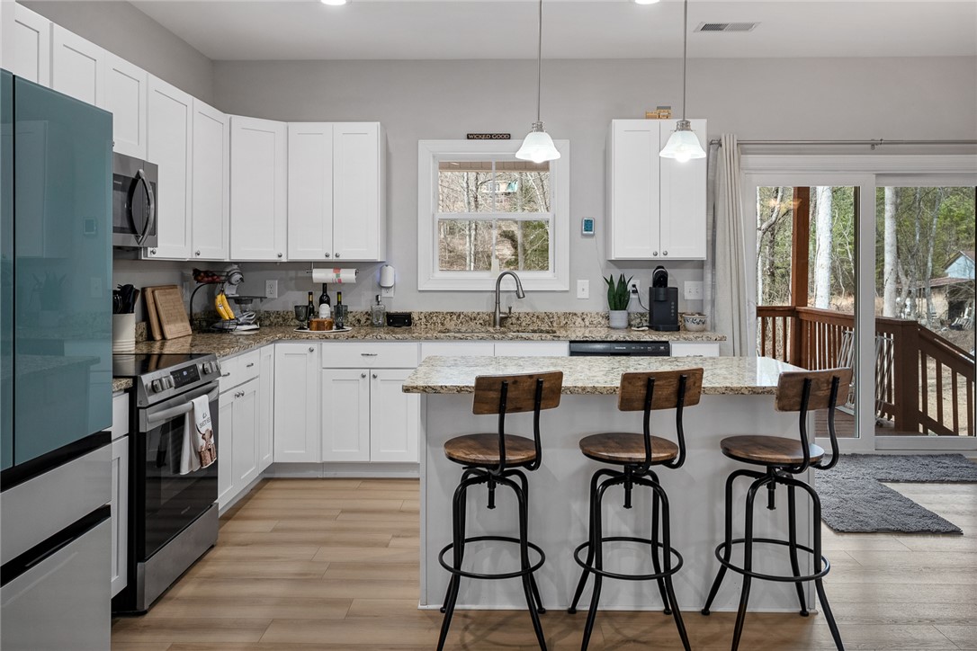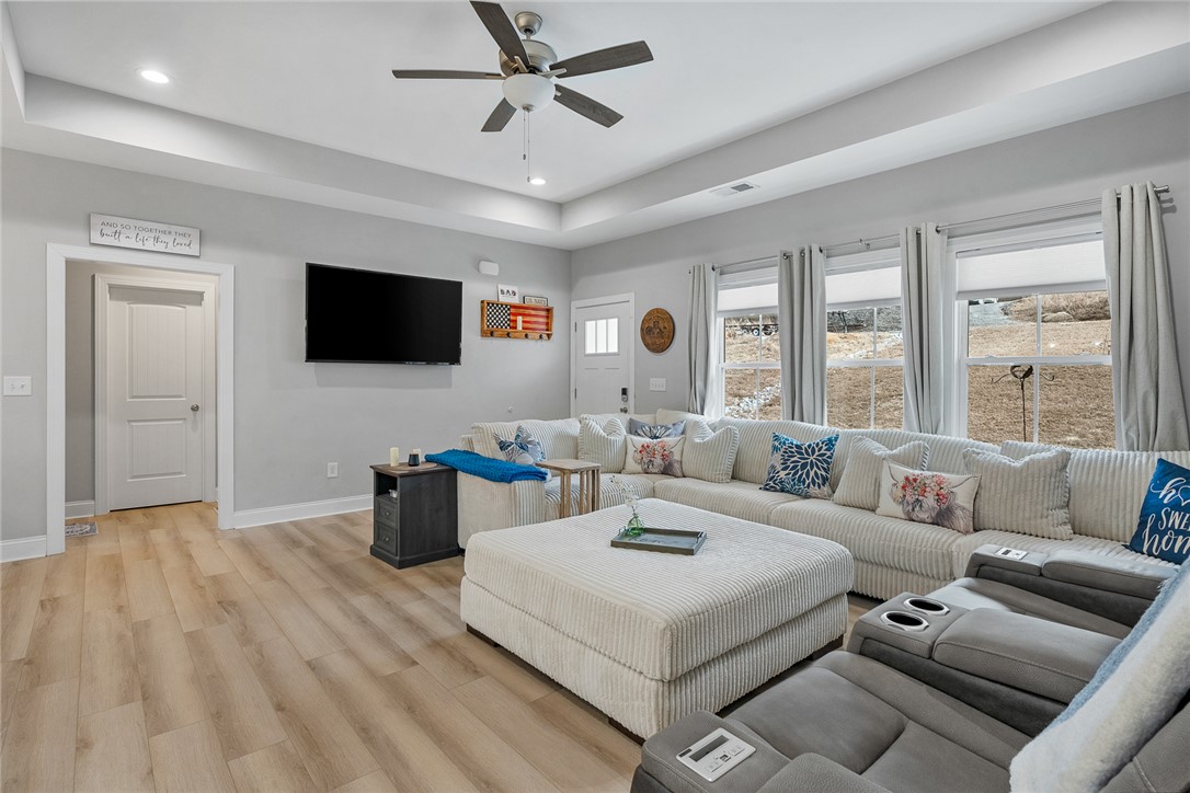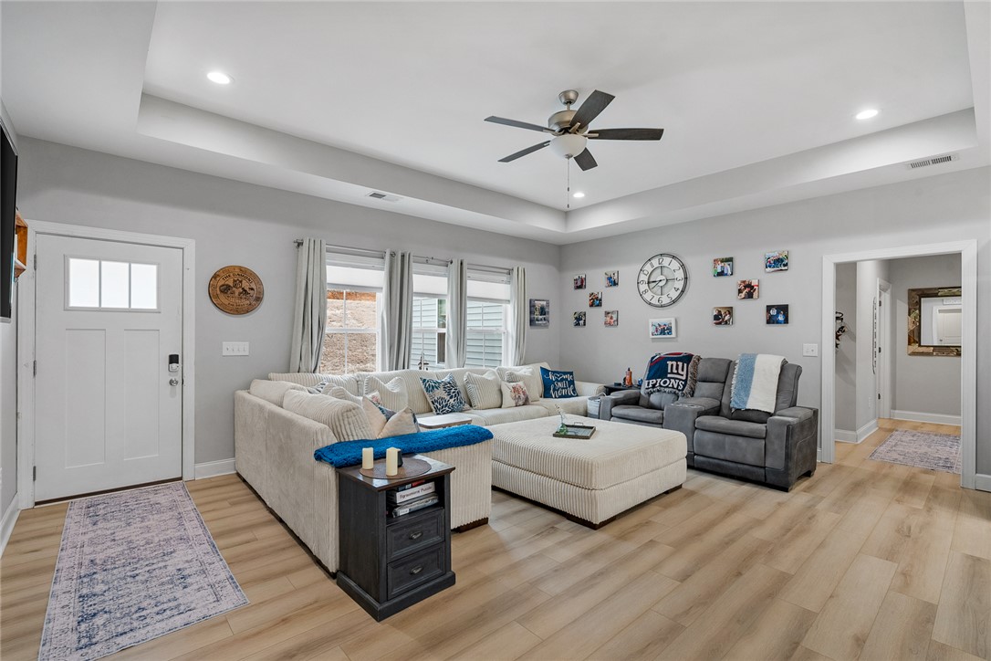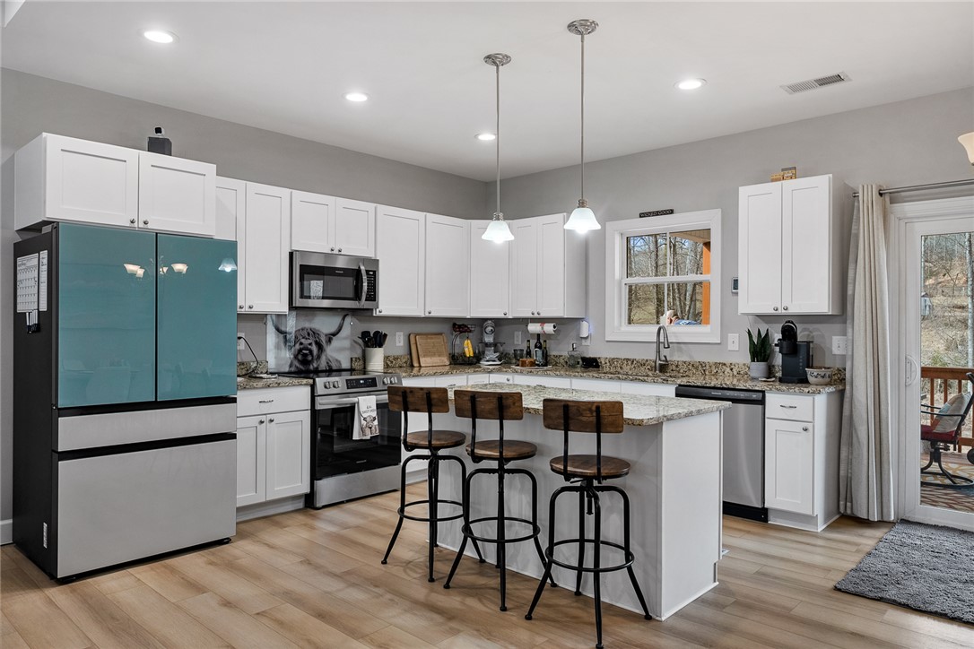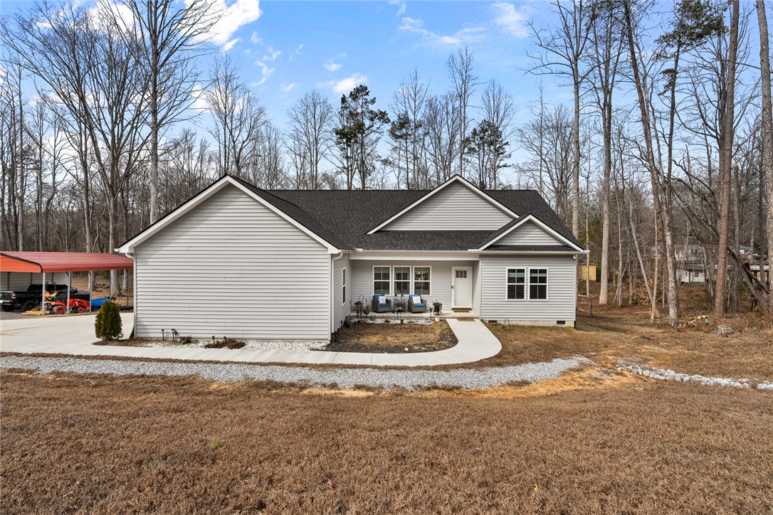 Built in 2024, this beautifully crafted one-level ranch offers approximately 1,700 square feet of modern living on nearly 2 private acres along the scenic Cherokee Foothills corridor — with no HOA and short-term rentals allowed. Inside, a bright, open-concept layout features tray ceilings and recessed lighting that create an airy, expansive feel. Durable luxury vinyl plank flooring runs throughout the main living areas. The kitchen displays granite countertops, white cabinetry, stainless steel appliances, a large island with bar seating, and a window over the sink overlooking the backyard. The spacious living room offers generous natural light and a tray ceiling, creating a warm and inviting gathering space. This home features a split-bedroom floor plan with the primary suite including a double vanity in the en-suite bath, while two additional bedrooms are ideal for guests, a home office, or hobbies. Outdoor living is equally impressive. Enjoy morning coffee on the covered deck surrounded by mature trees, relax in the hot tub on the lower patio, and explore the expansive yard bordered by wooded privacy. A gentle creek winds along the back of the property, adding to the natural beauty and offering a tranquil backdrop with the soothing sound of flowing water. In addition to the attached two car garage, the property also features additional concrete for parking, a detached two-car carport with a metal roof, and a dedicated workshop with electricity — perfect for storage, projects, or outdoor equipment. Located in the Walhalla School District, the home offers close proximity to the natural beauty of Lake Jocassee at Devils Fork State Park and the hiking and recreation at Table Rock State Park. Come see this beautiful home today.