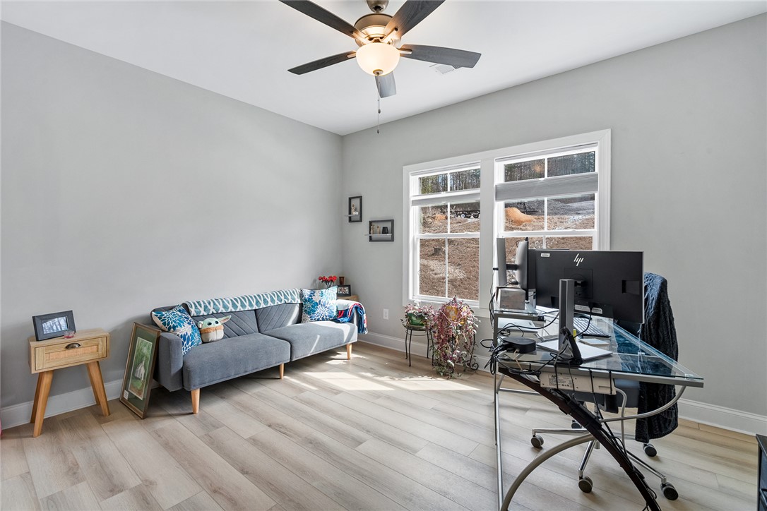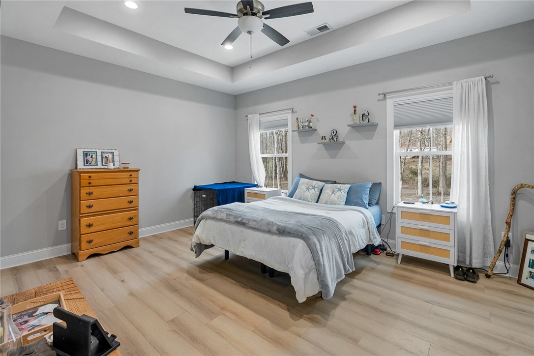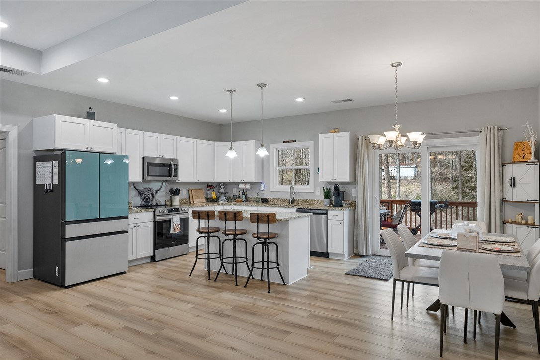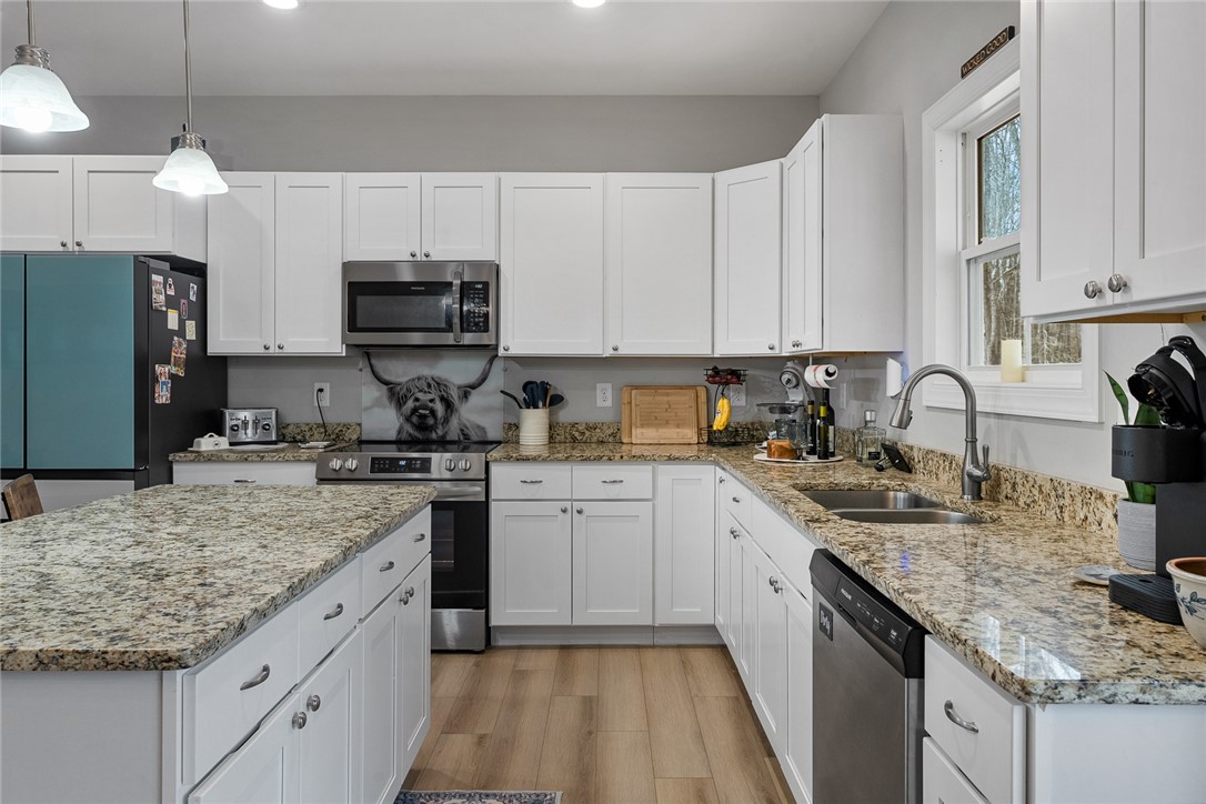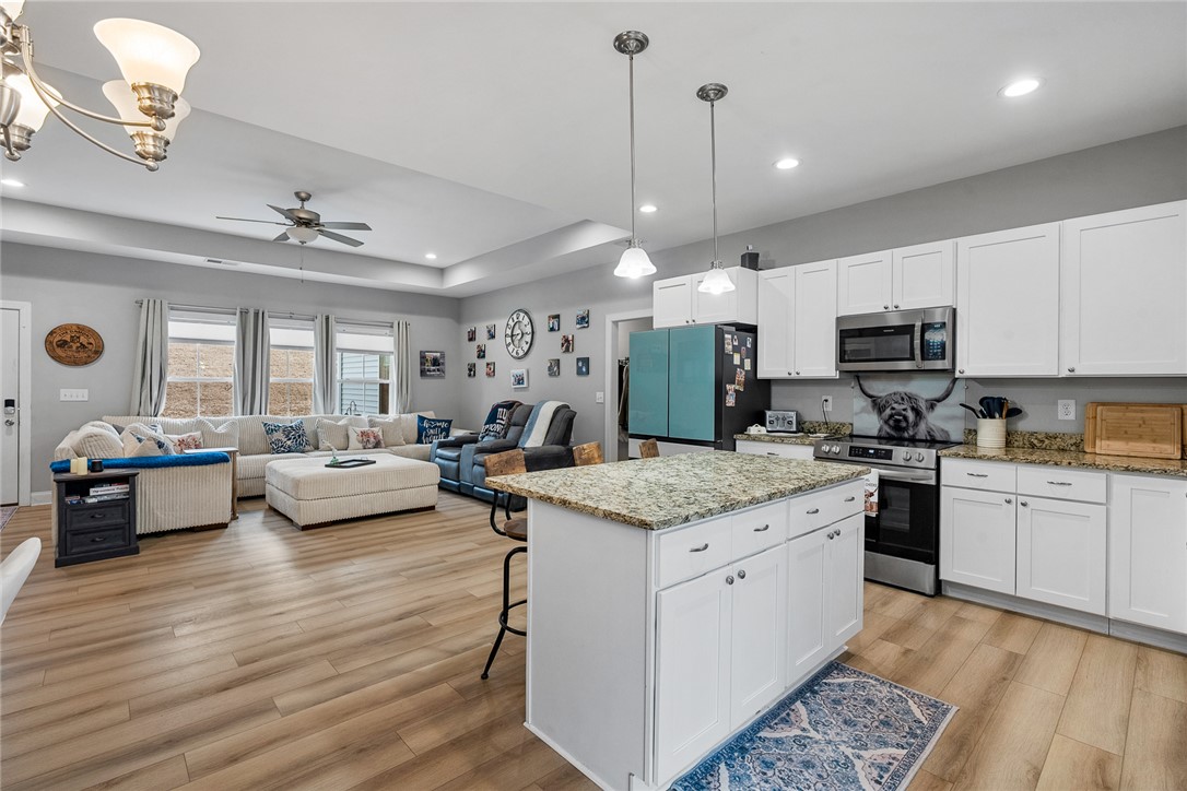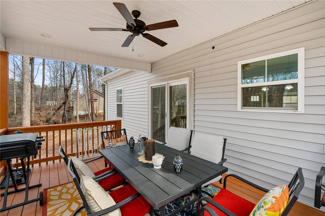 Built in 2024, this beautifully crafted one-level ranch offers approximately 1,700 square feet of modern living on nearly 2 private acres along the scenic Cherokee Foothills corridor — with no HOA and short-term rentals allowed. Inside, a bright, open-concept layout features tray ceilings and recessed lighting that create an airy, expansive feel. Durable luxury vinyl plank flooring runs throughout the main living areas. The kitchen displays granite countertops, white cabinetry, stainless steel appliances, a large island with bar seating, and a window over the sink overlooking the backyard. The spacious living room offers generous natural light and a tray ceiling, creating a warm and inviting gathering space. This home features a split-bedroom floor plan with the primary suite including a double vanity in the en-suite bath, while two additional bedrooms are ideal for guests, a home office, or hobbies. Outdoor living is equally impressive. Enjoy morning coffee on the covered deck surrounded by mature trees, relax in the hot tub on the lower patio, and explore the expansive yard bordered by wooded privacy. A gentle creek winds along the back of the property, adding to the natural beauty and offering a tranquil backdrop with the soothing sound of flowing water. In addition to the attached two car garage, the property also features additional concrete for parking, a detached two-car carport with a metal roof, and a dedicated workshop with electricity — perfect for storage, projects, or outdoor equipment. Located in the Walhalla School District, the home offers close proximity to the natural beauty of Lake Jocassee at Devils Fork State Park and the hiking and recreation at Table Rock State Park. Come see this beautiful home today.