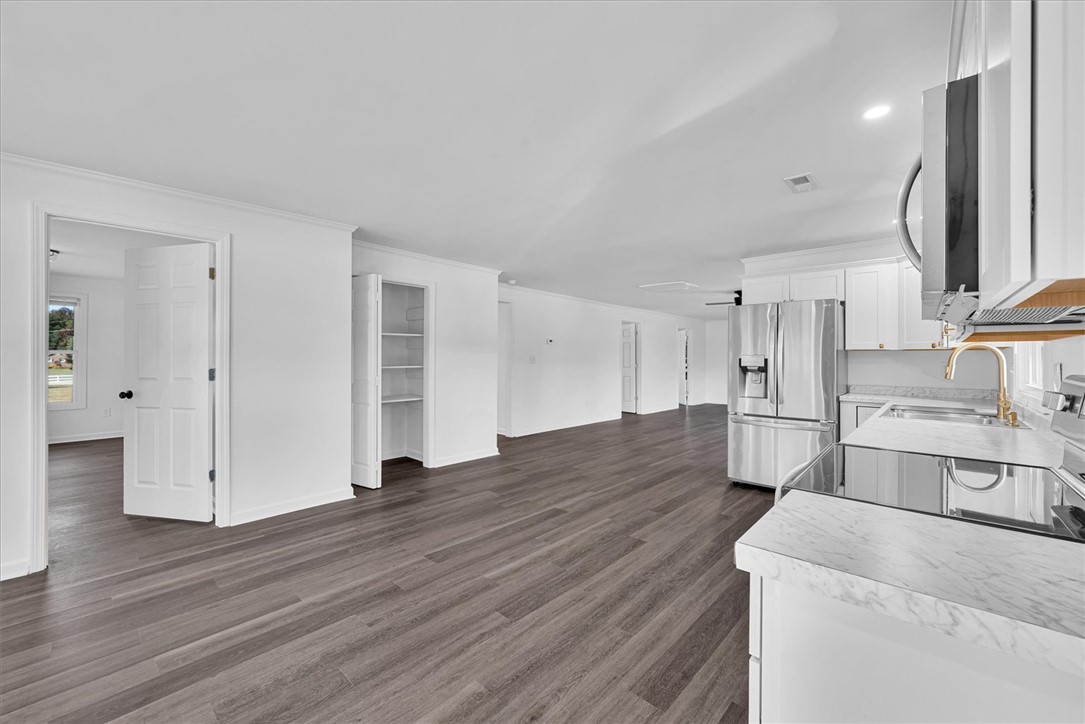 Beautifully updated 3 bedroom home on .63 acres with a vintage wrap around porch and modern updates throughout. The kitchen features new cabinets, on- trend features, stainless steel appliances and a pantry for extra storage. The spacious family room features a fireplace and double doors that lead to the patio. All bedrooms are large with ample closets and laundry room conveniently located off the kitchen. Enjoy the circular driveway with mature trees and a patio for entertaining. Ever detail of this home has been has been thoroughly renovated - new flooring, cabinets, lighting, and much more. Conveniently located only 22 minutes to Anderson or Greenville. Close to I-85. This home move in ready home offers the perfect blend of charm, space, and modern comfort.