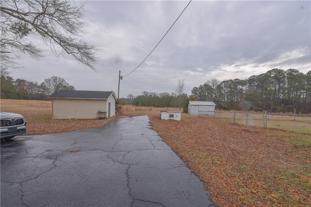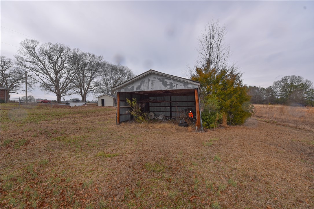 Classic Brick Ranch on 5.93 Level Acres with Hwy 28 Frontage and New Smith road in Small town Abbeville SC. This inviting brick ranch home sits proudly on 5.93 acres of level, usable land with an impressive 420 ft of road frontage on Hwy 28, the home features three large bedrooms, an open-floor-plan living room, and a cozy den with a wood fireplace perfect for cool evenings. Several rooms showcase beautiful knotty pine, adding warmth and character throughout. The vintage pink tile bath brings a touch of nostalgia, while the easy-functioning kitchen offers plenty of workspace and lots of cabinets for dishes and storage. A dedicated laundry room adds everyday convenience. Step outside and enjoy the wide-open possibilities this property offers. A carport provides covered parking, and the small garage workshop with tractor lean-to is ideal for tools, hobbies, or equipment. There’s also an open tractor shed for additional storage. The land is partially fenced—perfect for pets, horses, chickens, or small-scale farming. Several pecan trees add seasonal shade. The property is serviced by well water and septic, giving you independence and lower utility costs. Whether you want to farm the land, create a homestead, or simply enjoy peaceful country living, this property delivers space, character, and endless potential. Add your remodeling touches and make it yours!! Estate sale and prefer to sell as is .